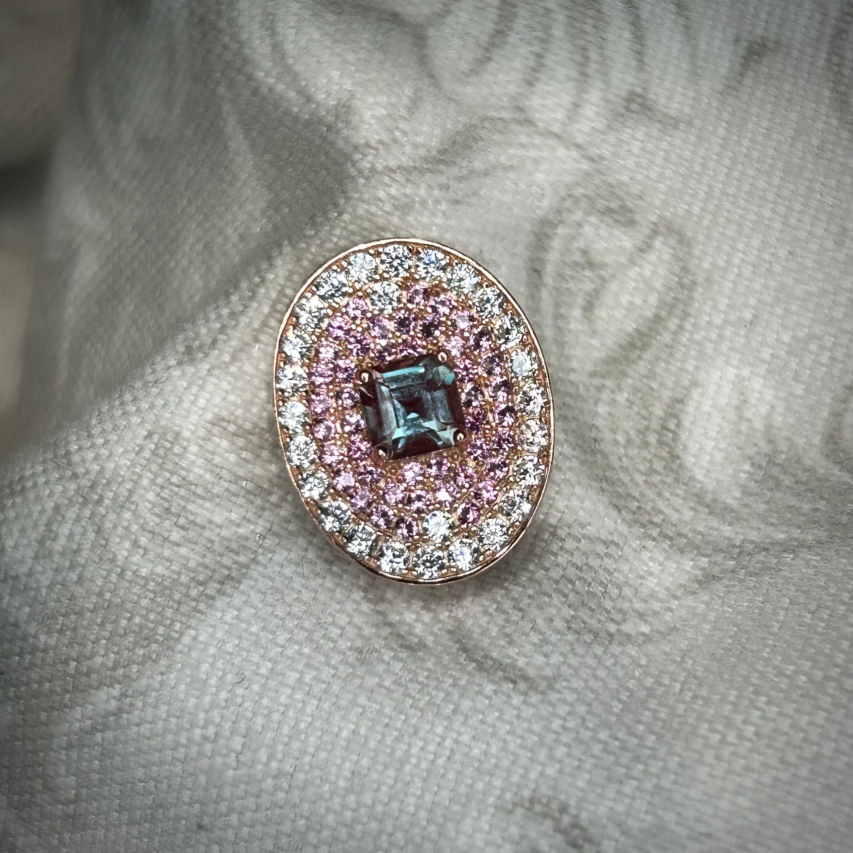 シルバー製ピンクゴールドカラー 合成アレキサンドライトのオーバルネックレス。