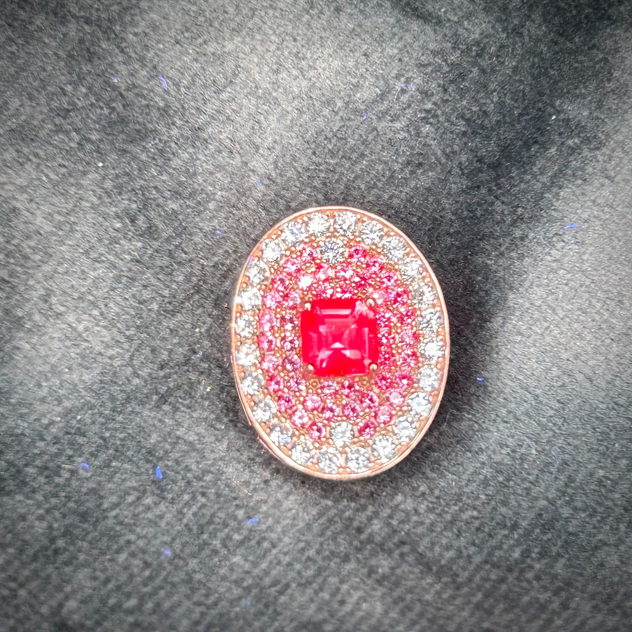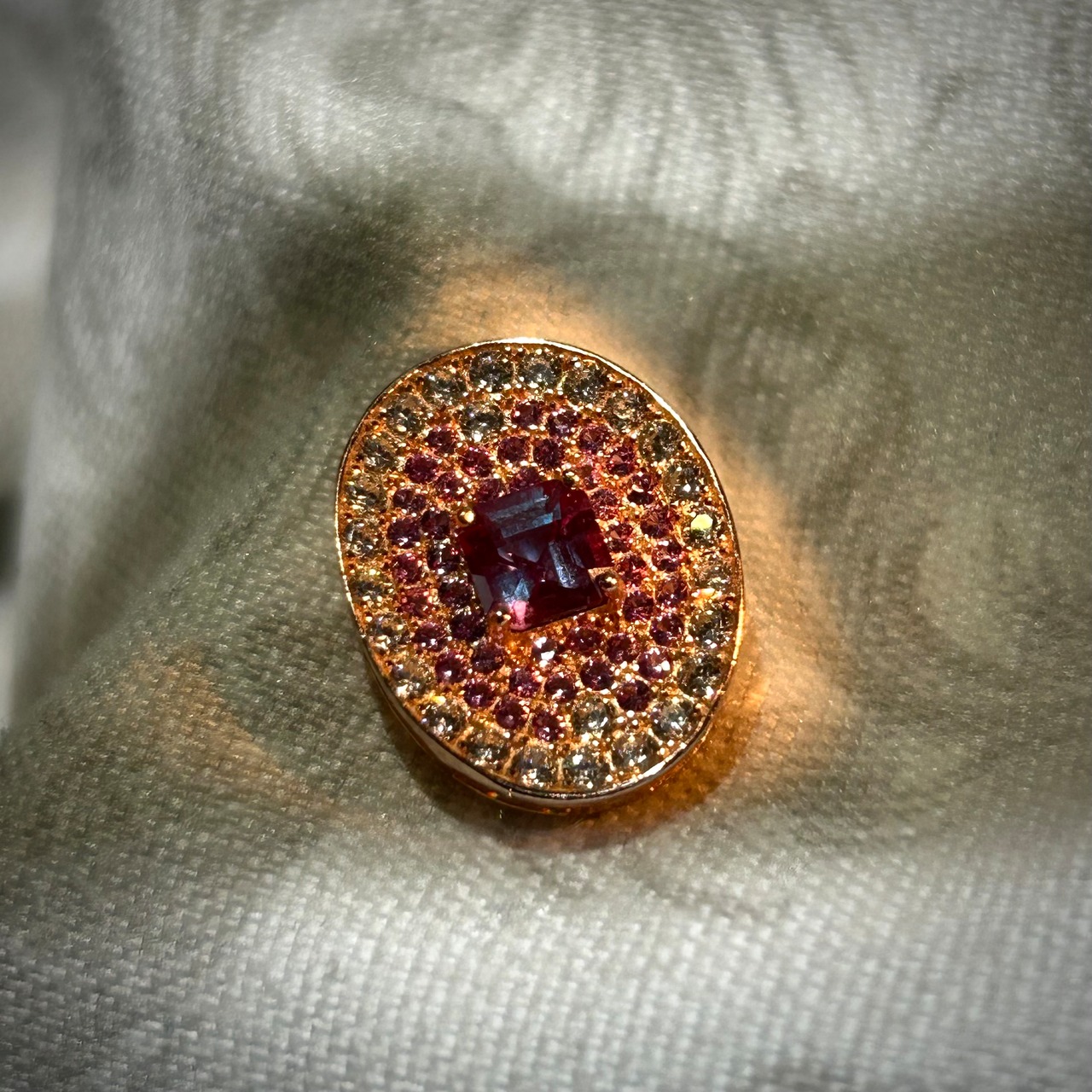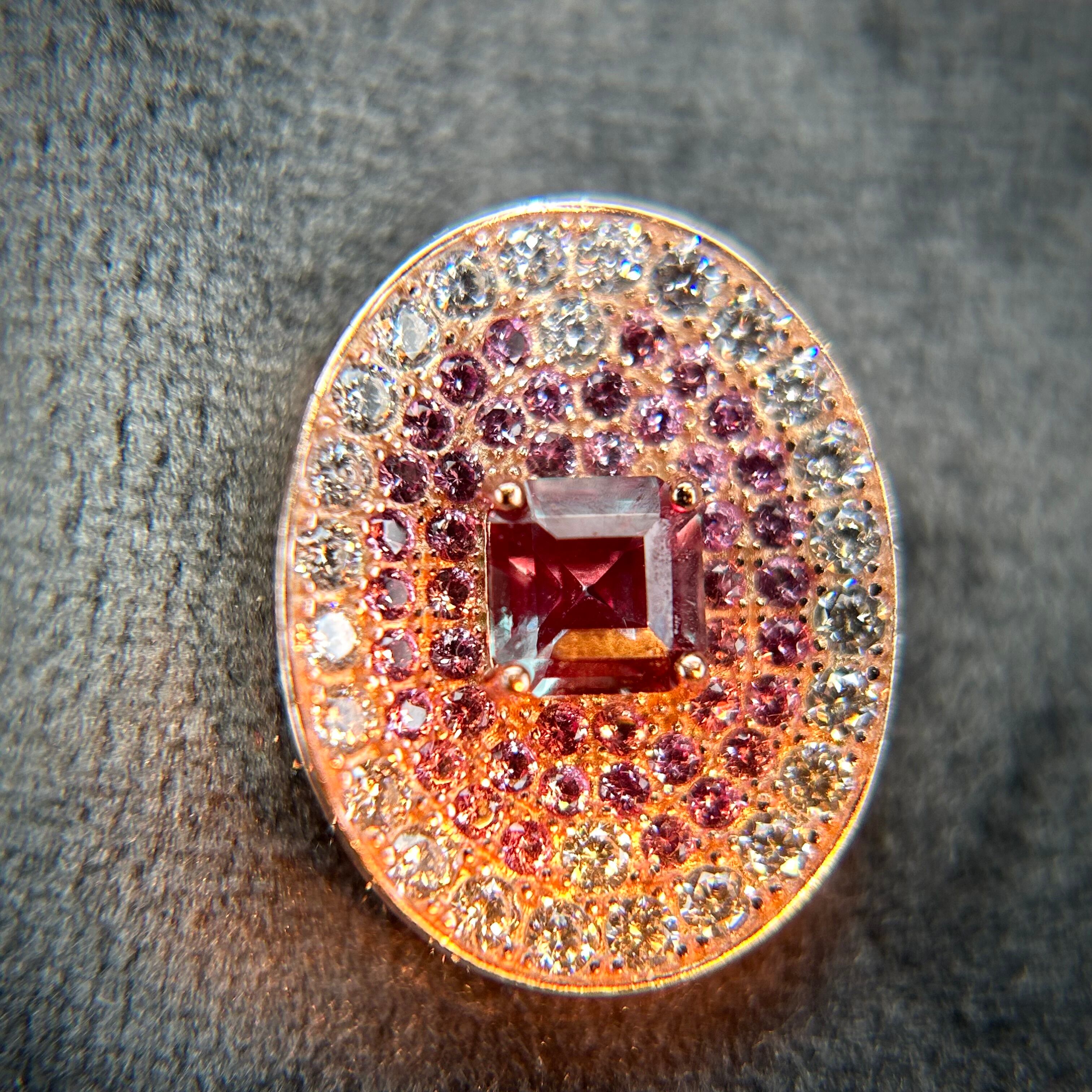 カラーチェンジと蛍光が楽しめる、合成アレキサンドライトを使用。