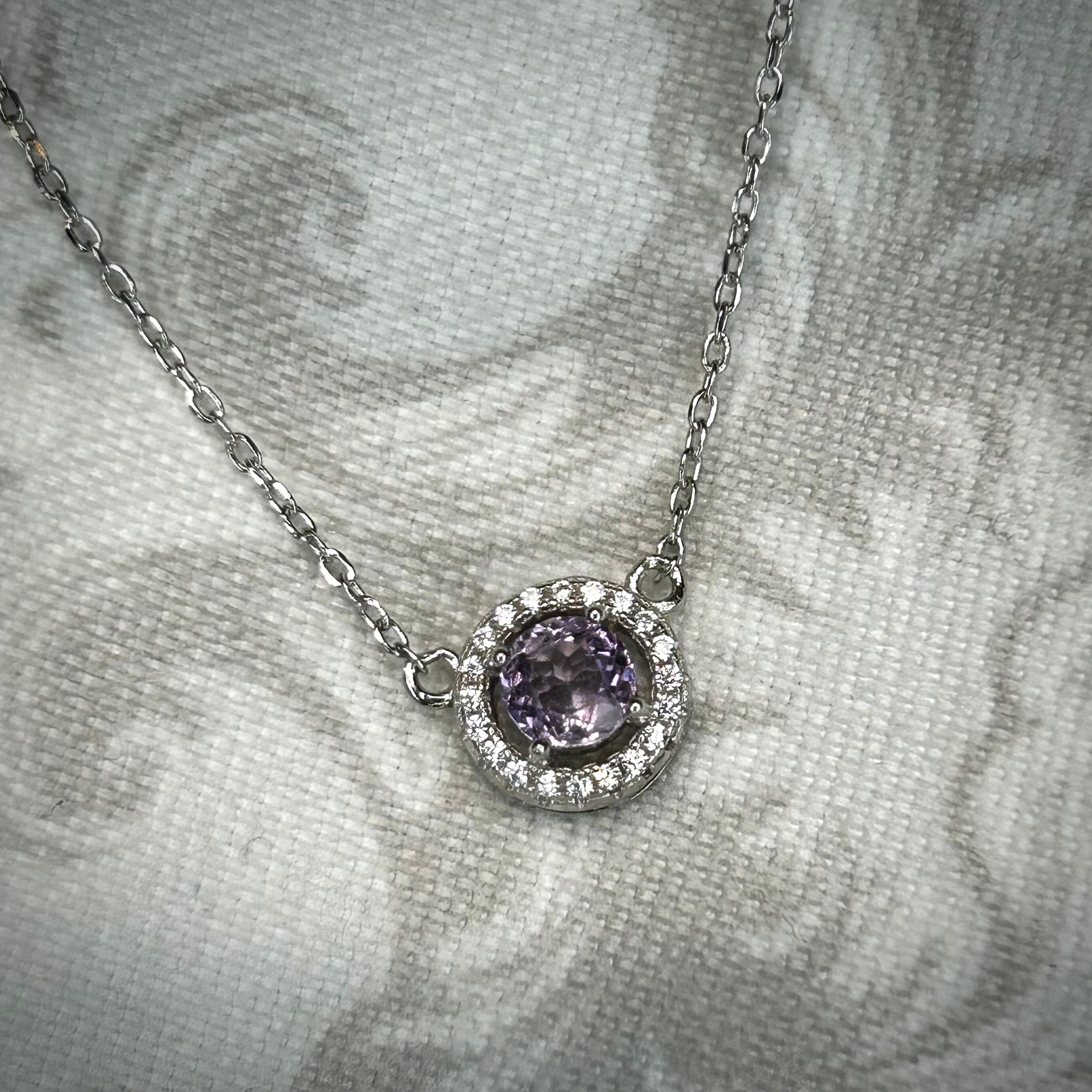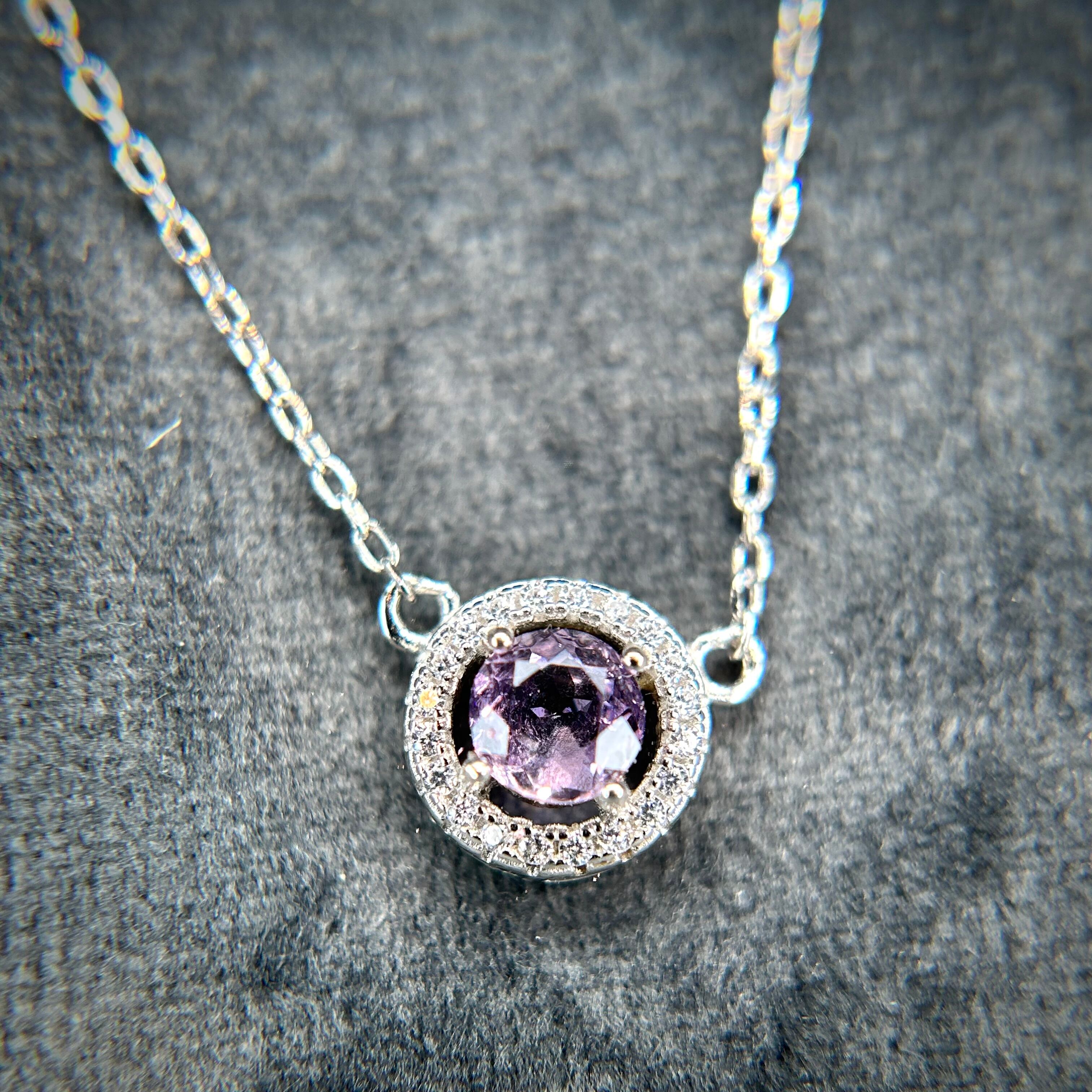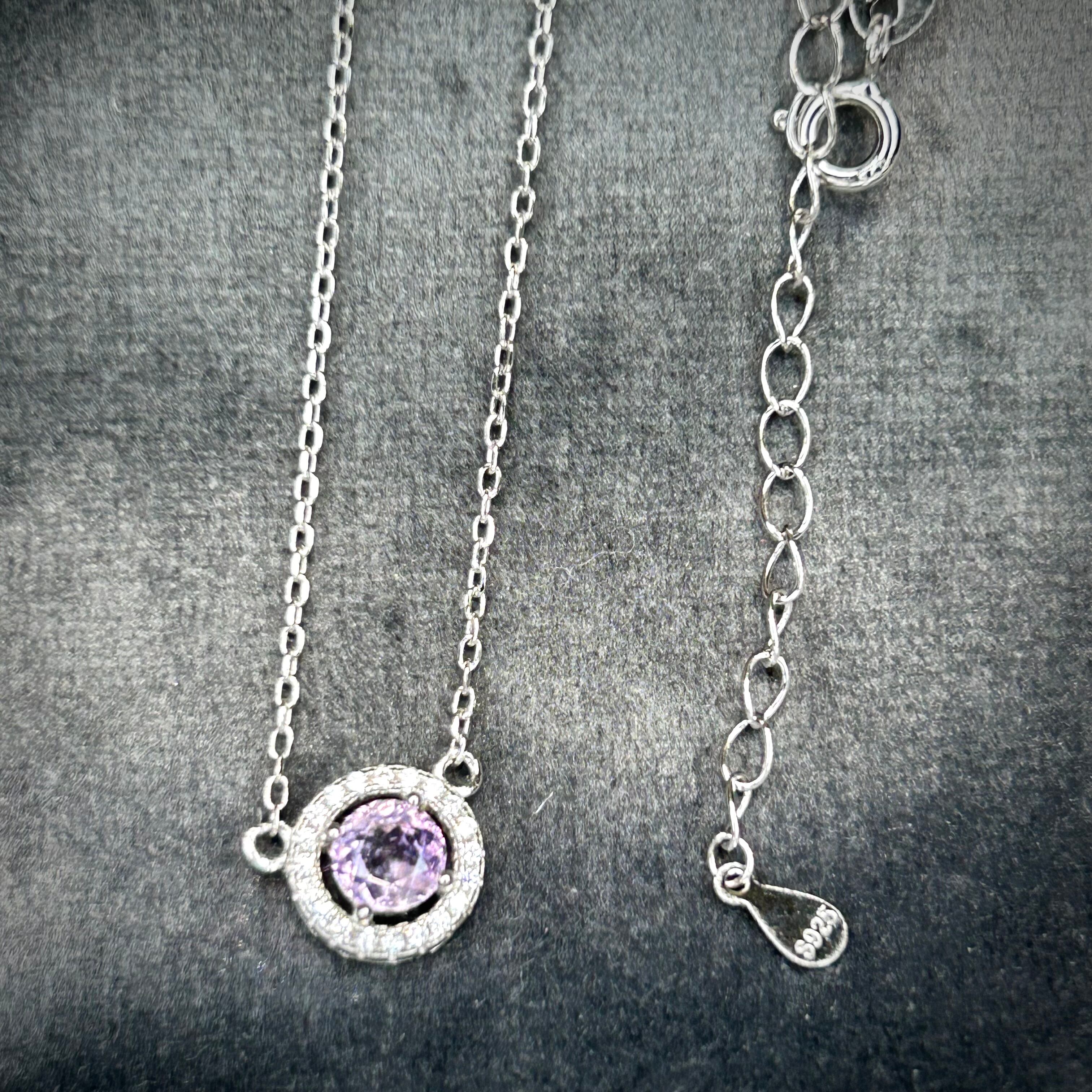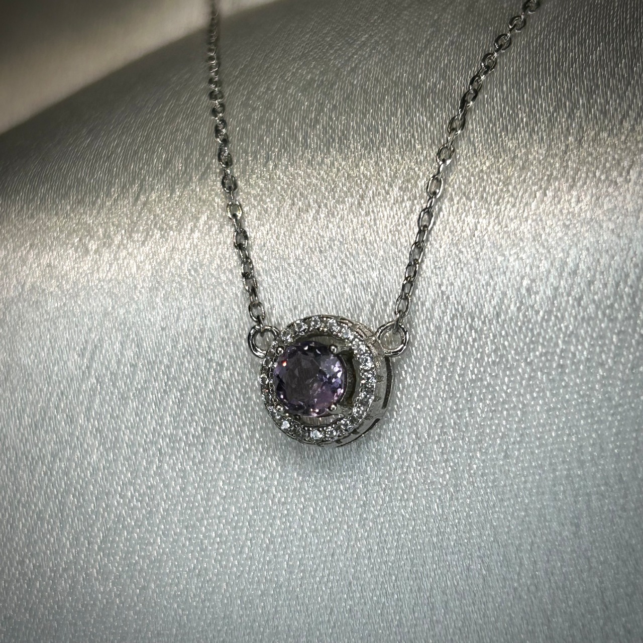 シルバー製、パープルスキャポライトの両吊りネックレス。