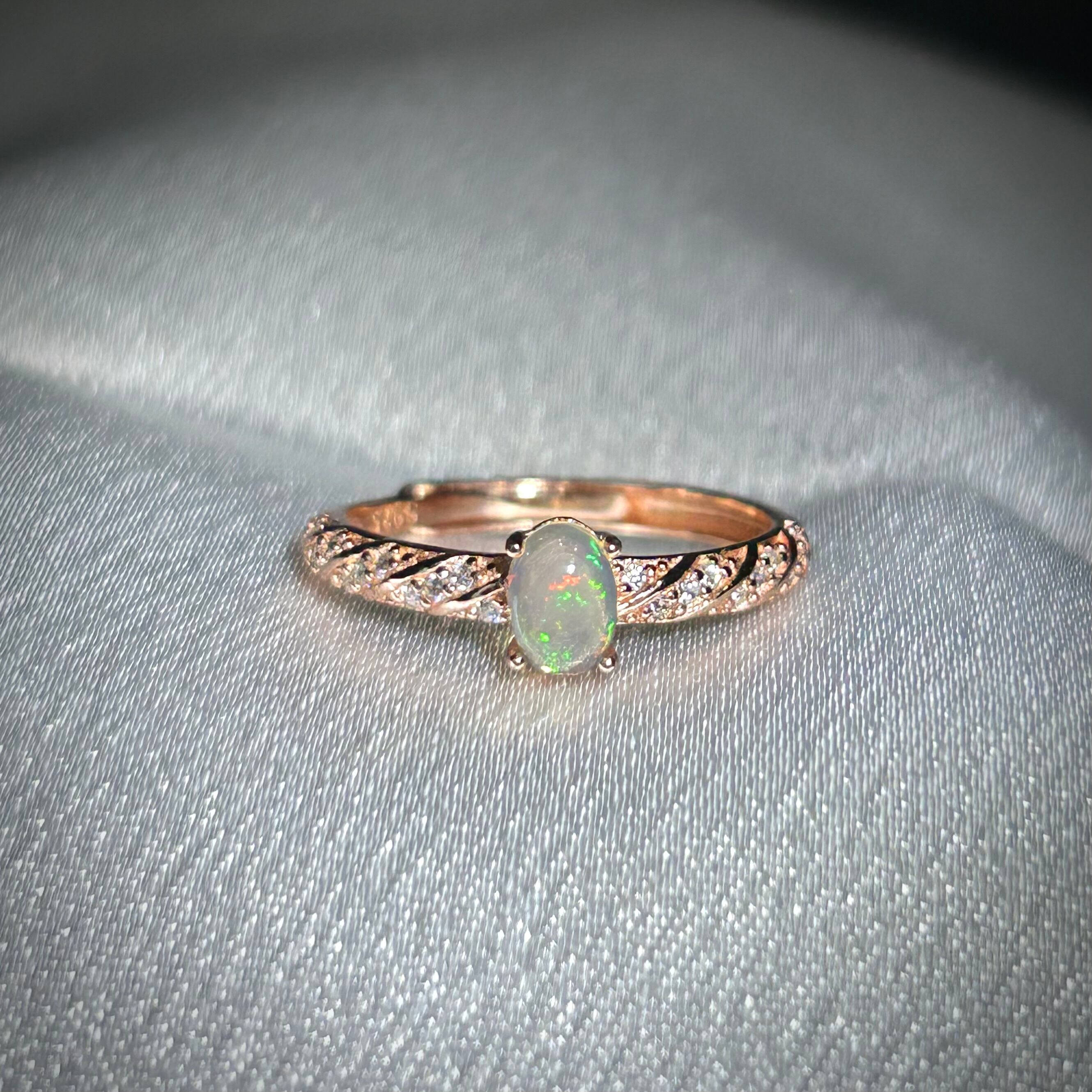 シルバー製ピンクゴールドカラー オパール スパイラルリング 10月誕生石 フリーサイズ