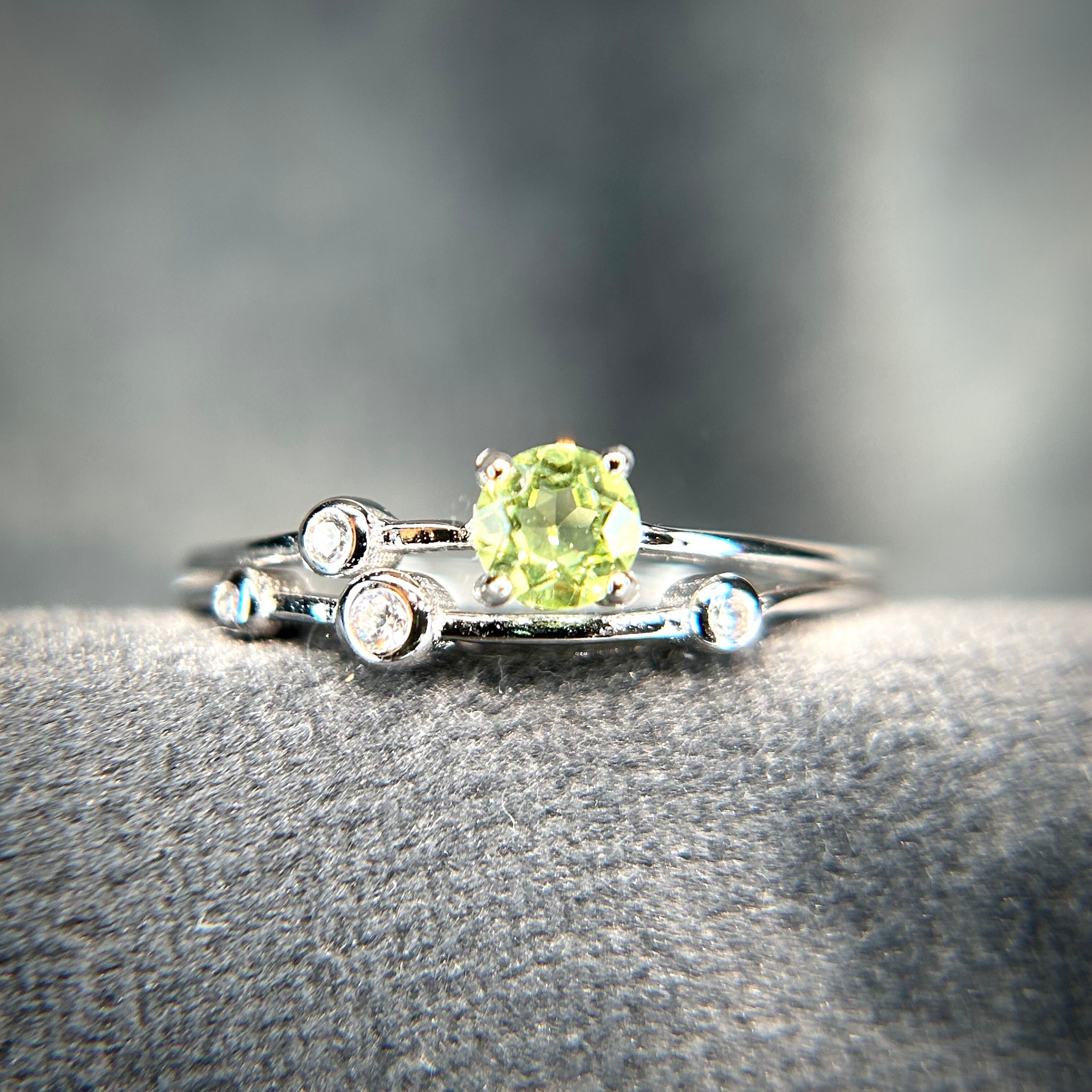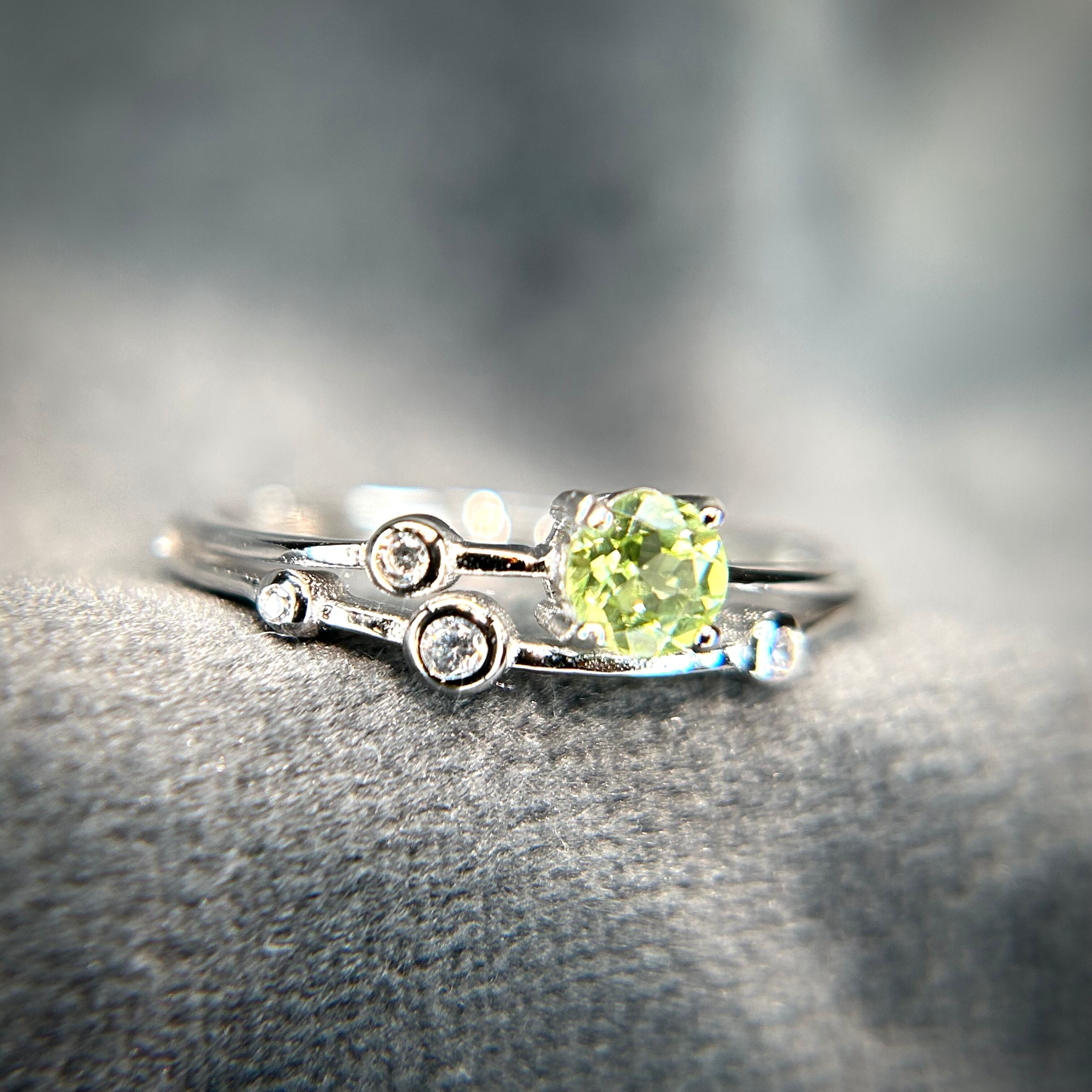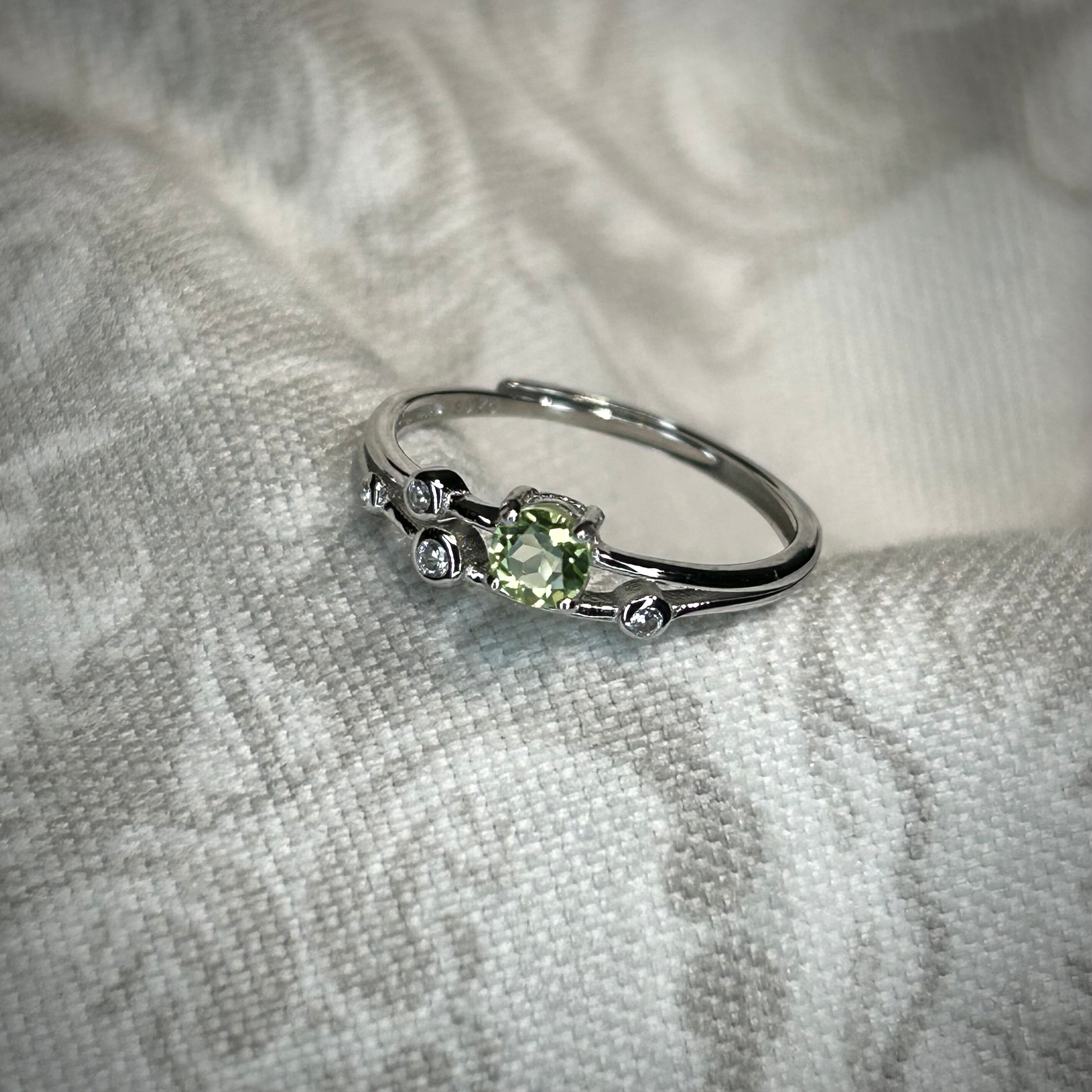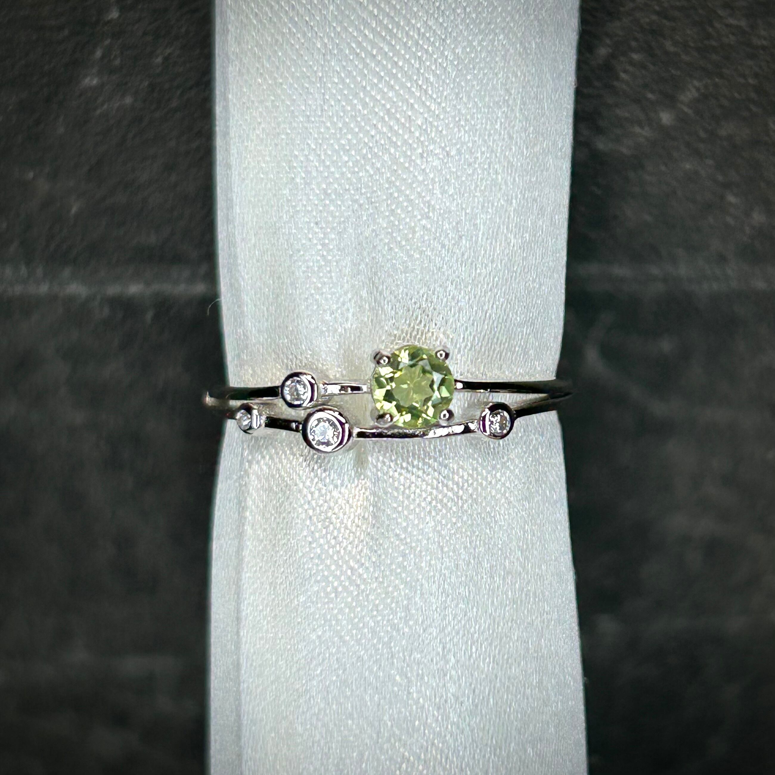 シルバー製 ペリドット ステーションリング 8月誕生石 フリーサイズ