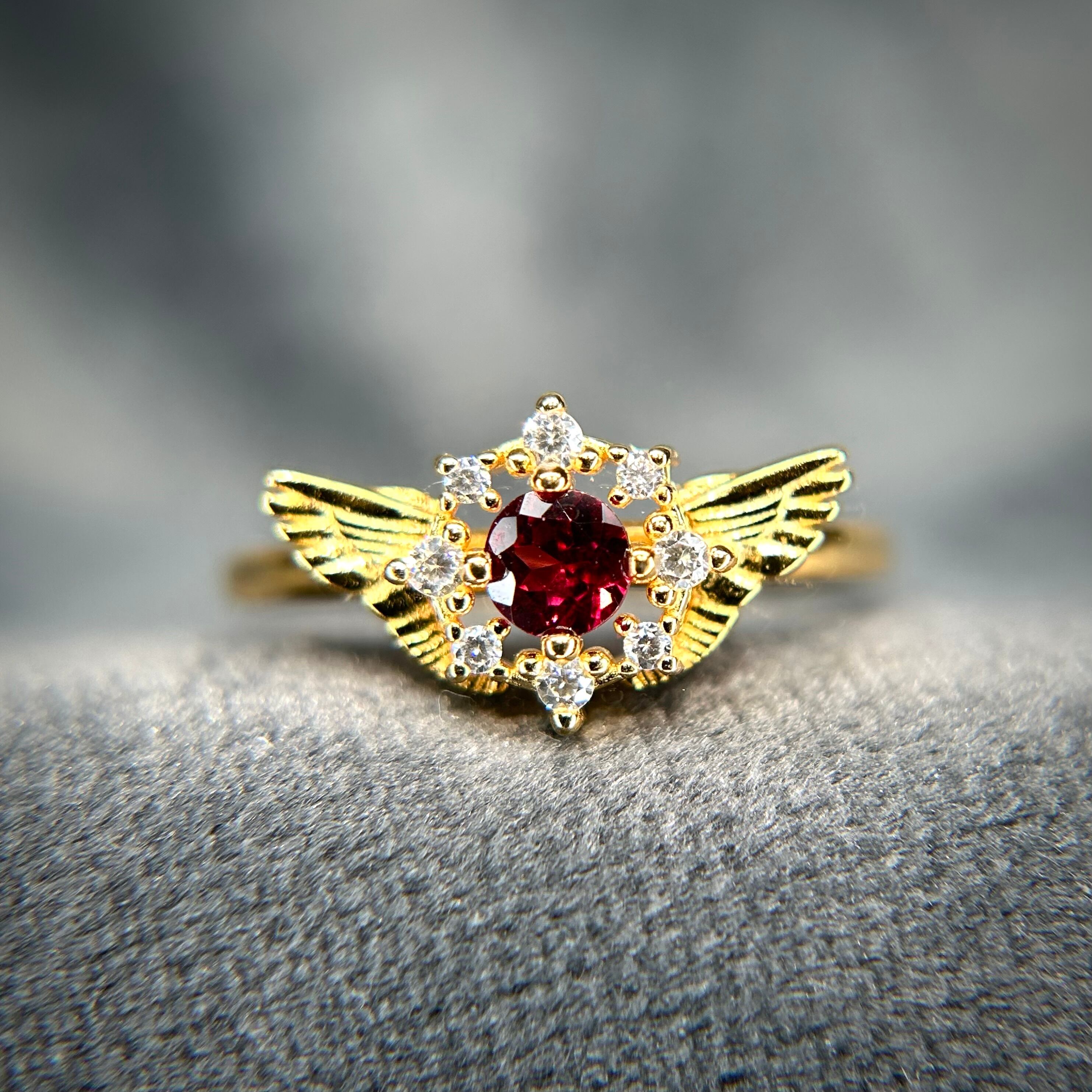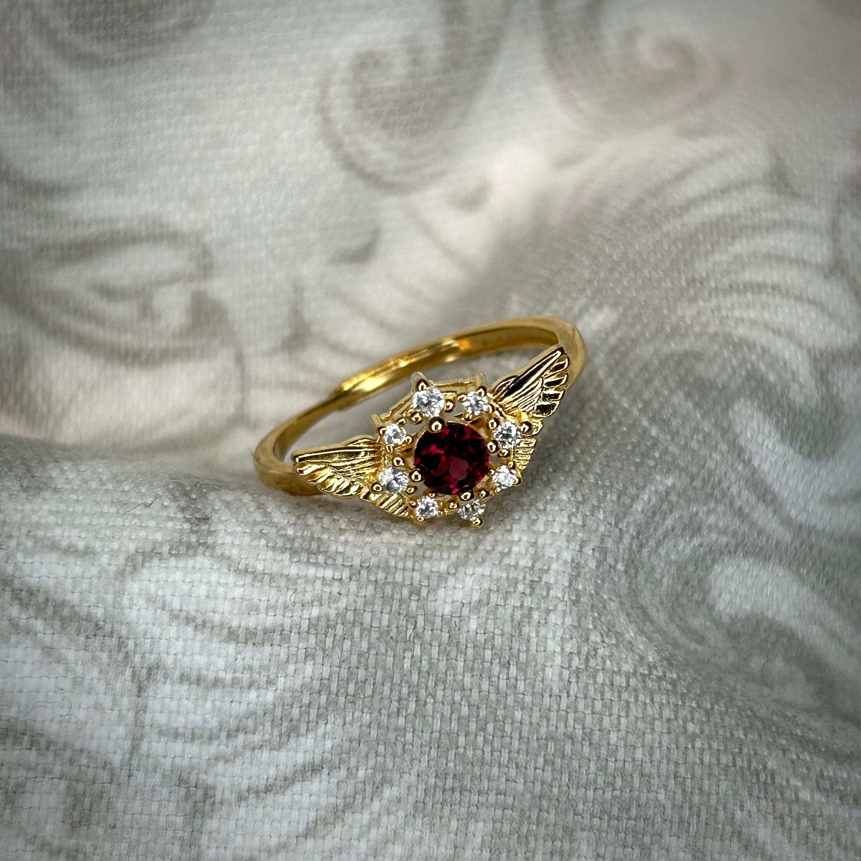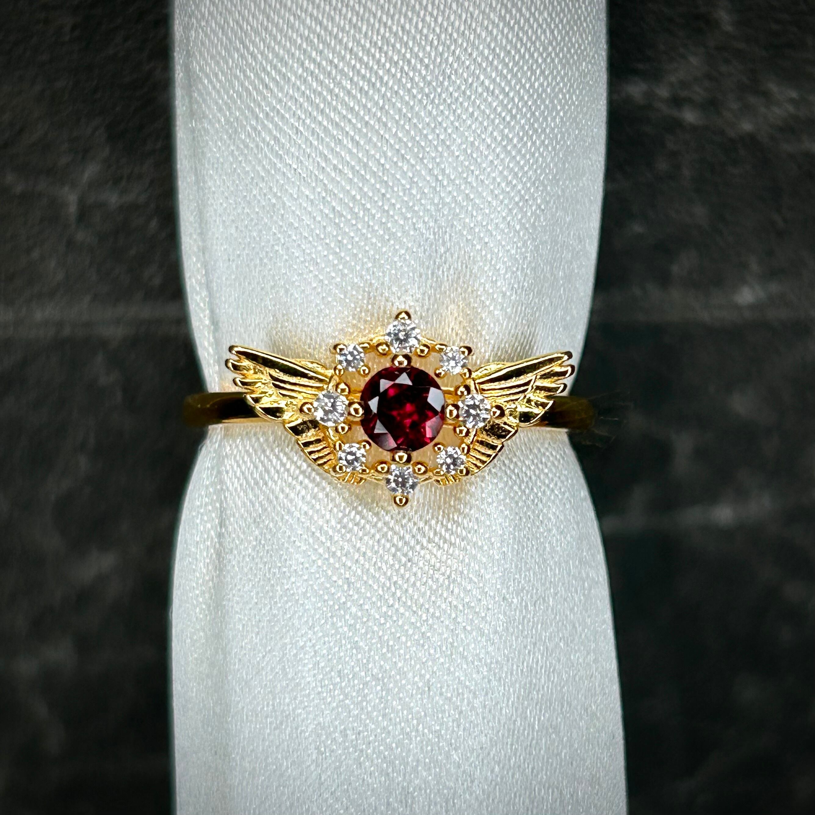 シルバー製ゴールドカラー ロードライトガーネット セレスリング 1月誕生石 10号以上での使用推奨