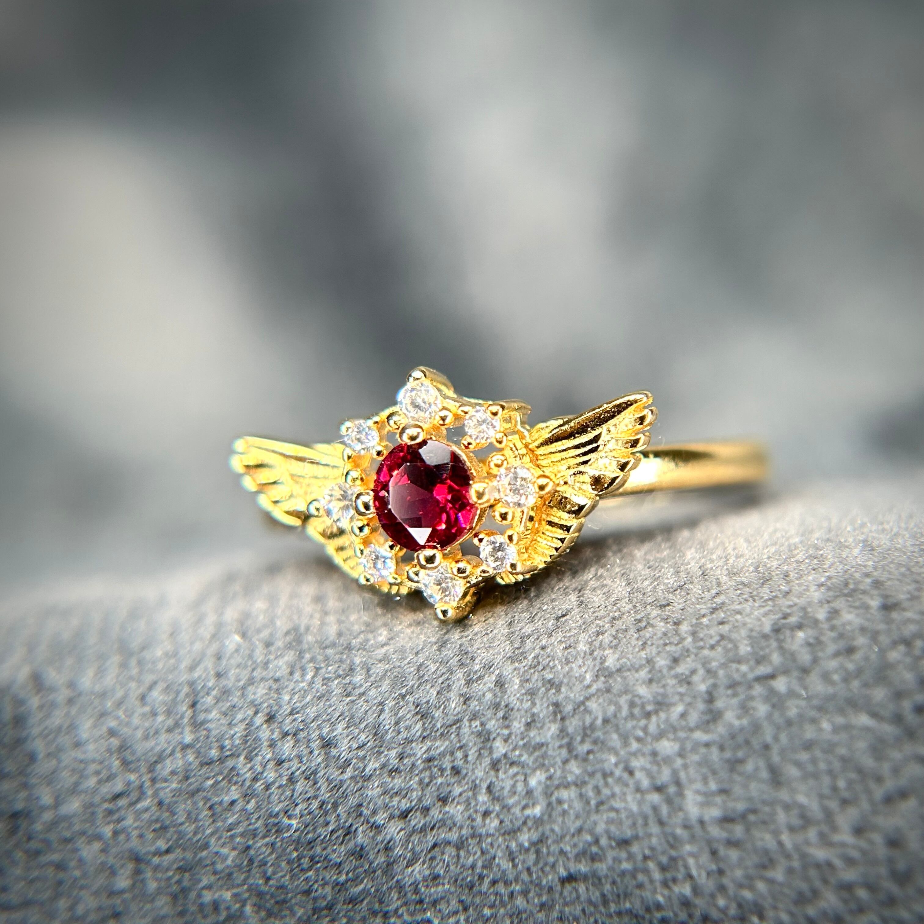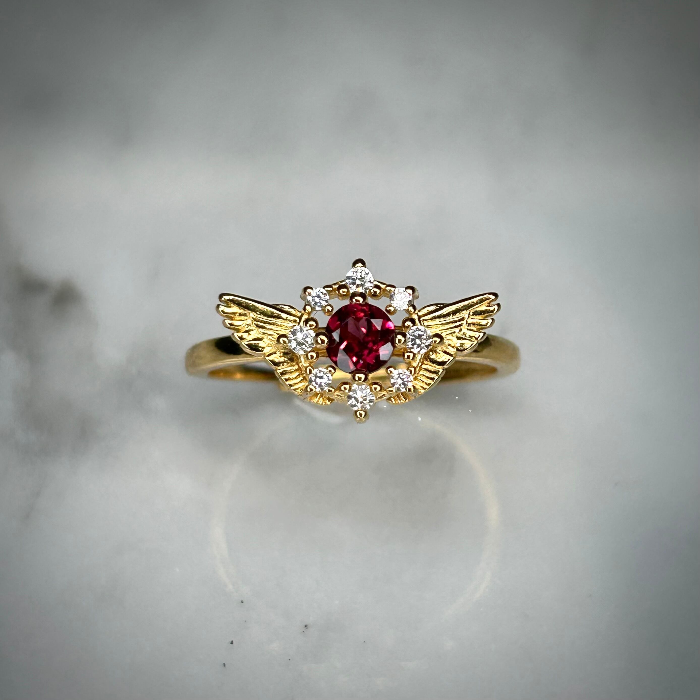 聖なる翼に天然石を宿した、セレスリング。