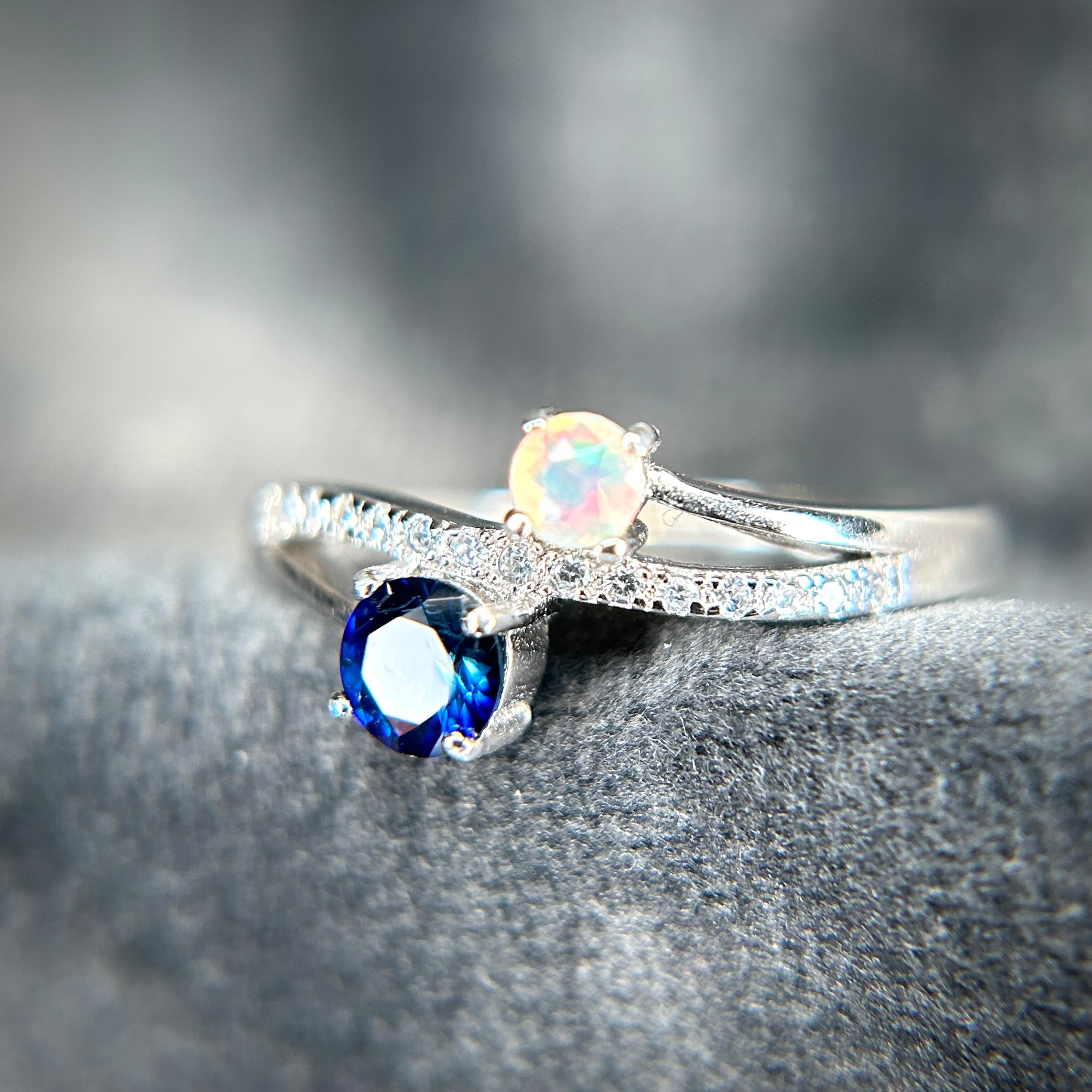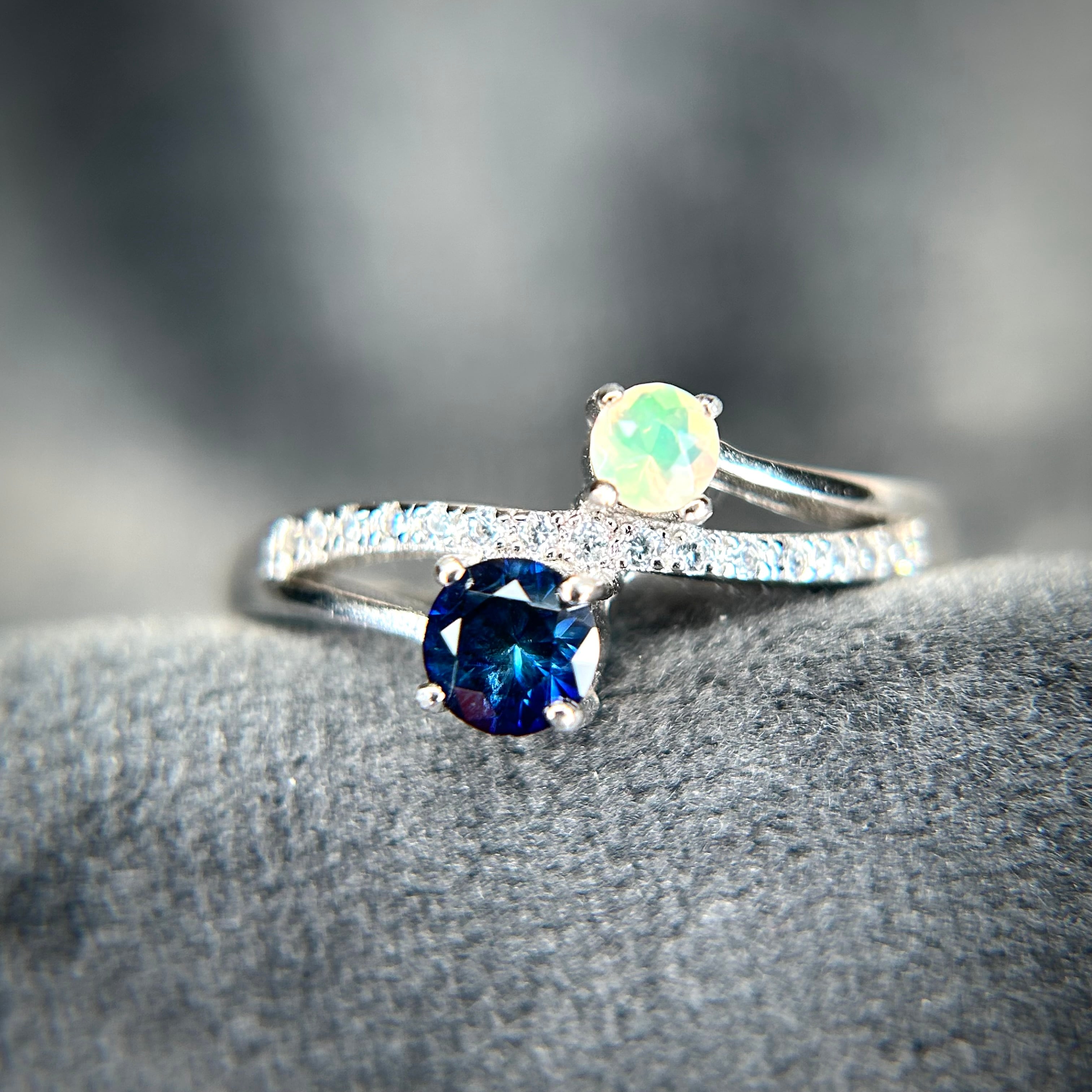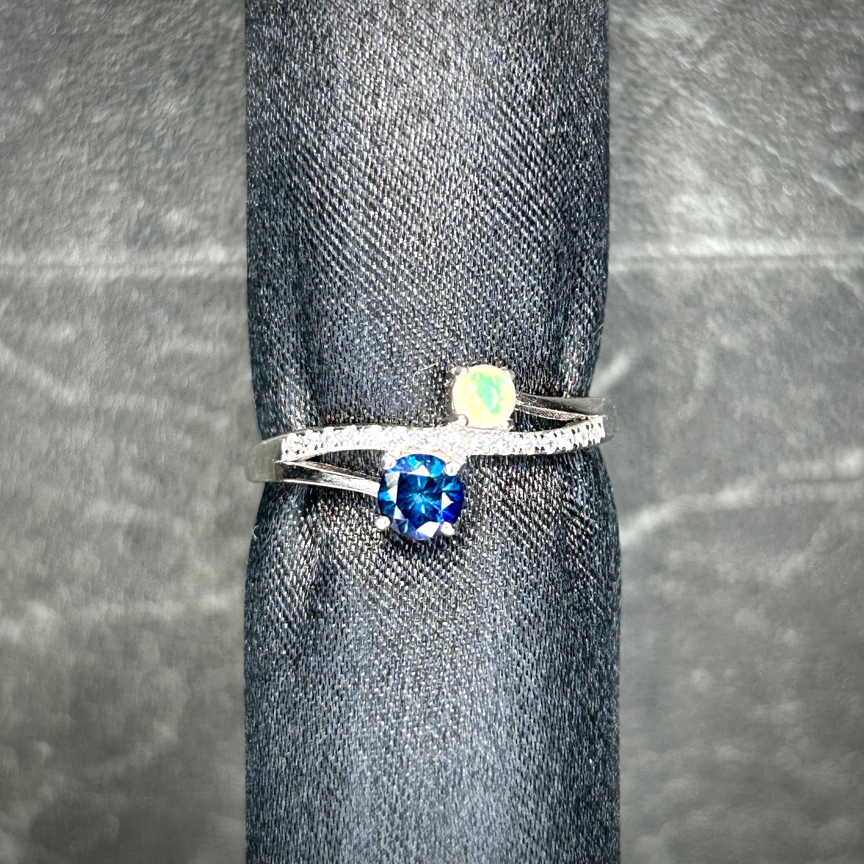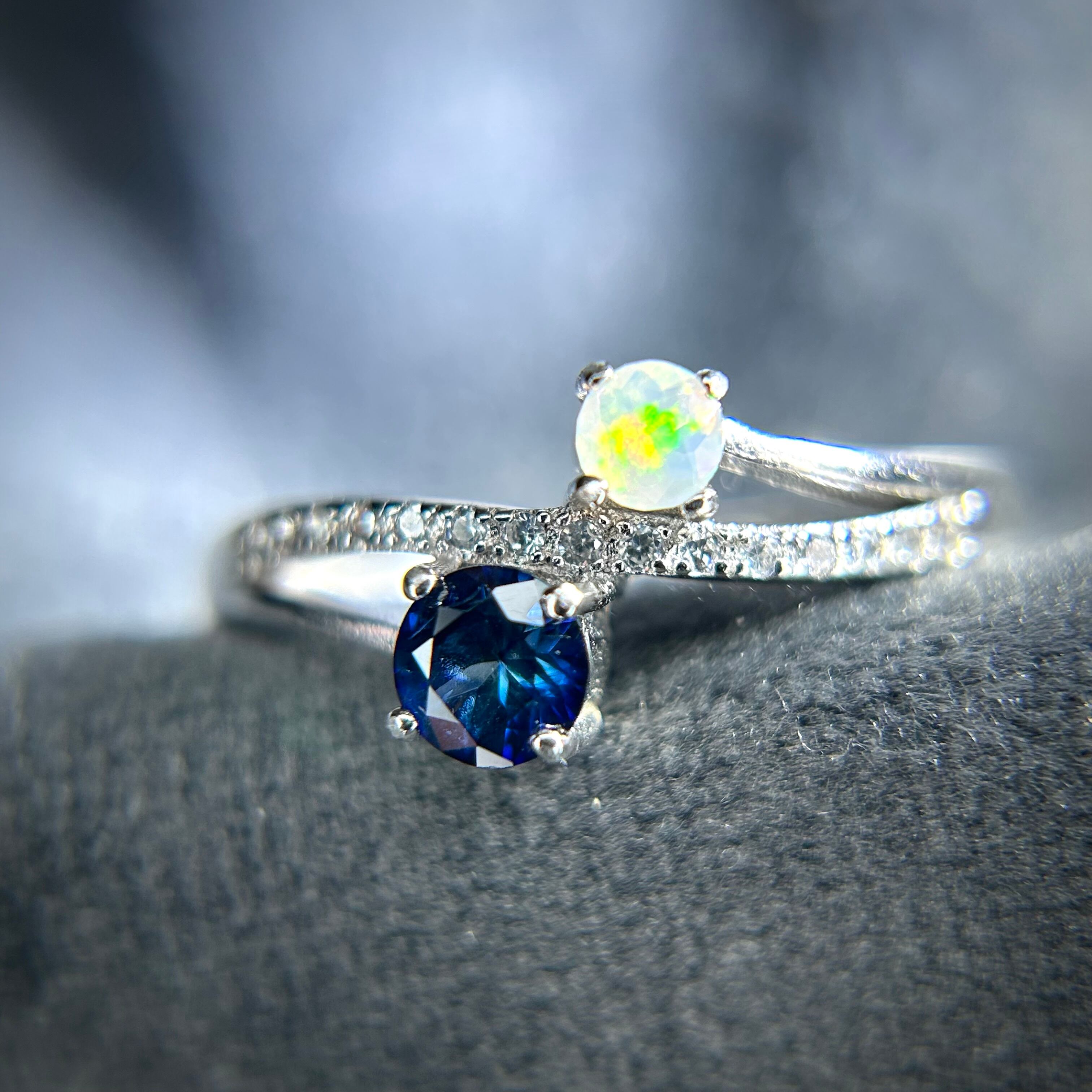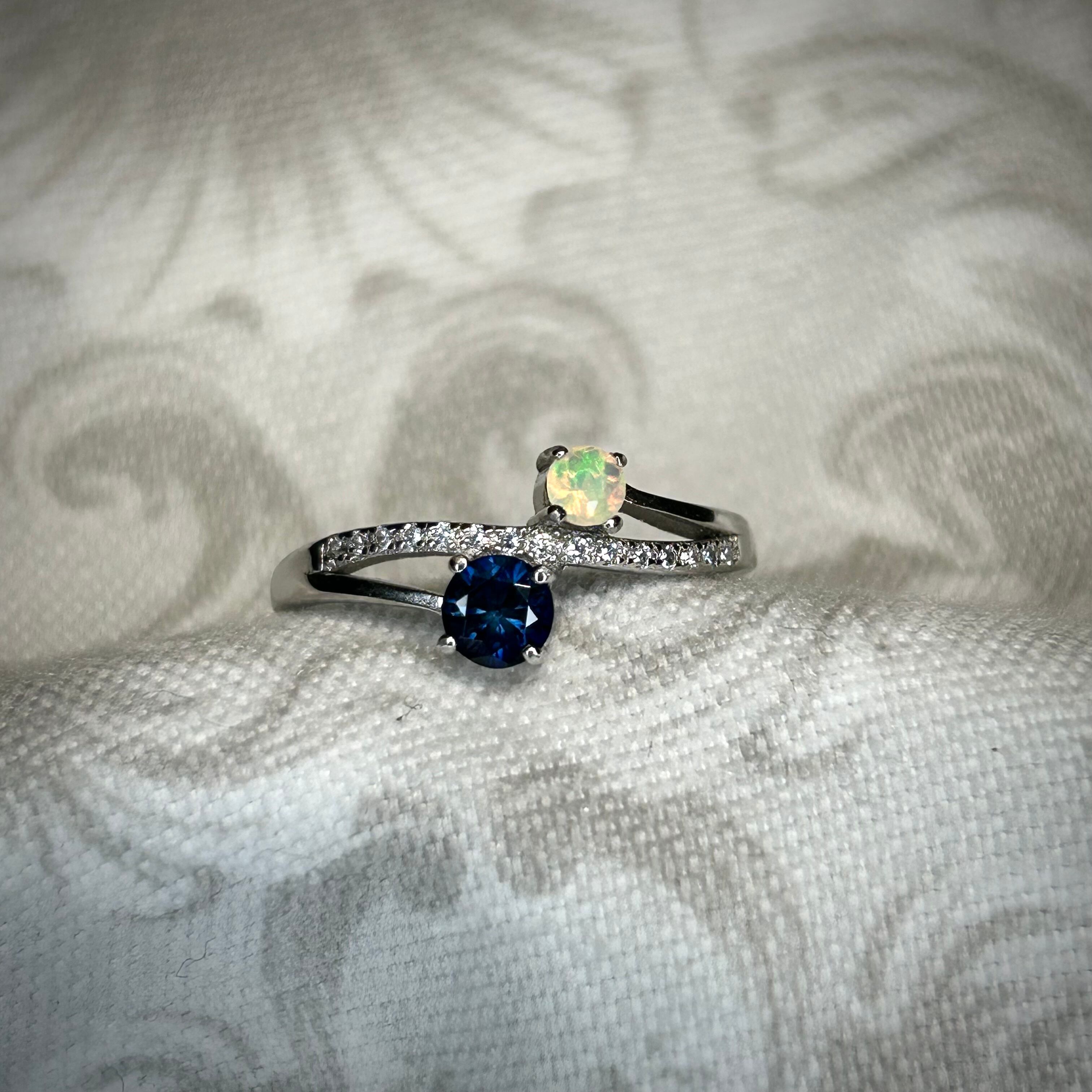 シルバー製 、サファイア&オパールのツインリング。