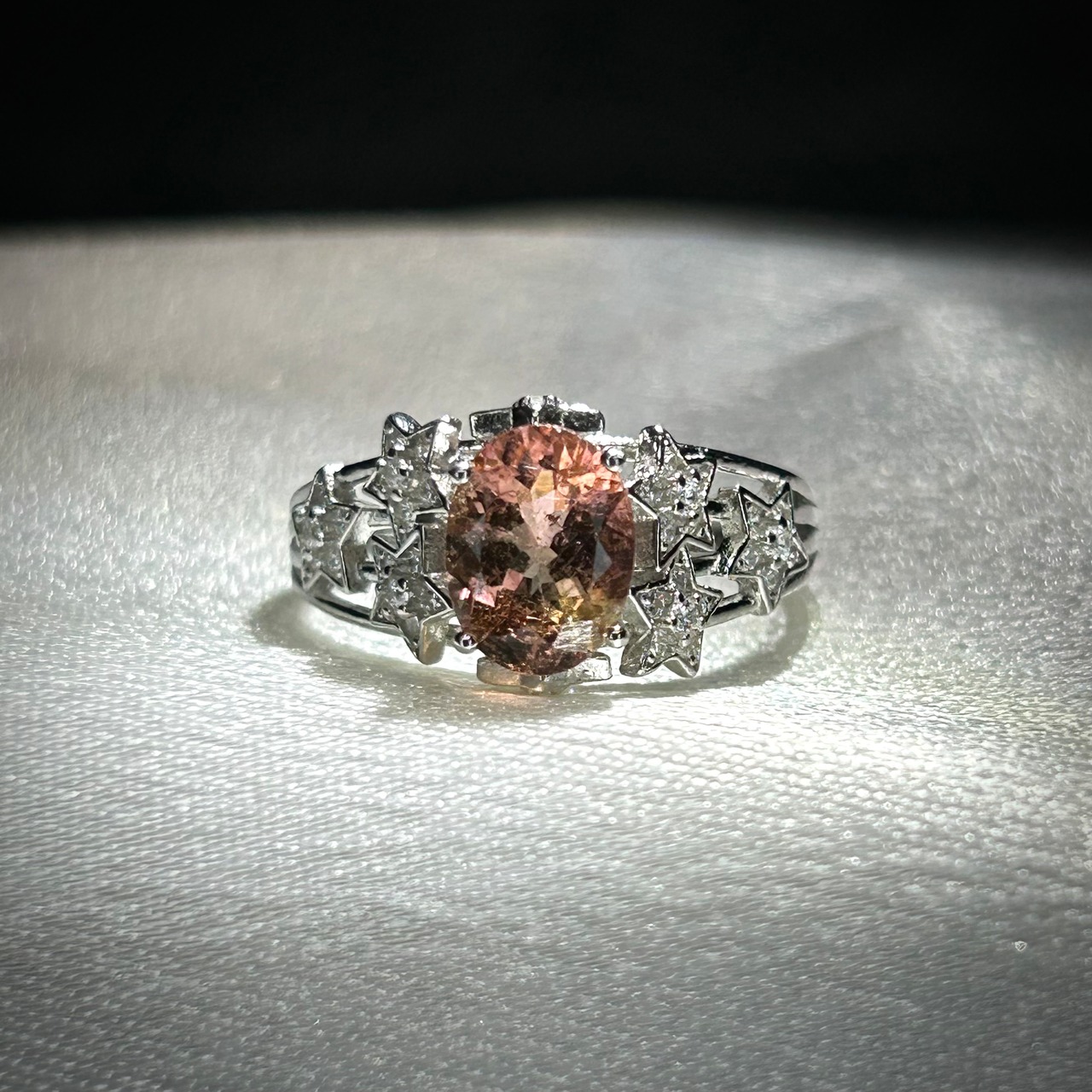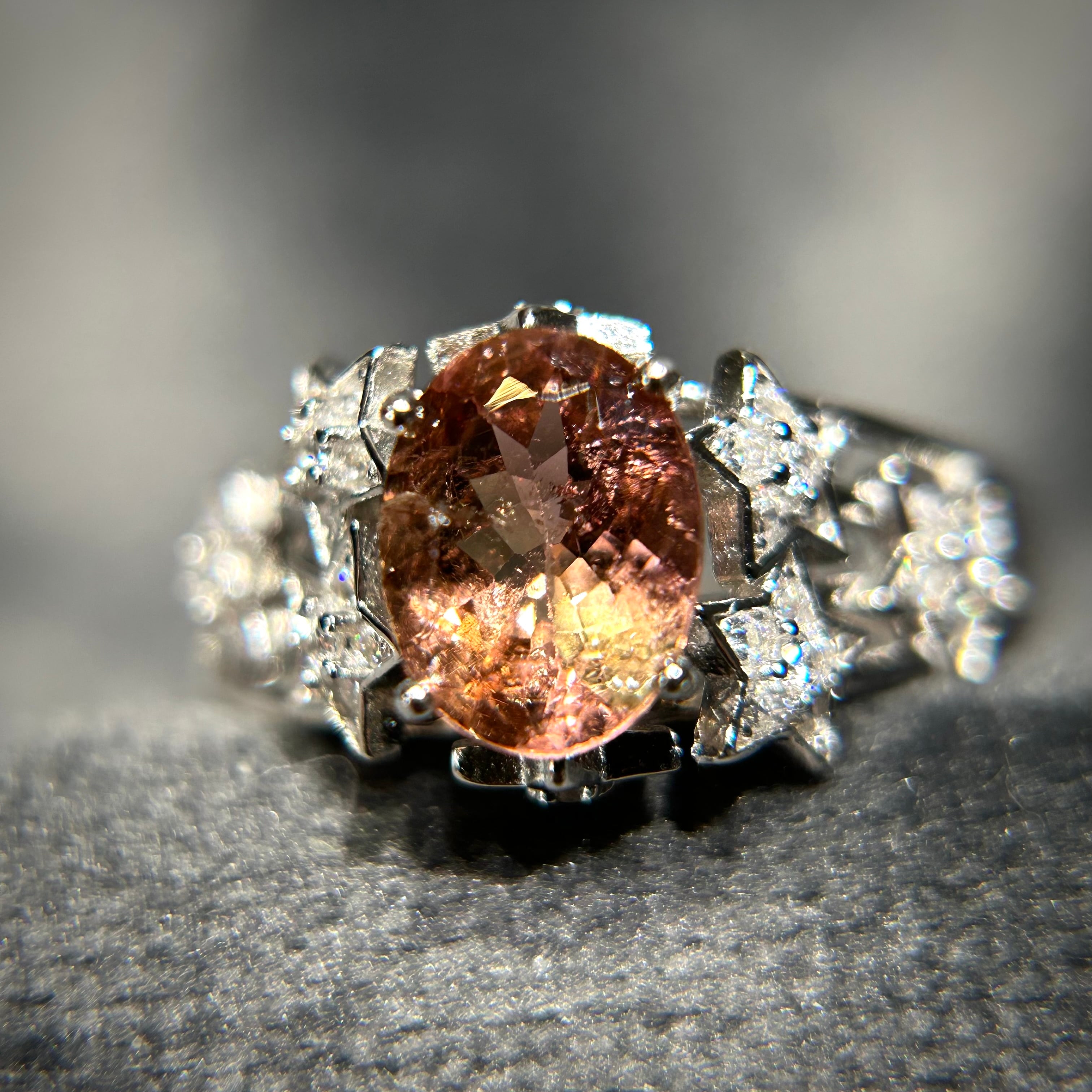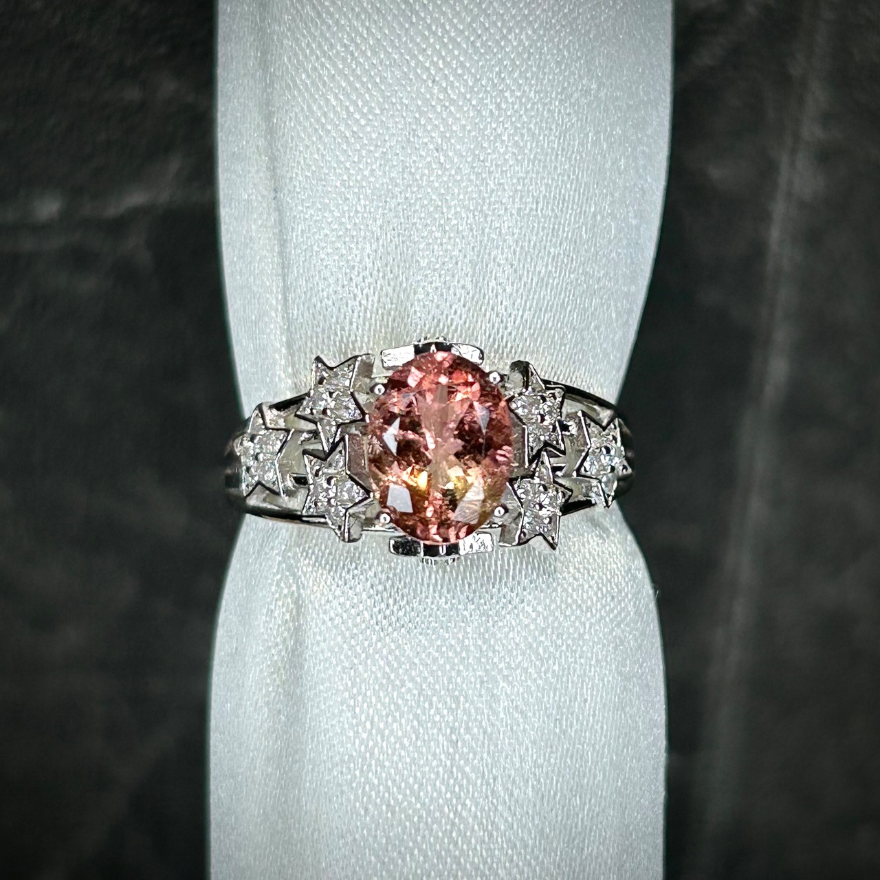 オレンジピンクにほんのりイエローも感じられる、バイカラーなトルマリンを使用。