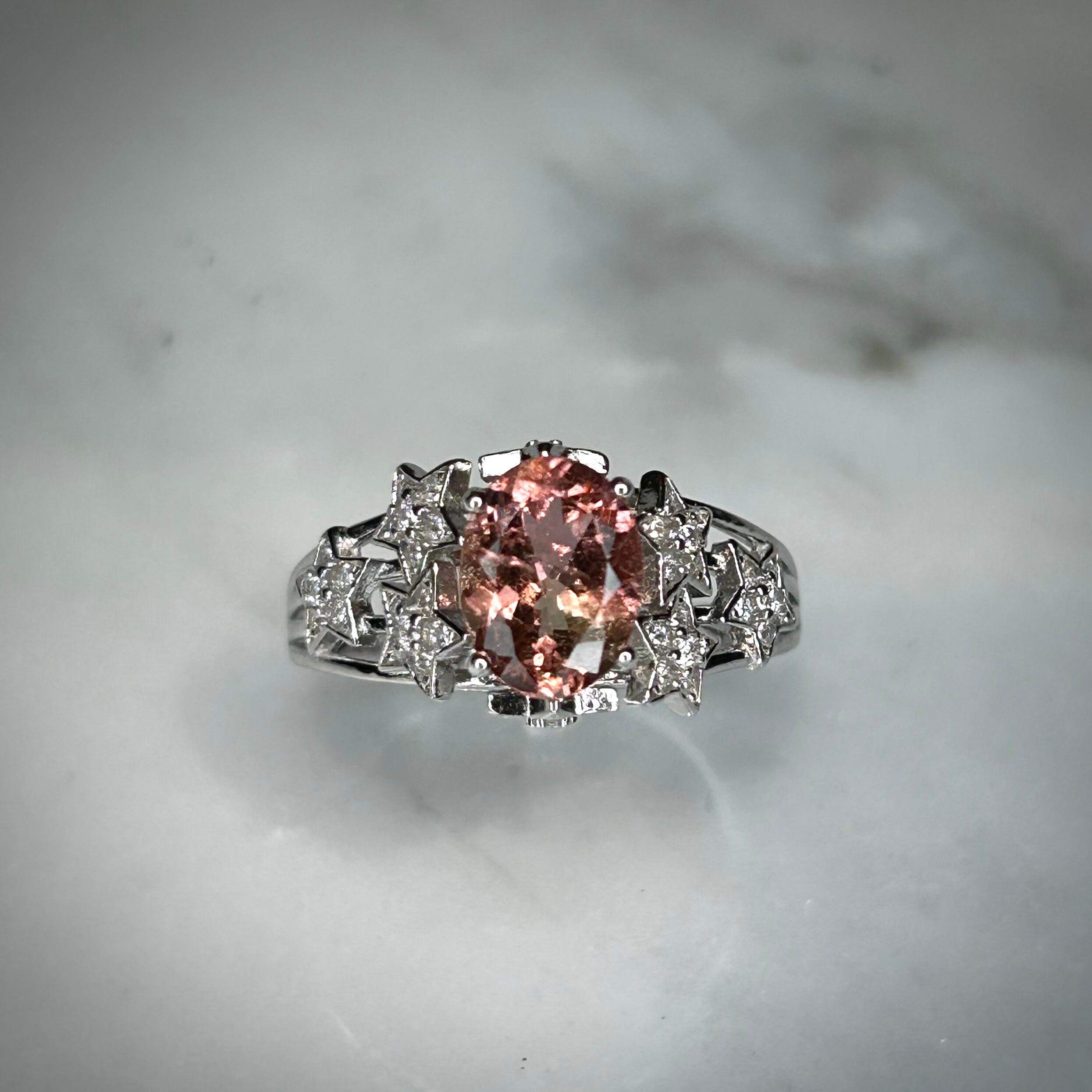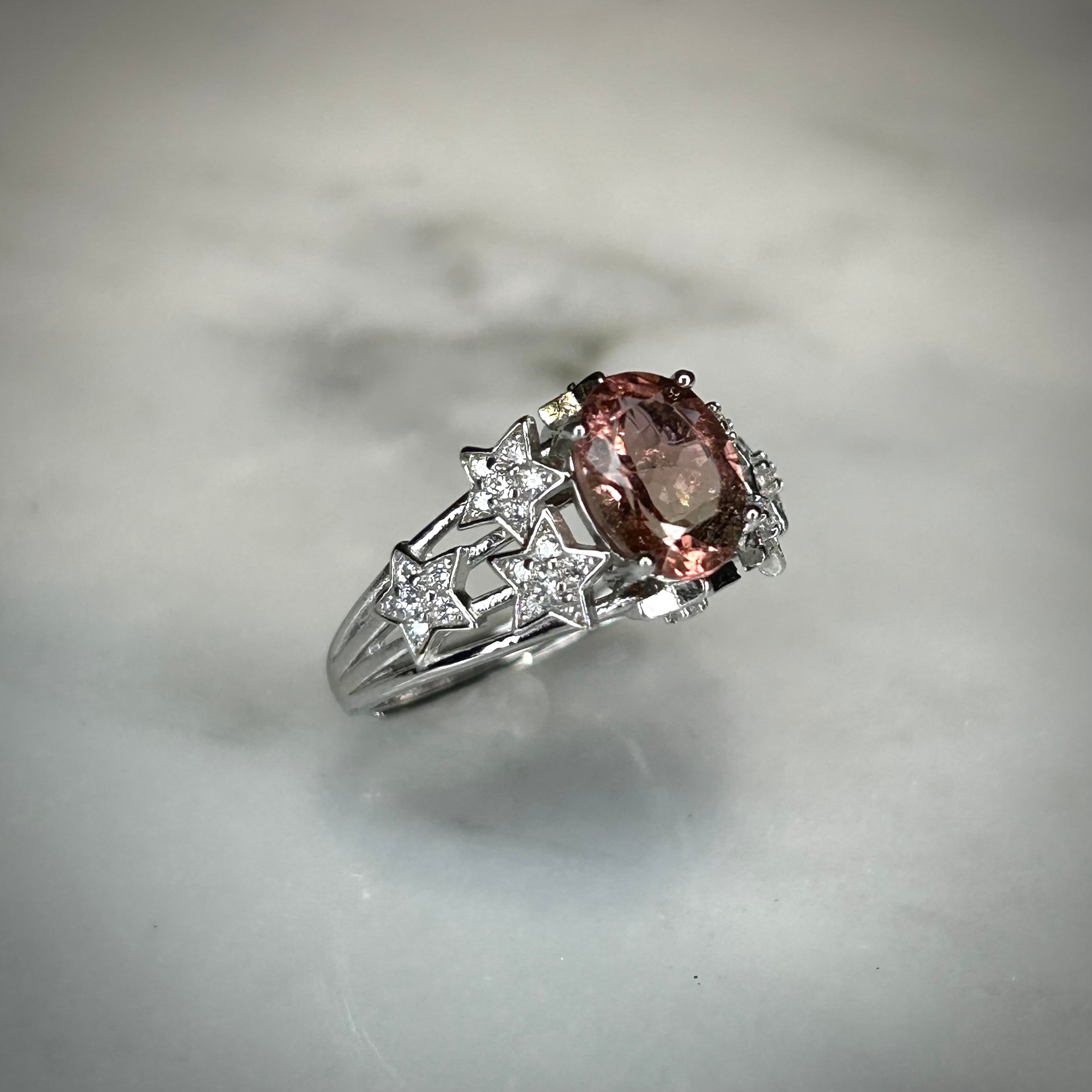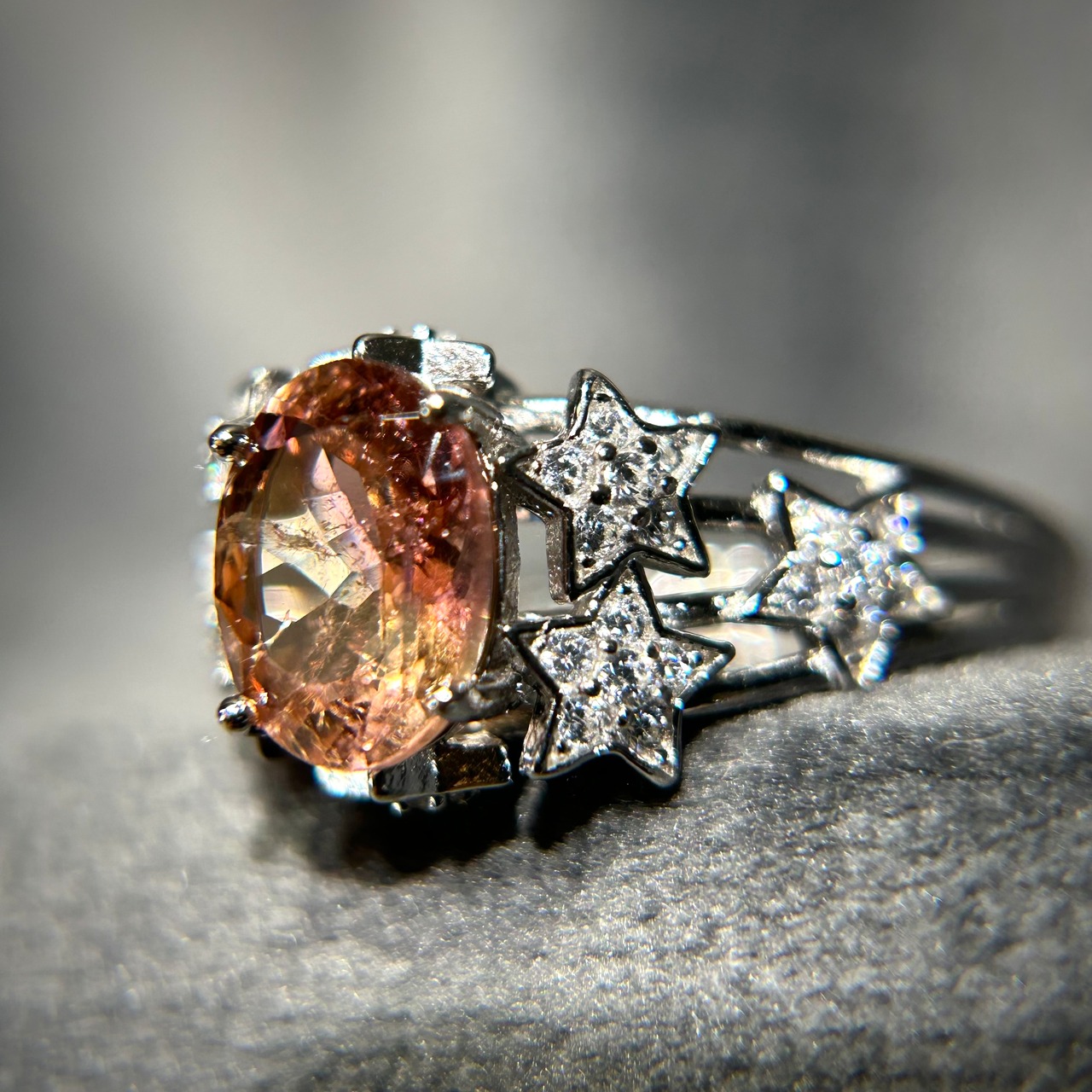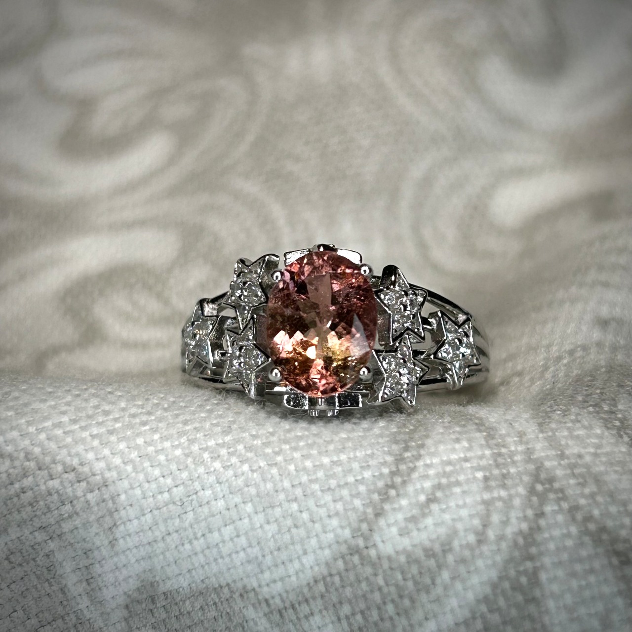 オレンジピンクにほんのりイエローも感じられる、バイカラーなトルマリンを使用。