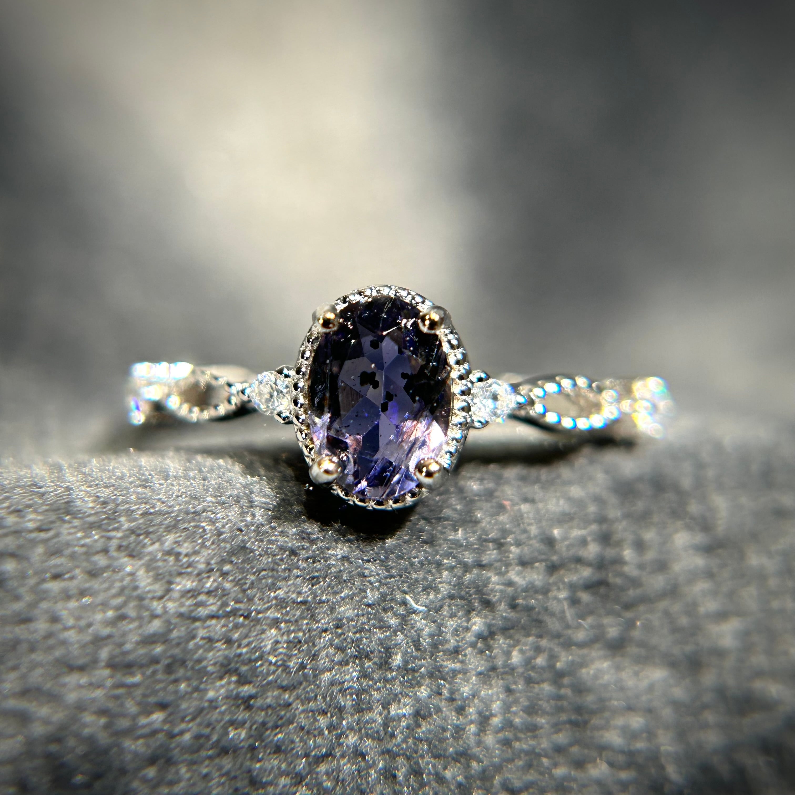 シルバー製、アイオライトサンストーンのミルレースリング。