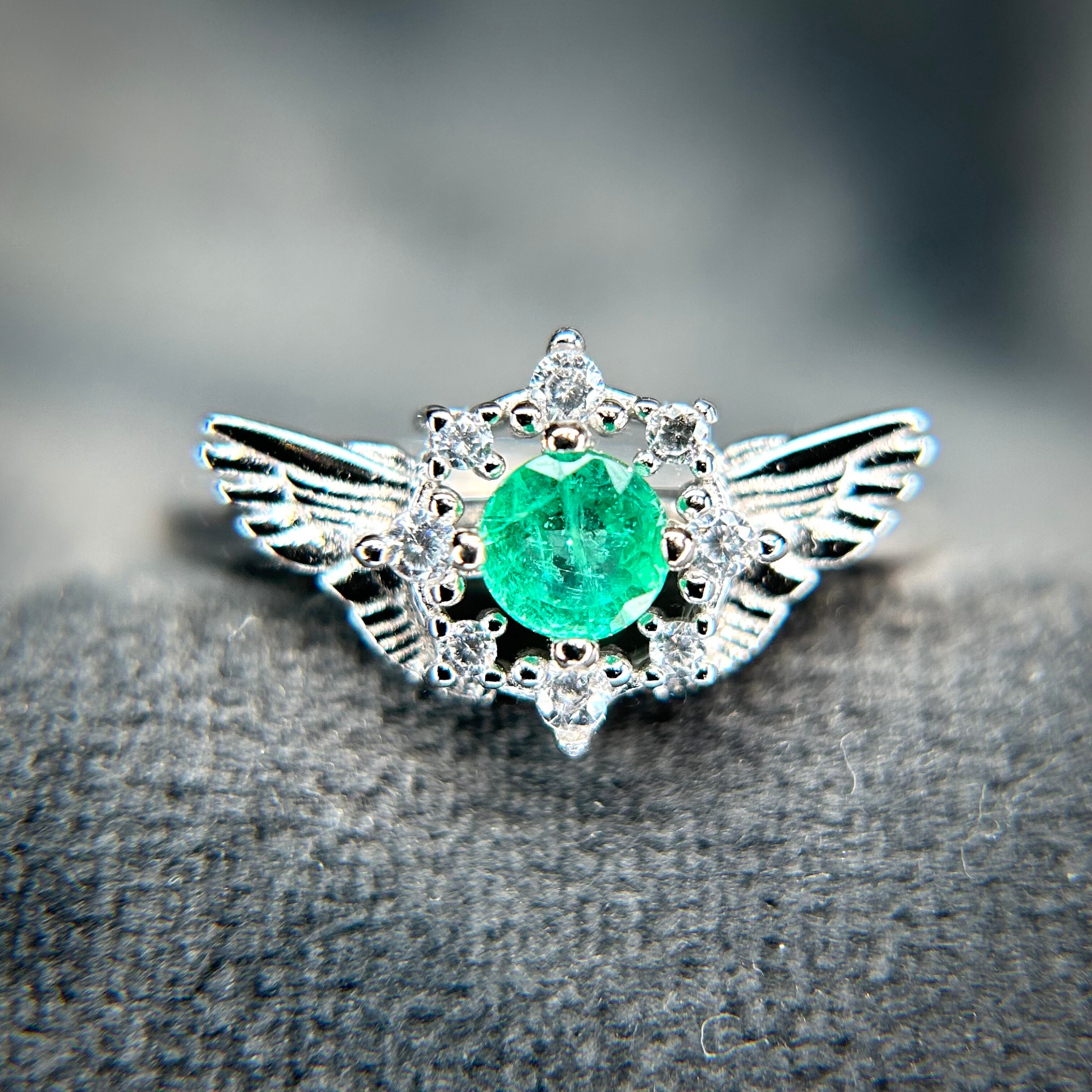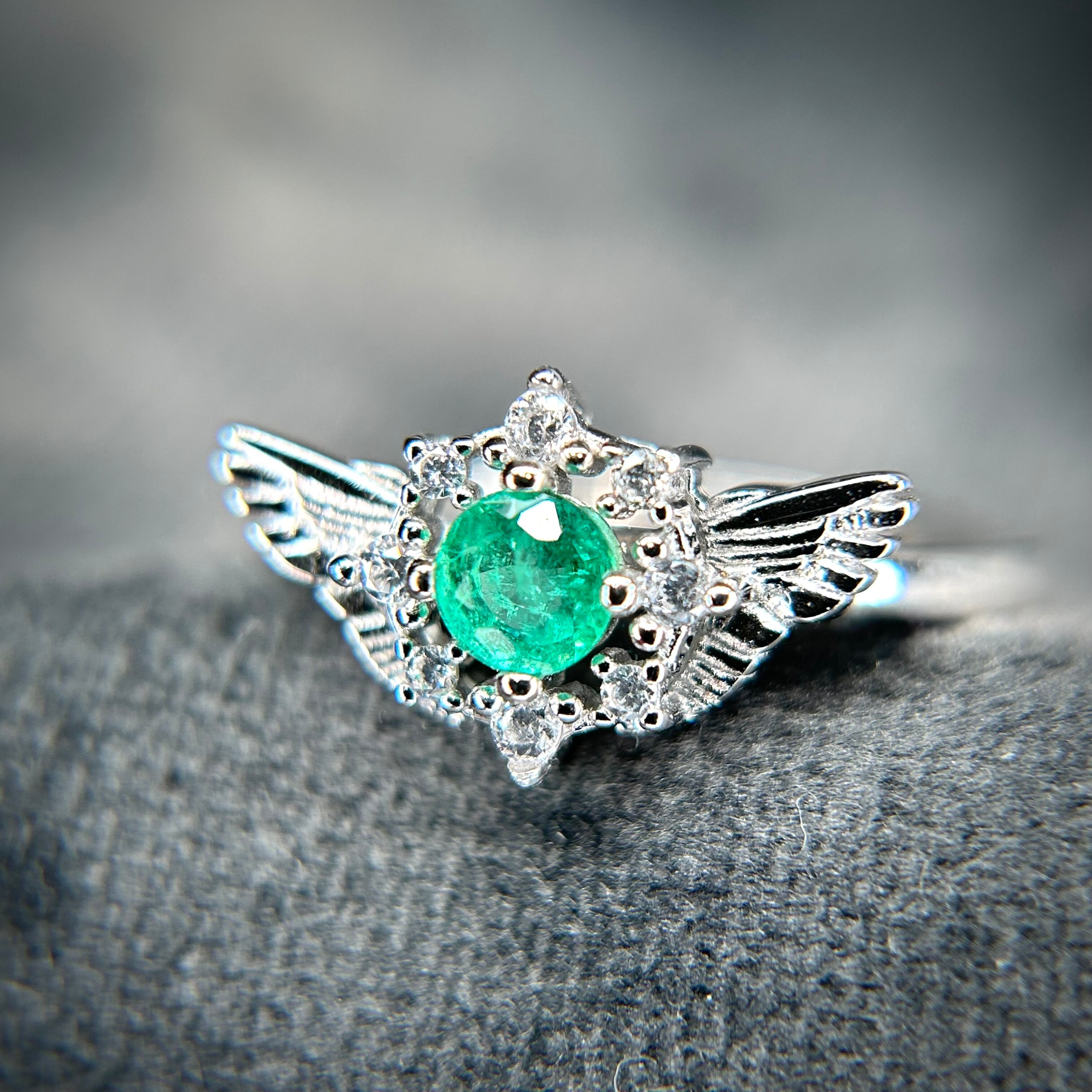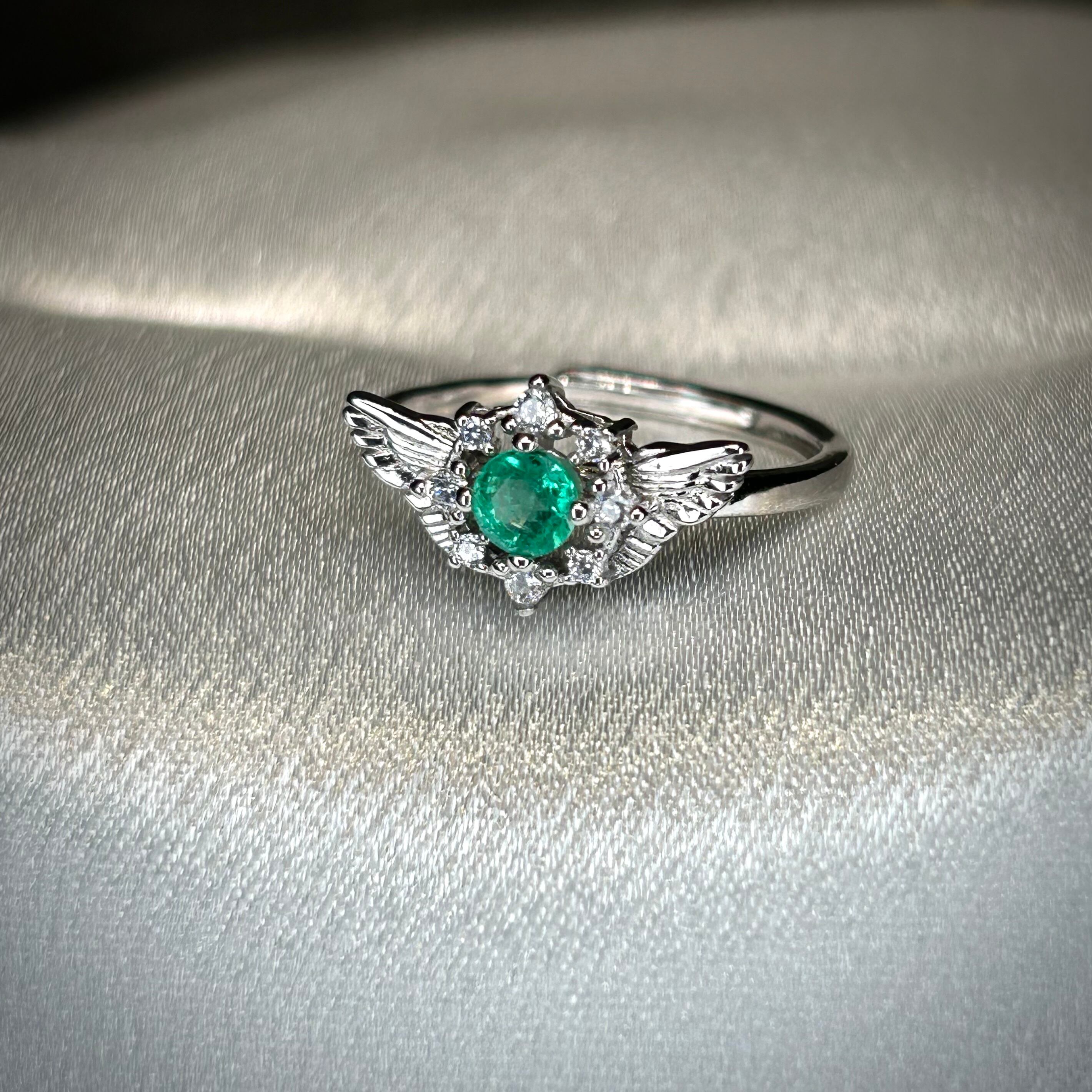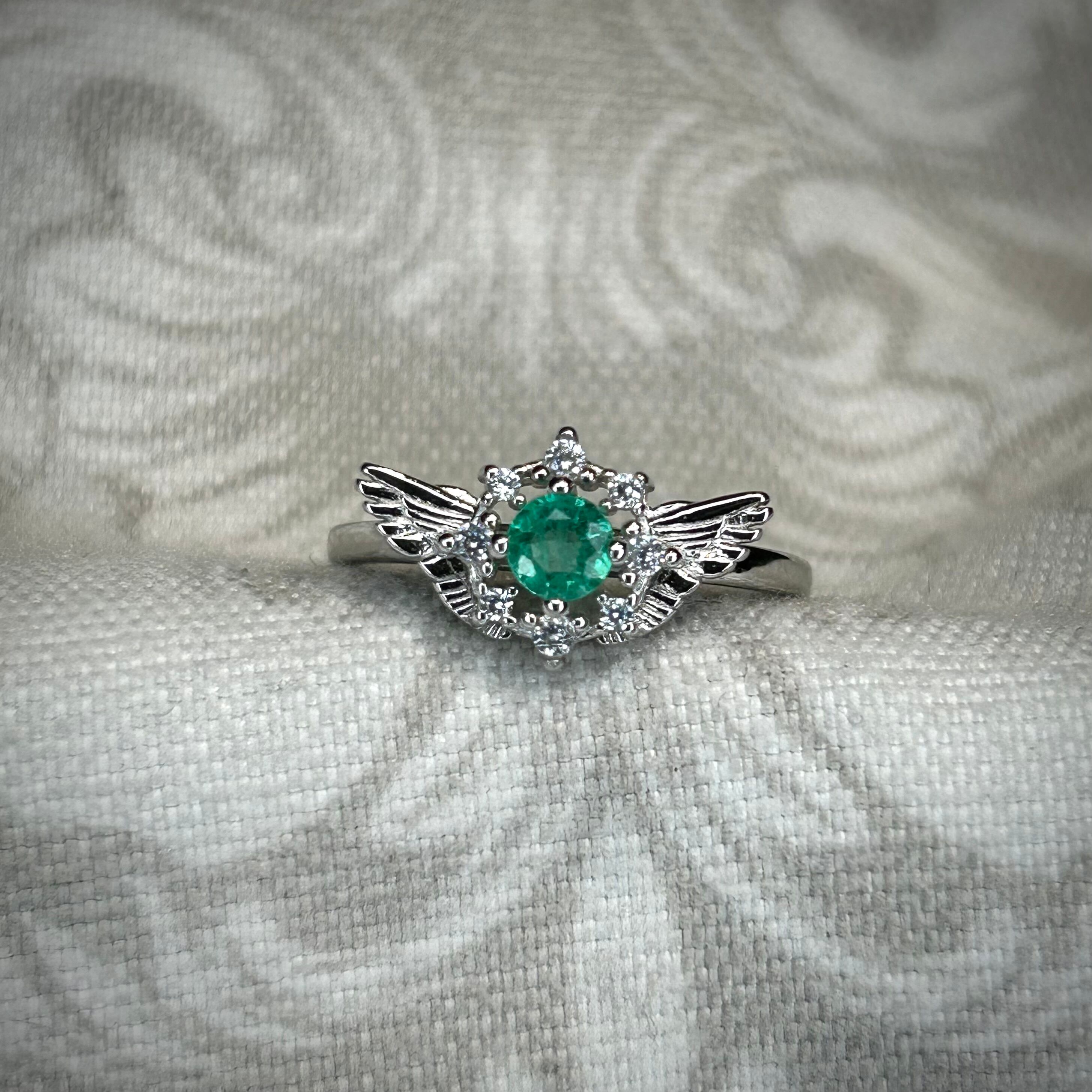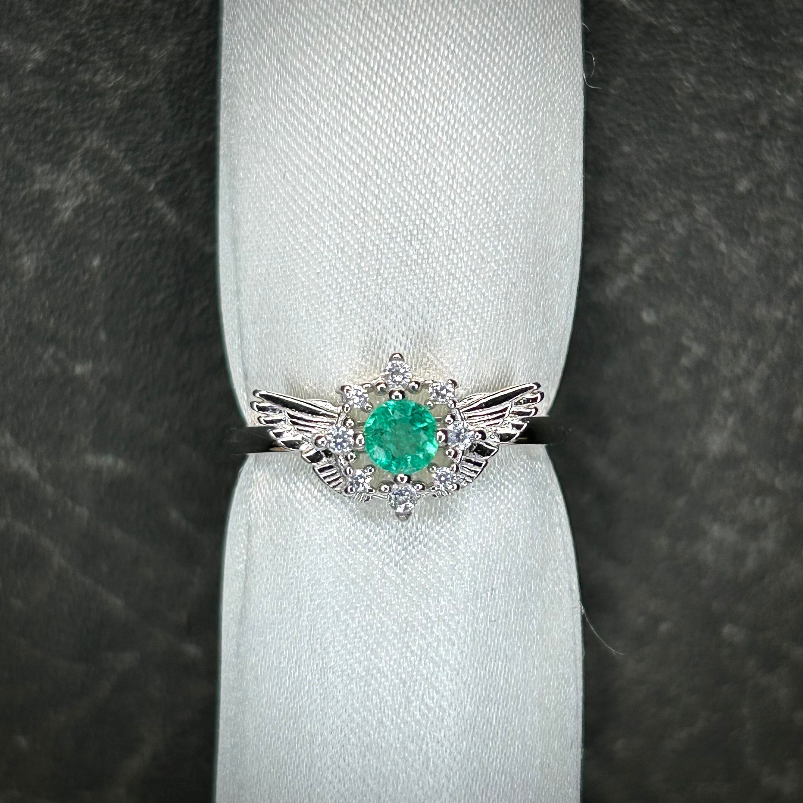 シルバー製、エメラルドのセレスリング。