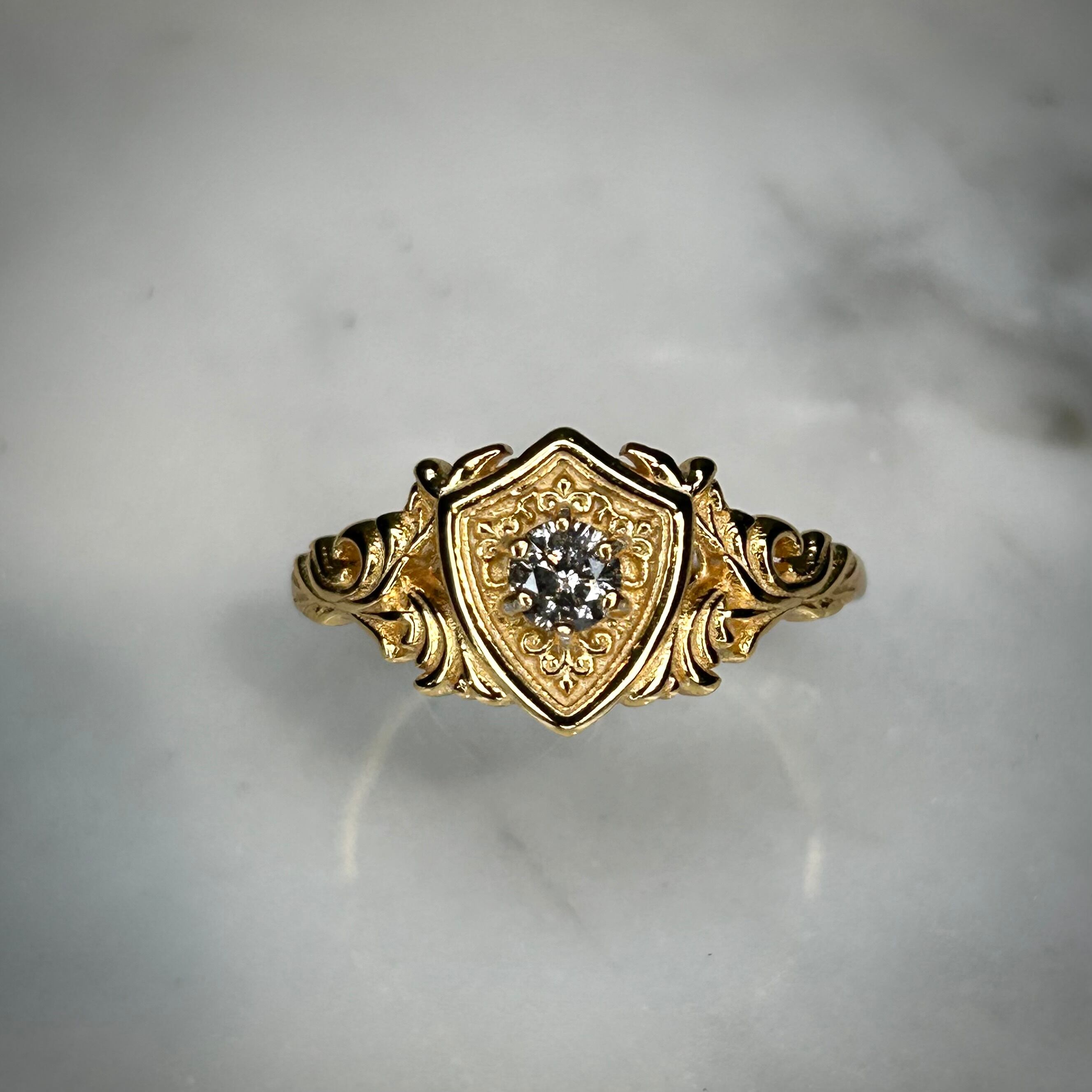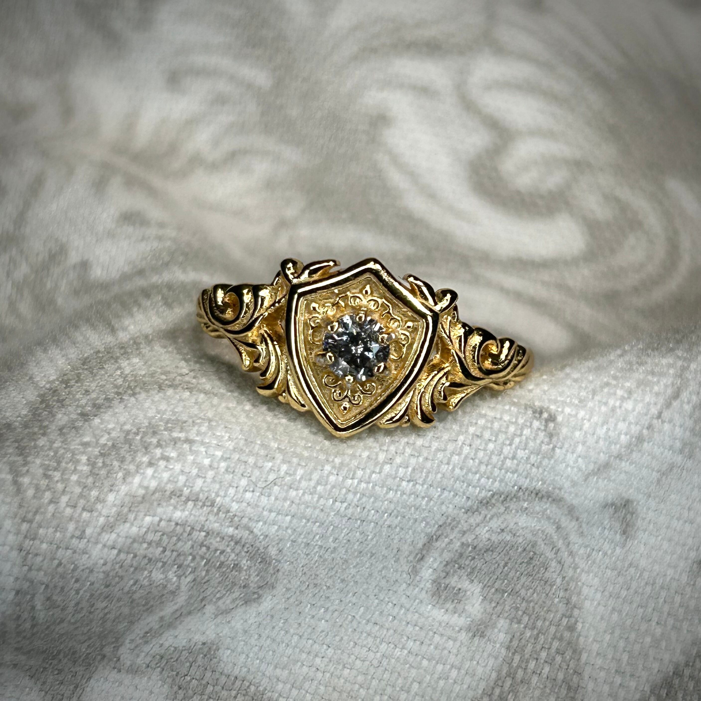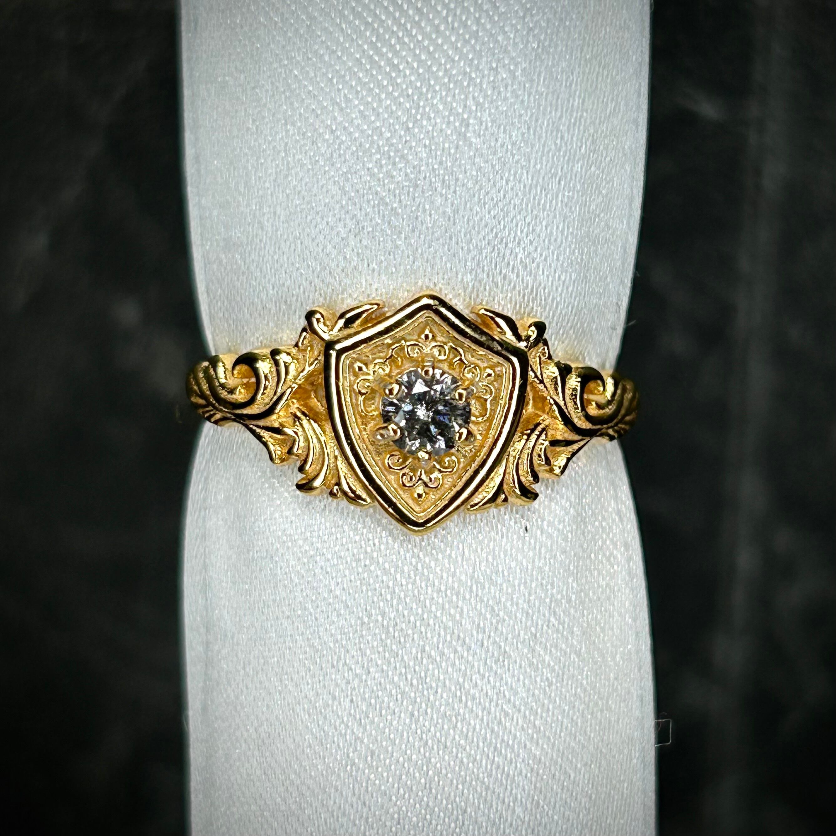 シルバー製ゴールドカラー、ダイヤモンドのガーディアンリング。