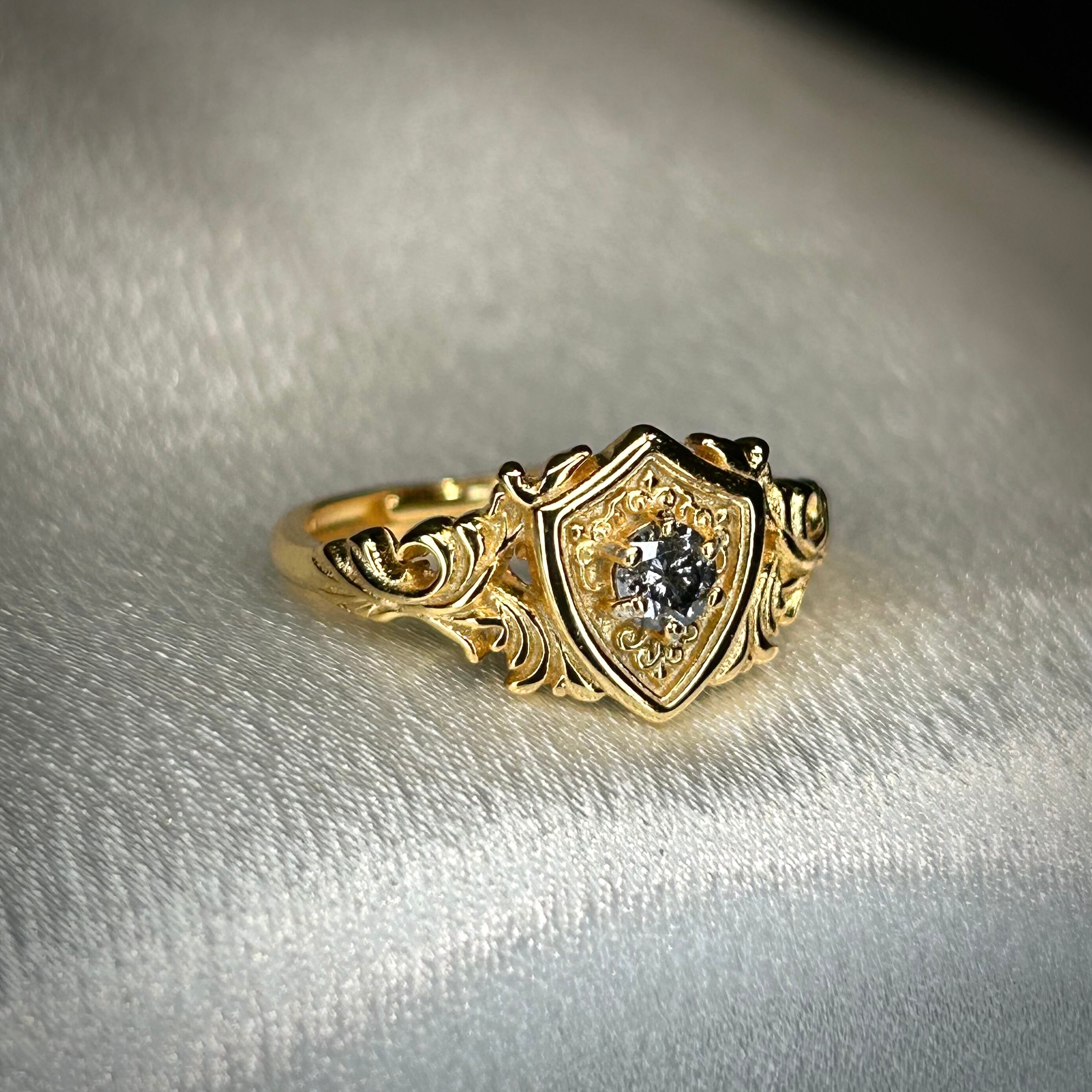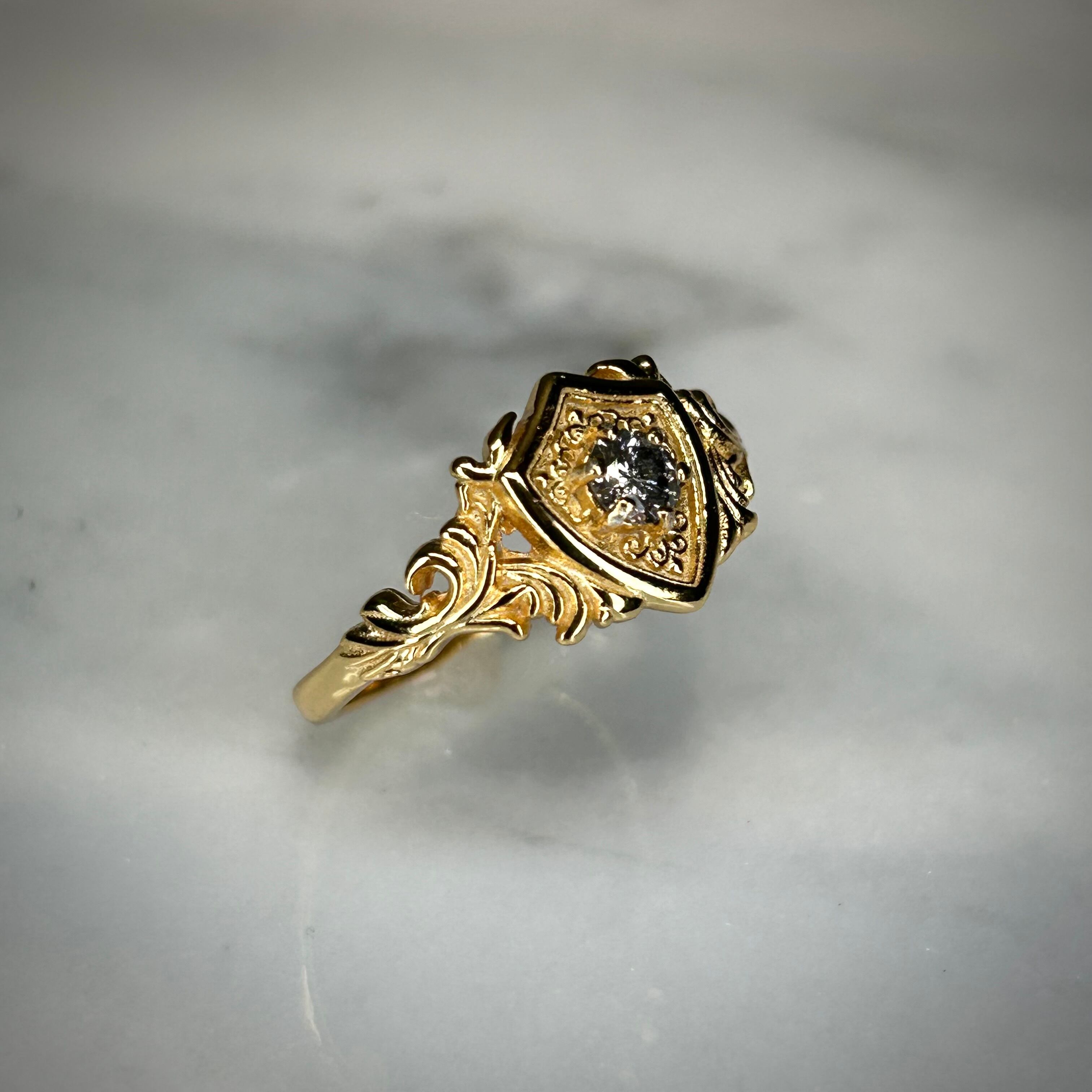 シルバー製ゴールドカラー ダイヤモンド(ソルト&ペッパー) ガーディアンリング 4月誕生石 10号以上での使用推奨