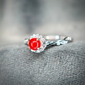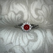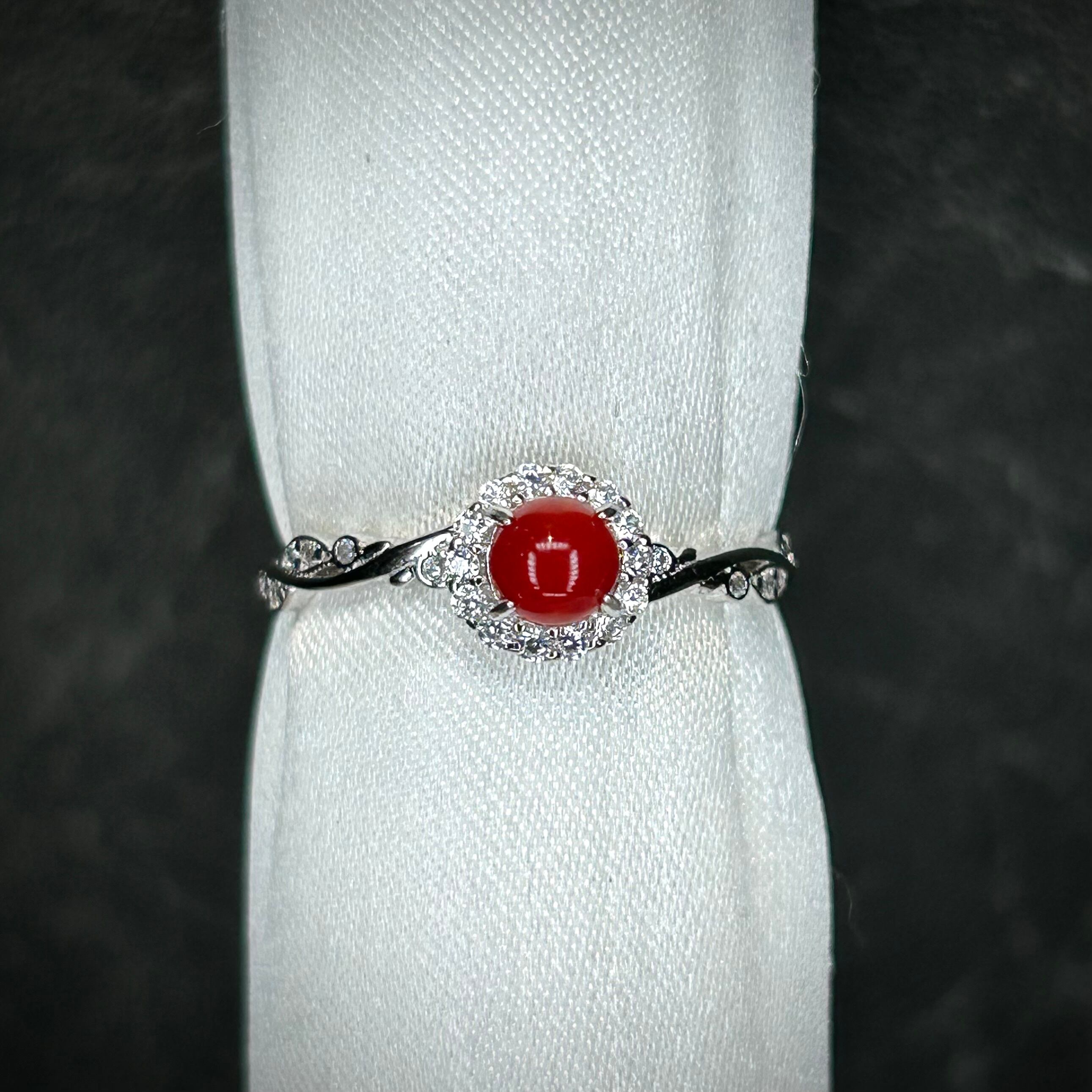 シルバー製、 血赤珊瑚のナチュラルリング。