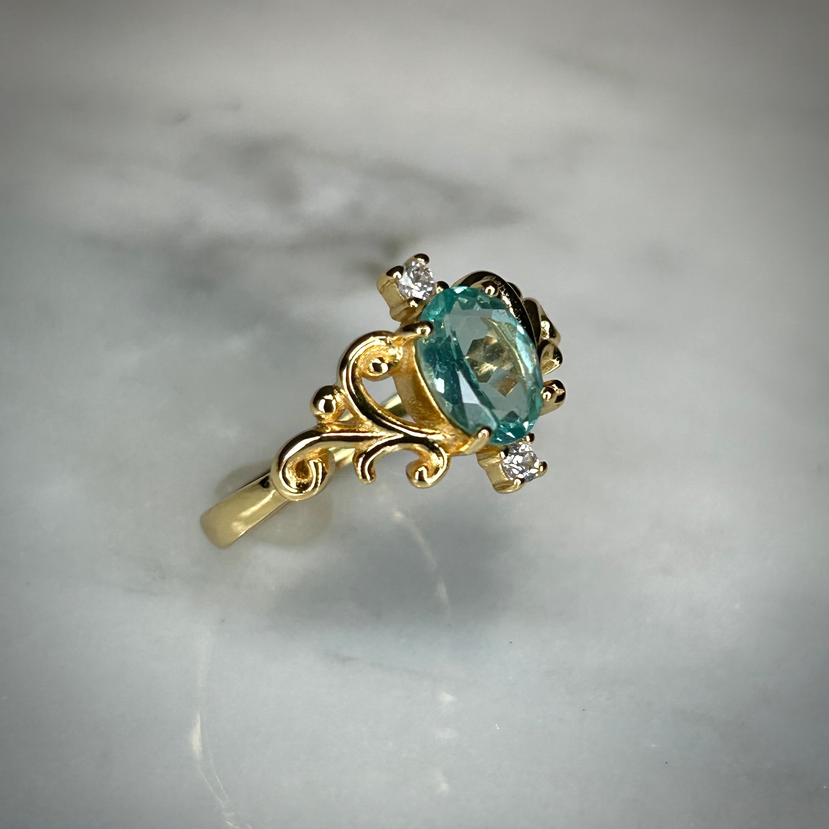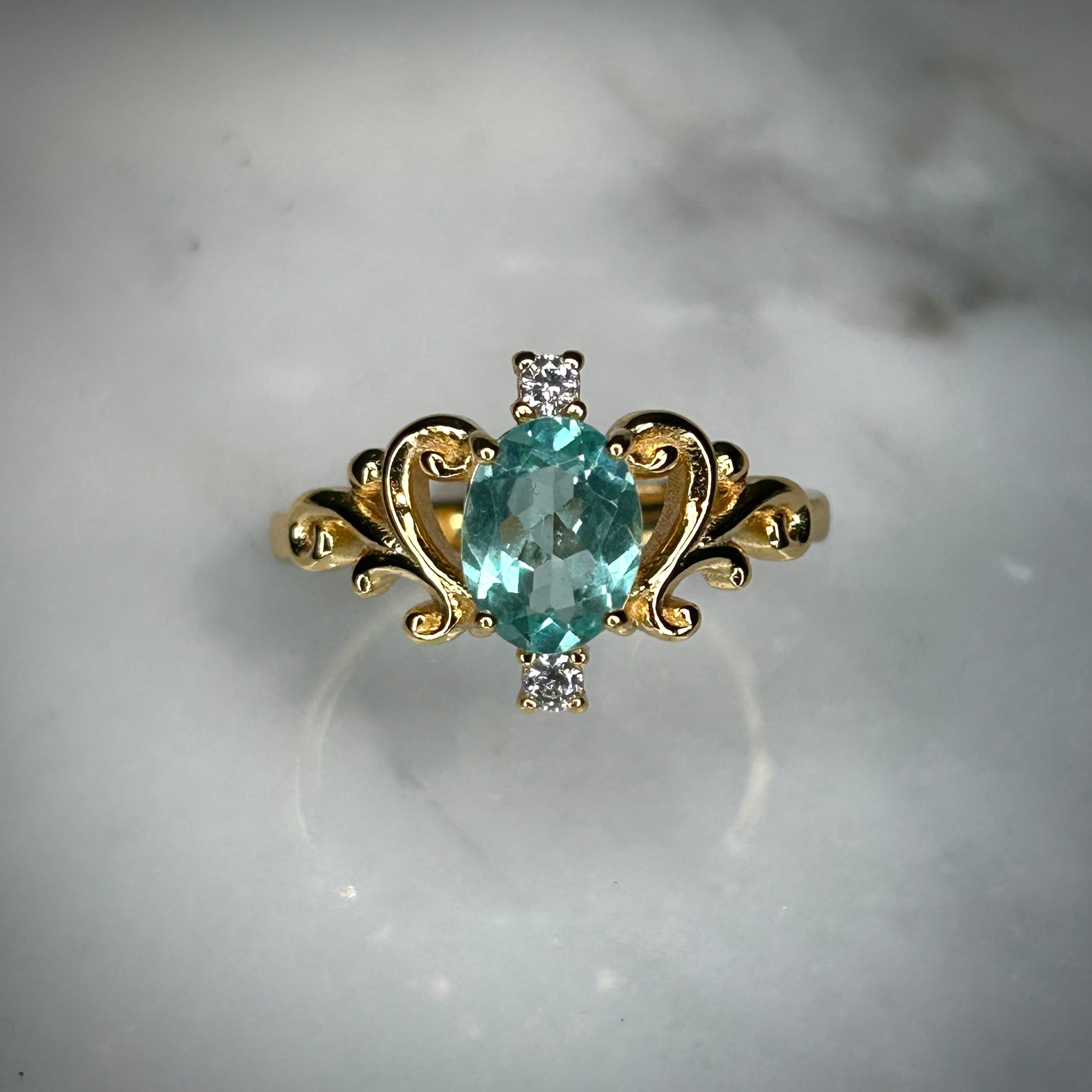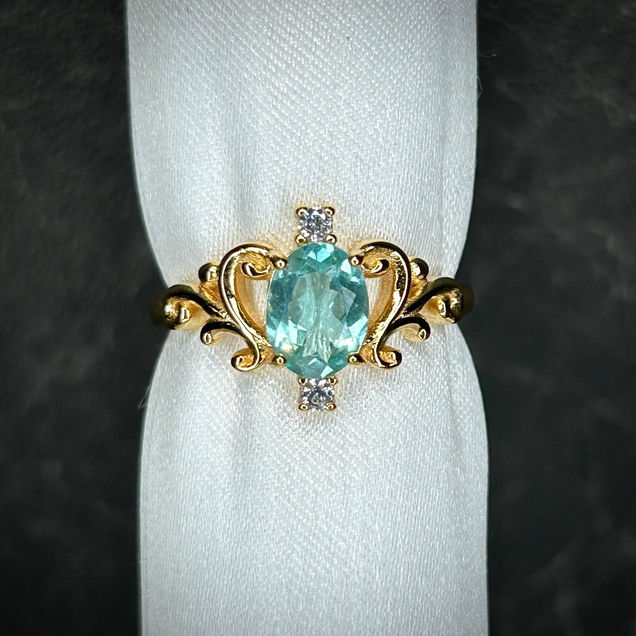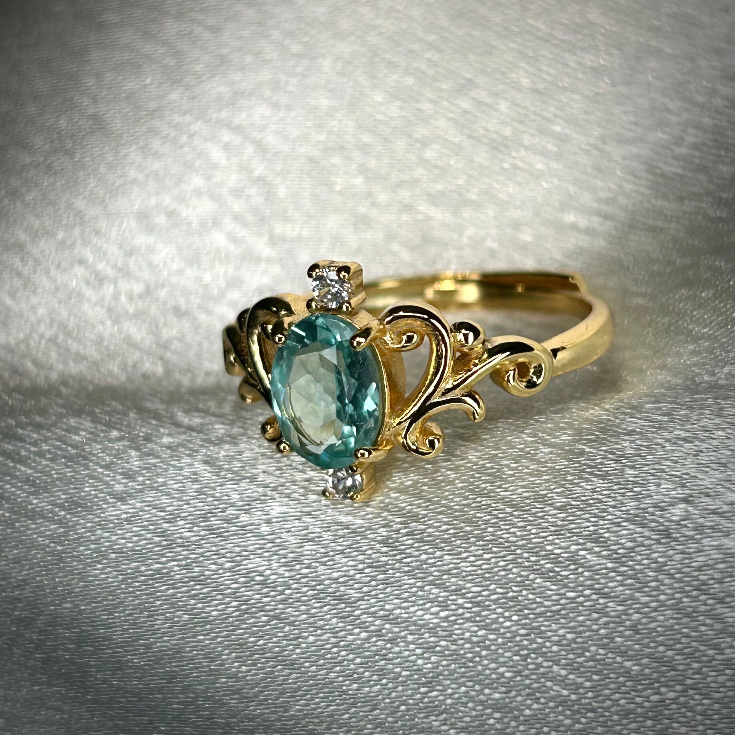 ブルーグリーンカラーが目を引くアパタイトを使用し、美しい曲線デザインで高貴な印象のロイヤルリング。
