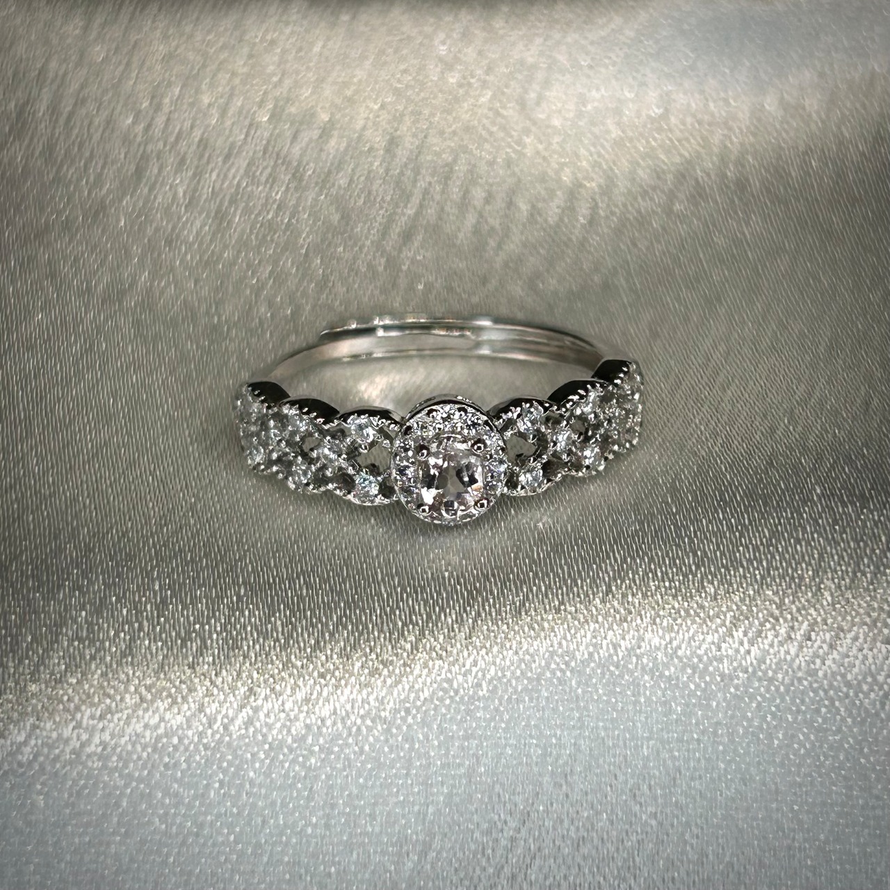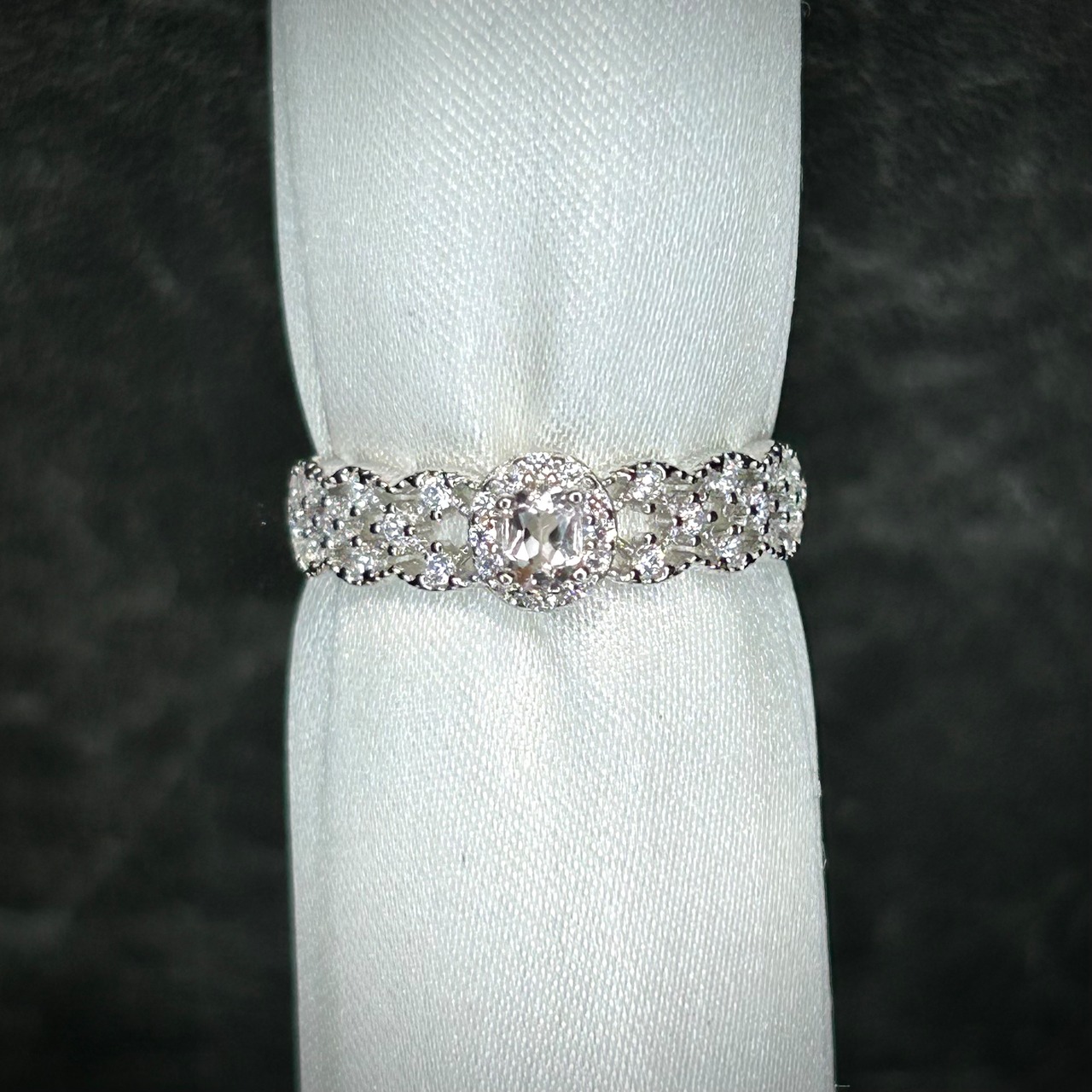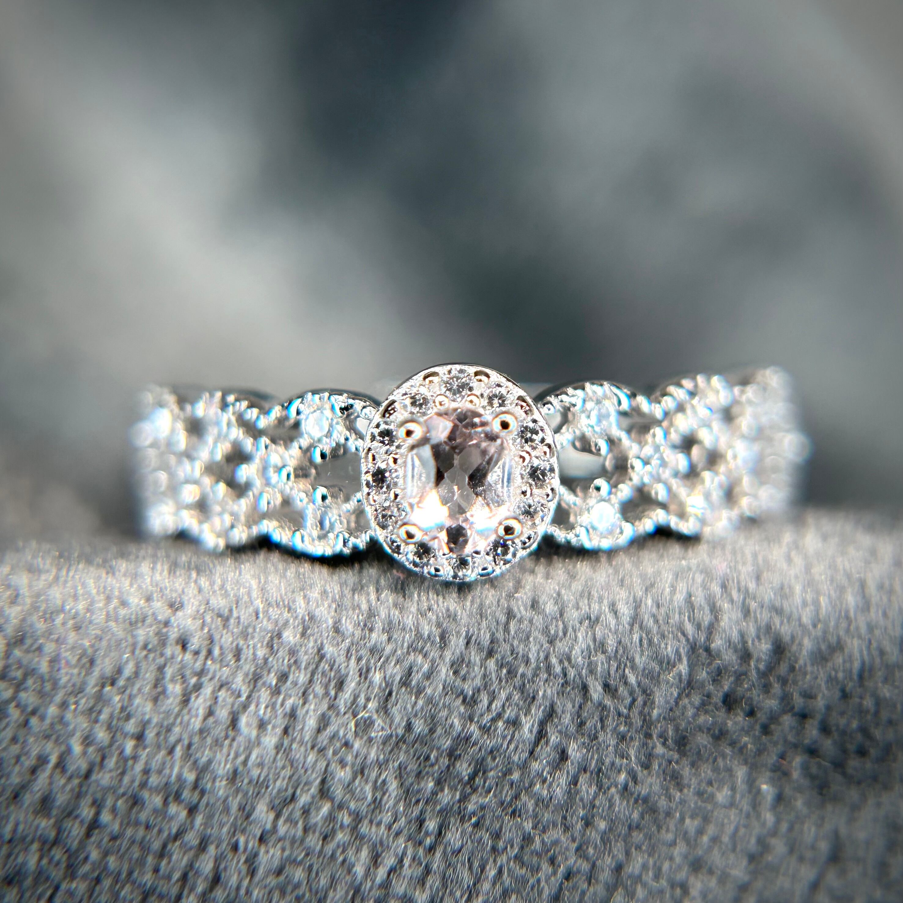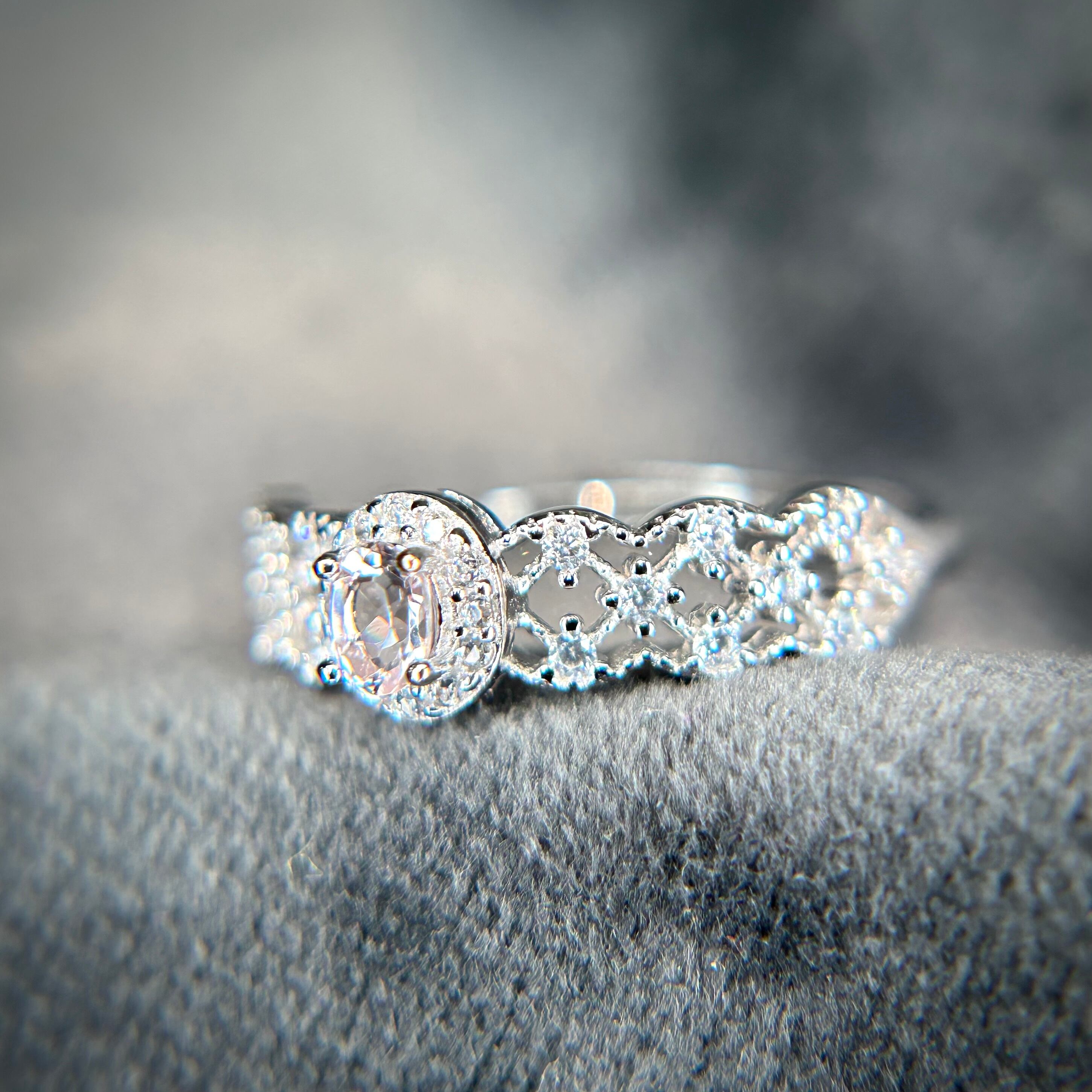 シルバー製、モルガナイトのレースリング。