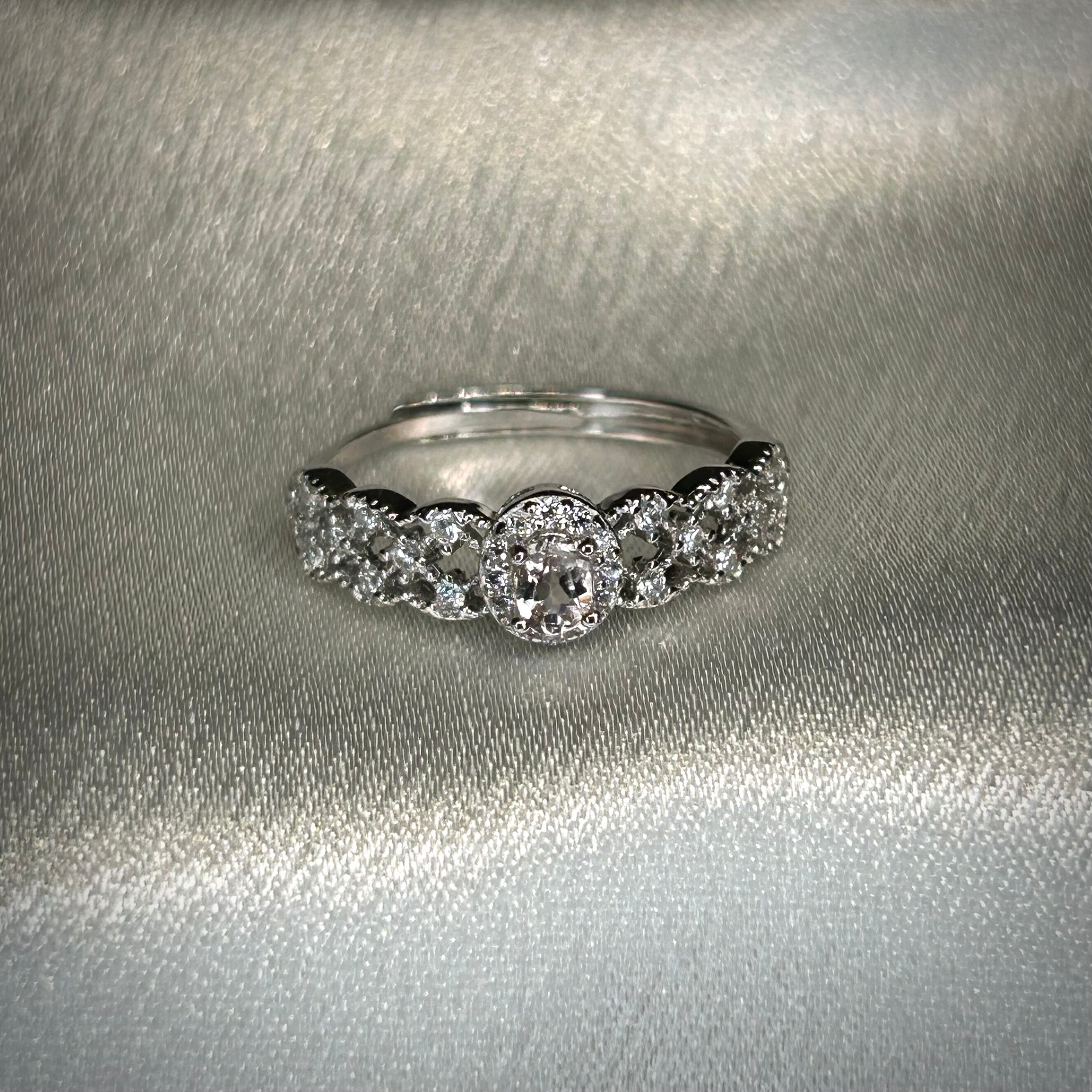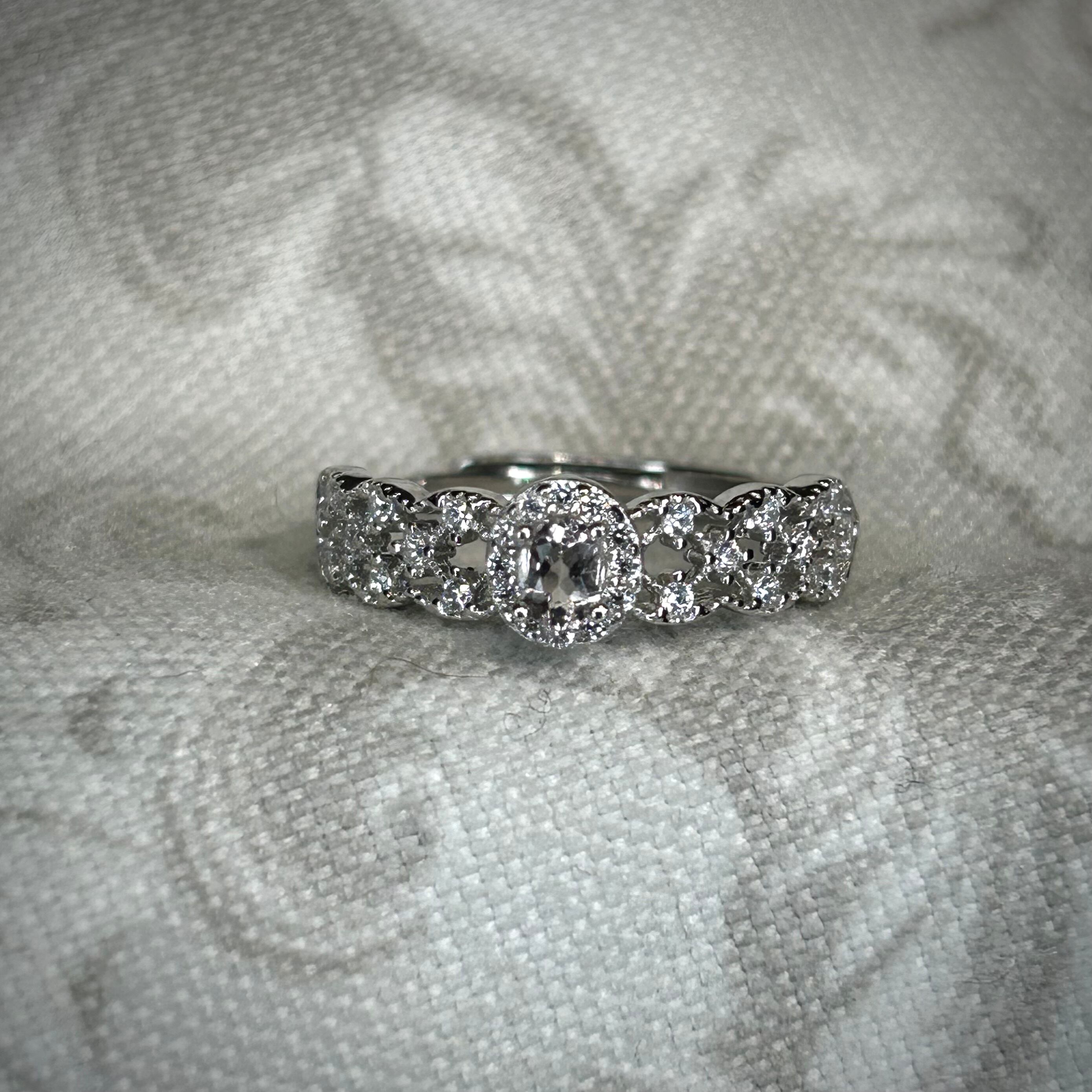 繊細なレースデザインが品のある印象のリング。