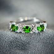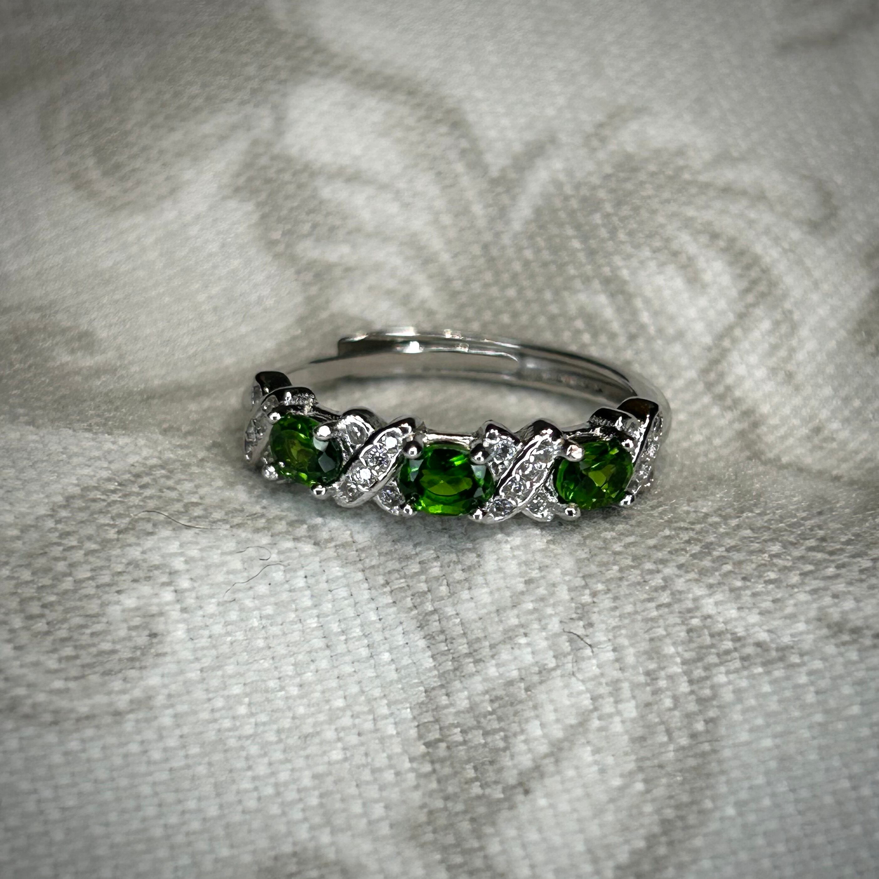 3石のクロムダイオプサイトが美しいリング。