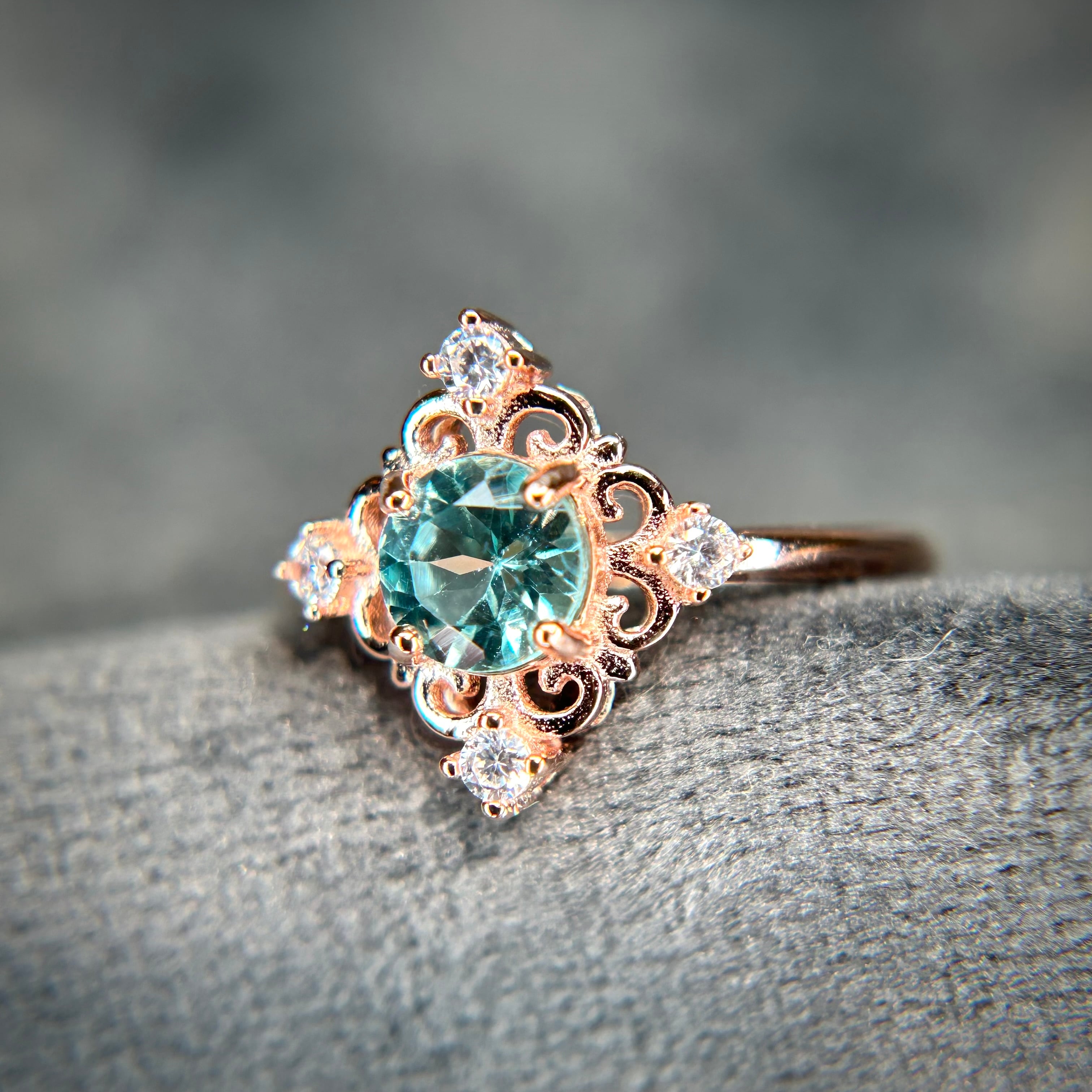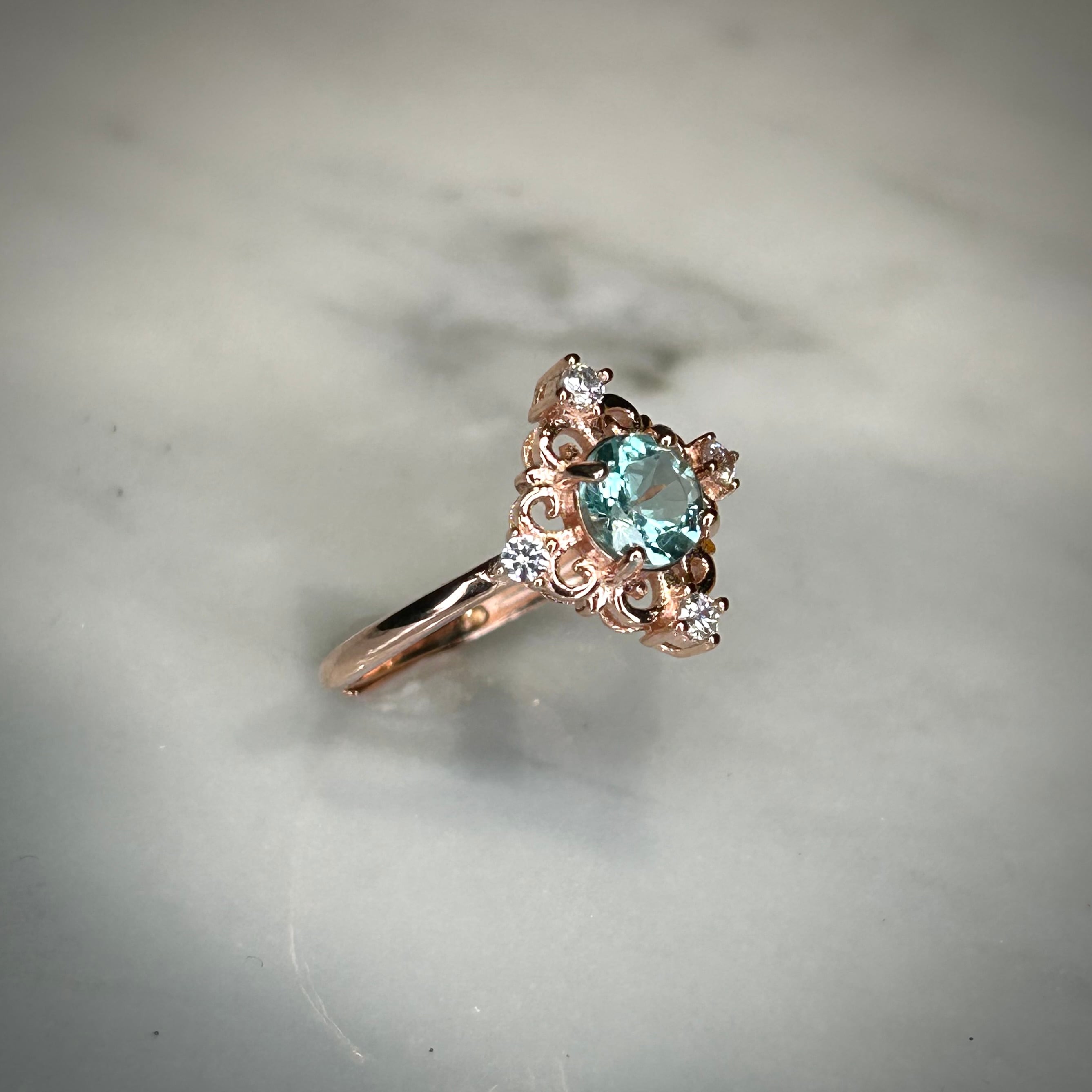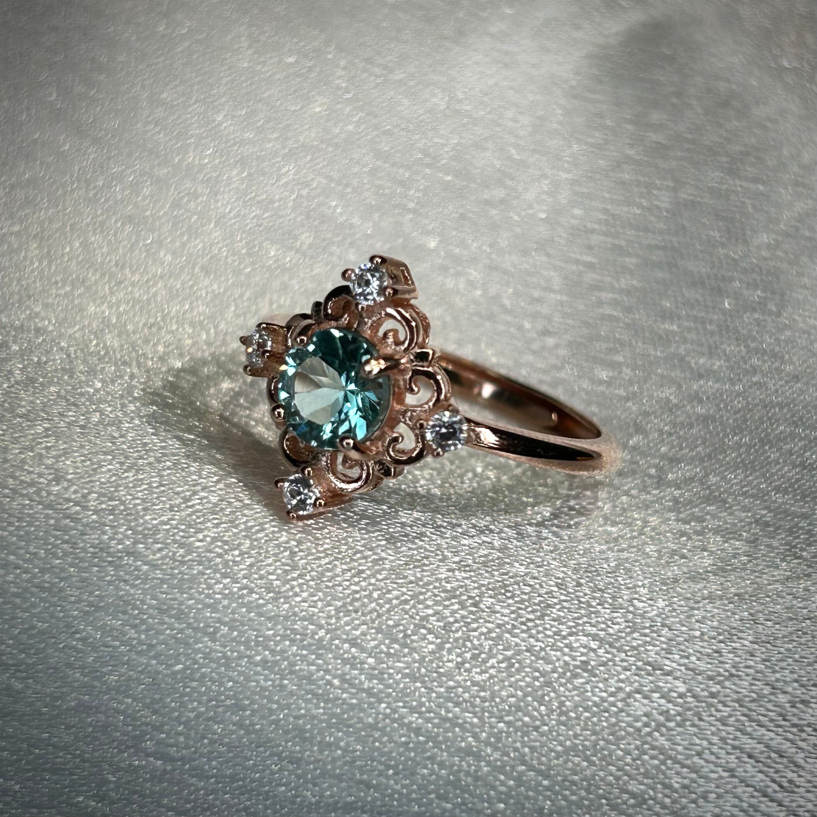 シルバー製ピンクゴールドカラー、アパタイトのアンティークデザインリング。