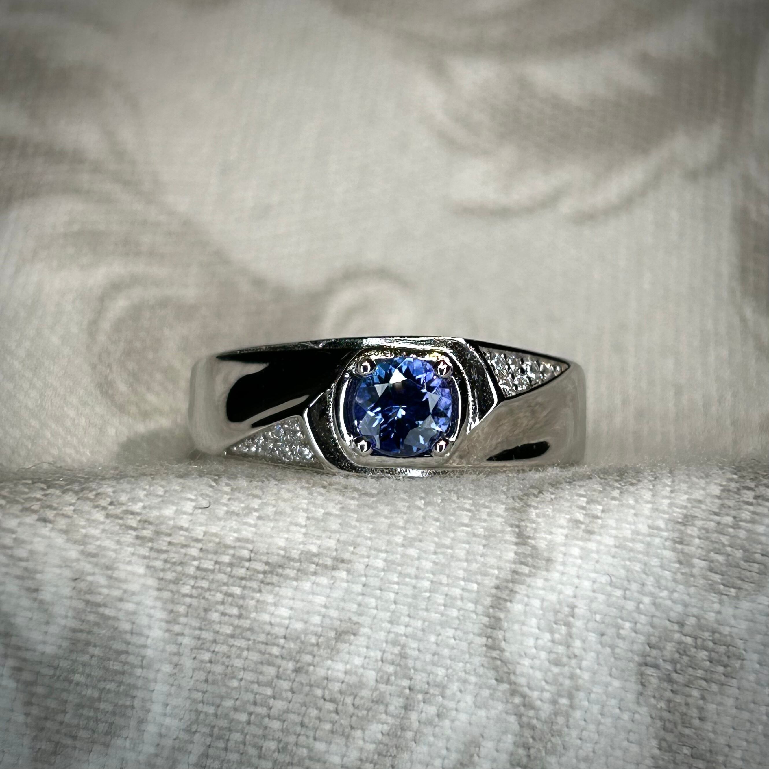シルバー製、タンザナイトのユニセックスリング。