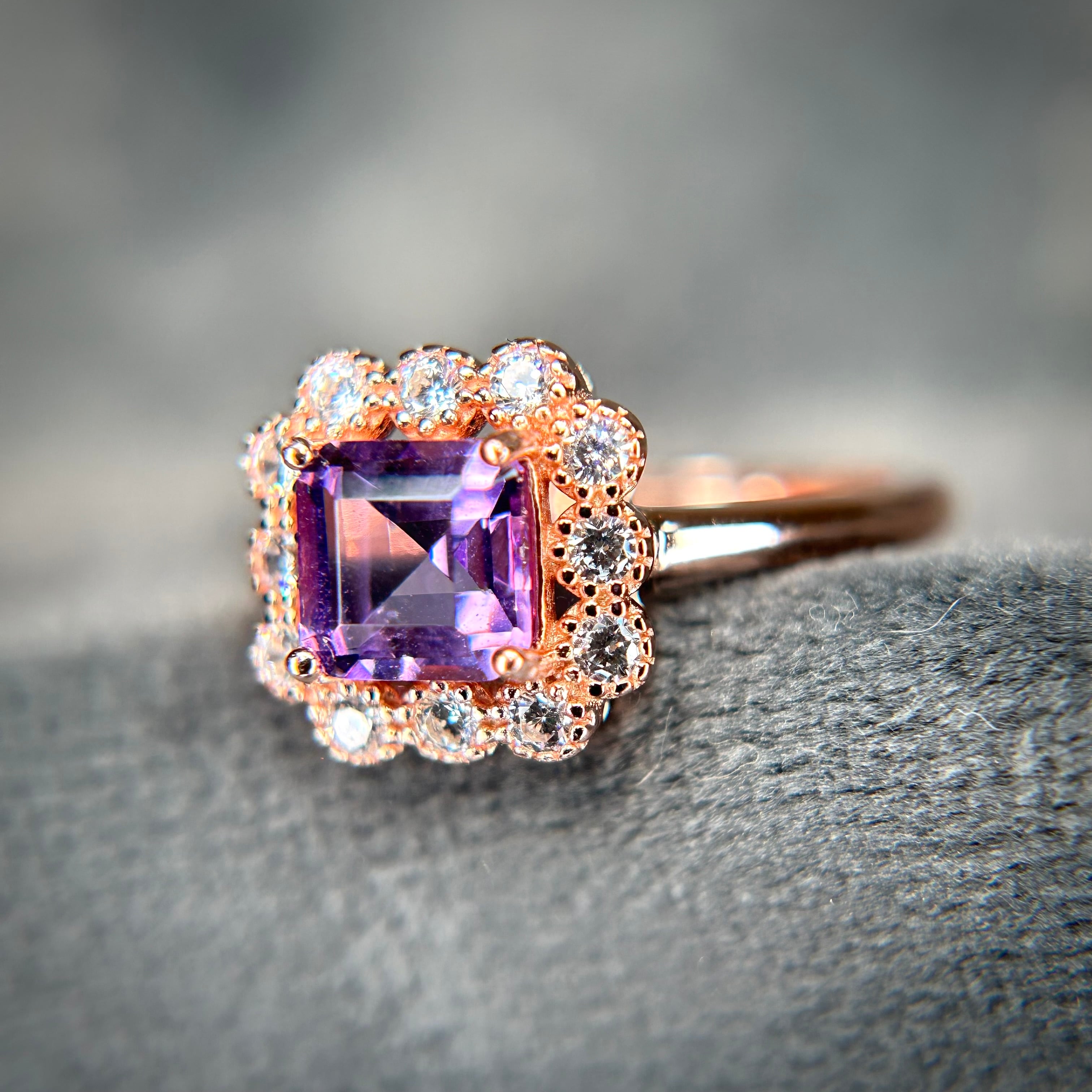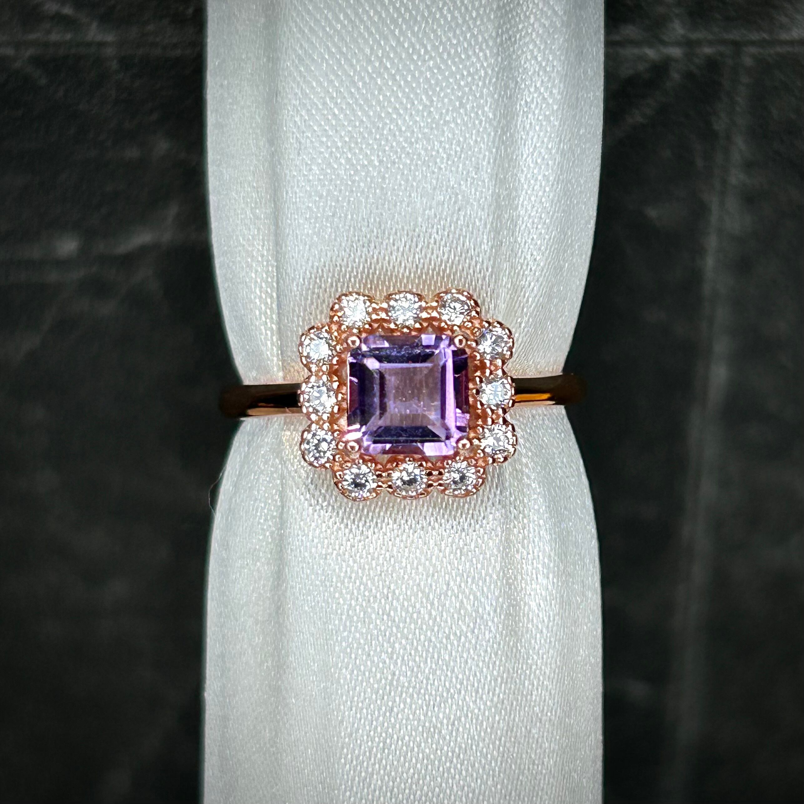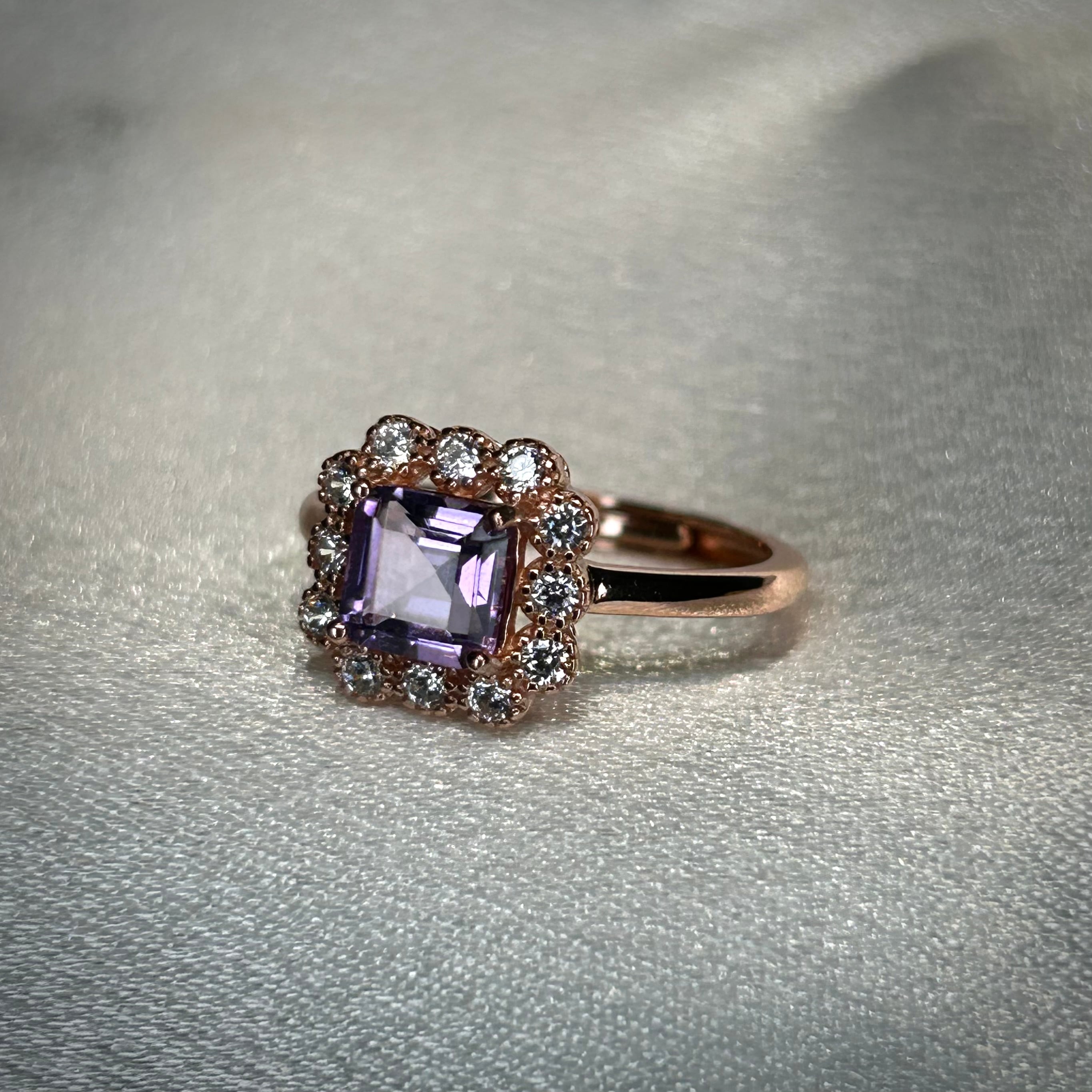 シルバー製ピンクゴールドカラー、アメシストのカードルリング。