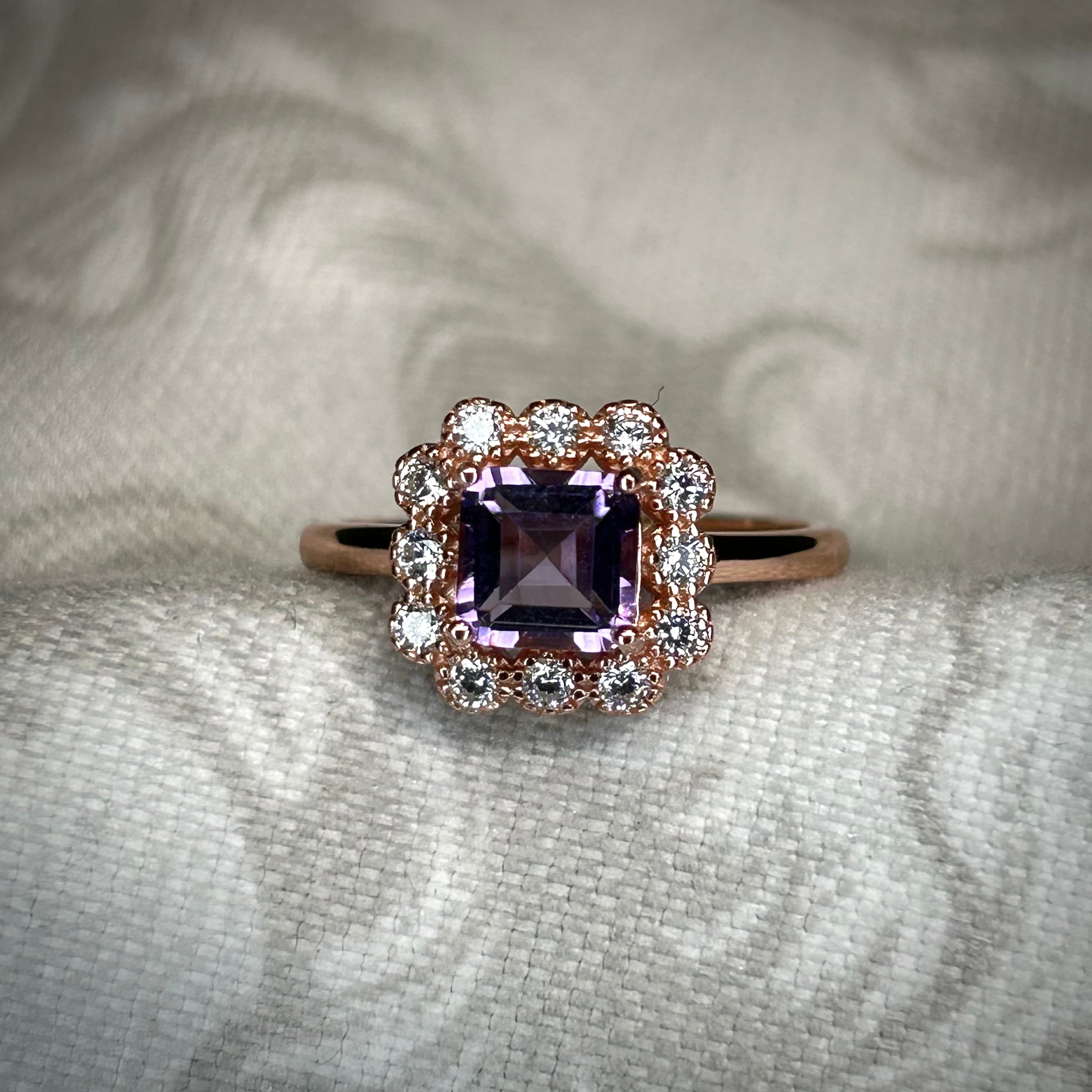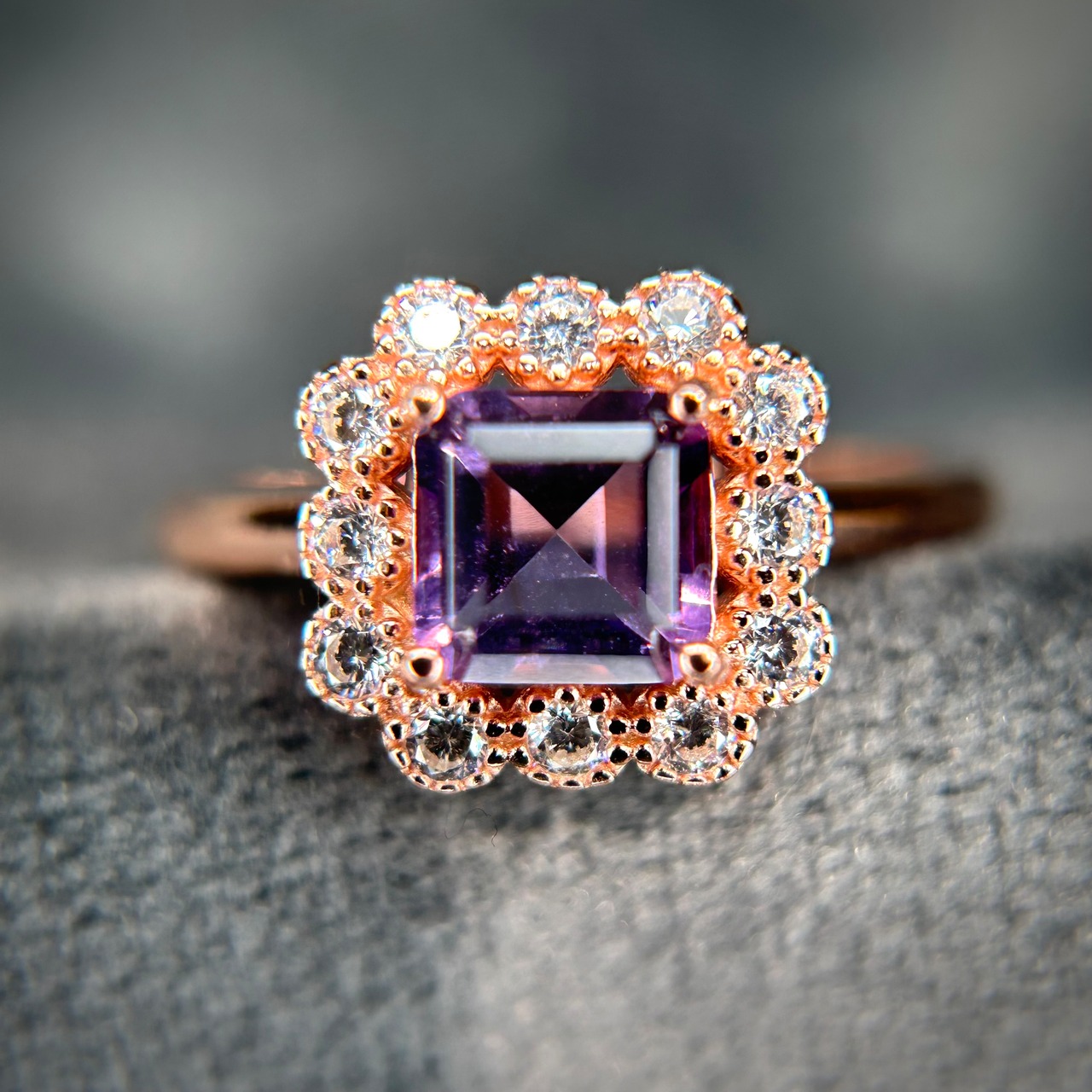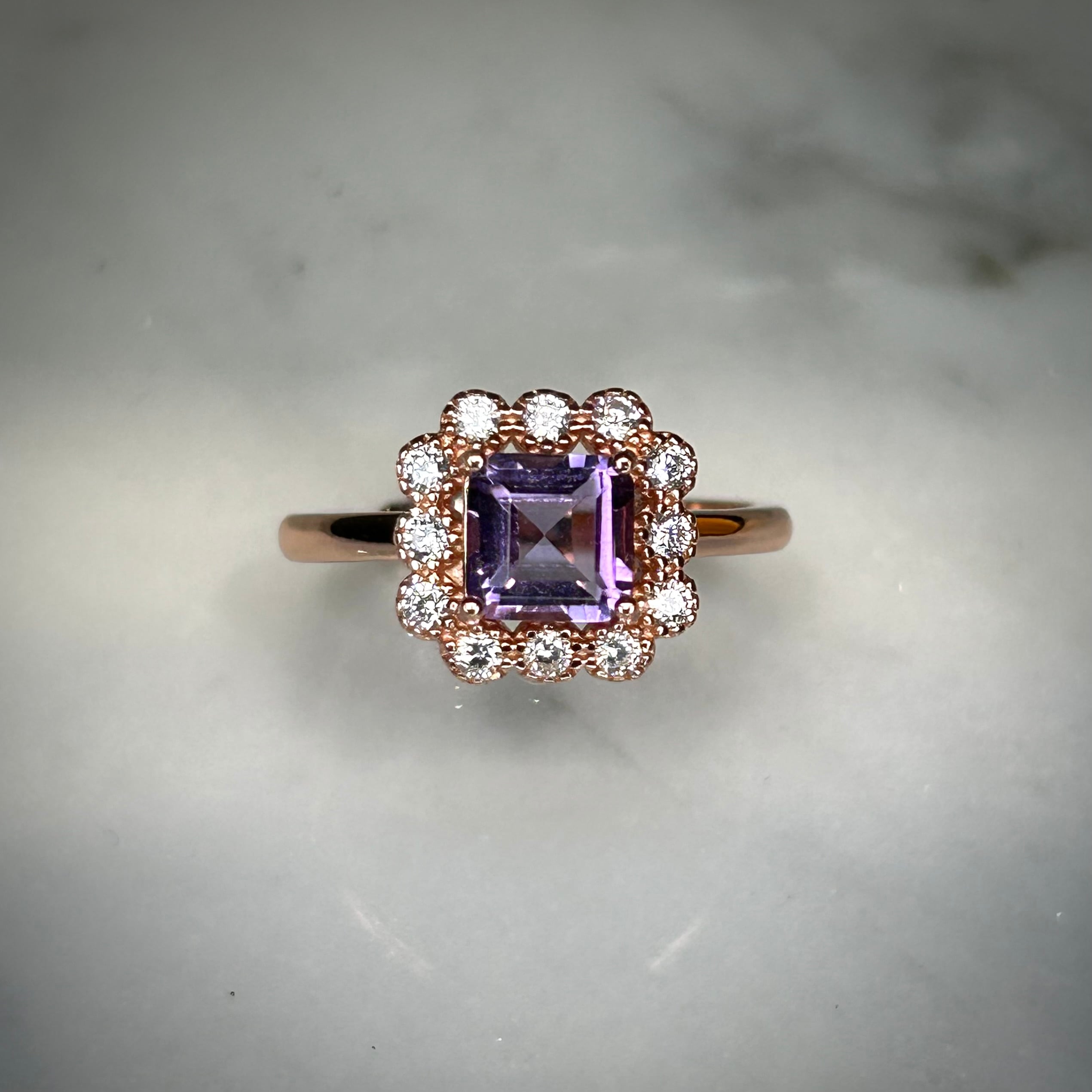 シルバー製ピンクゴールドカラー、アメシストのカードルリング。