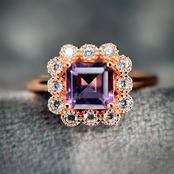 ピンクゴールドカラーとパープルカラーのアメシストの組み合わせが可愛い印象。
