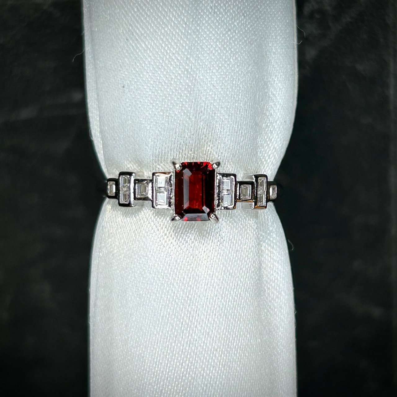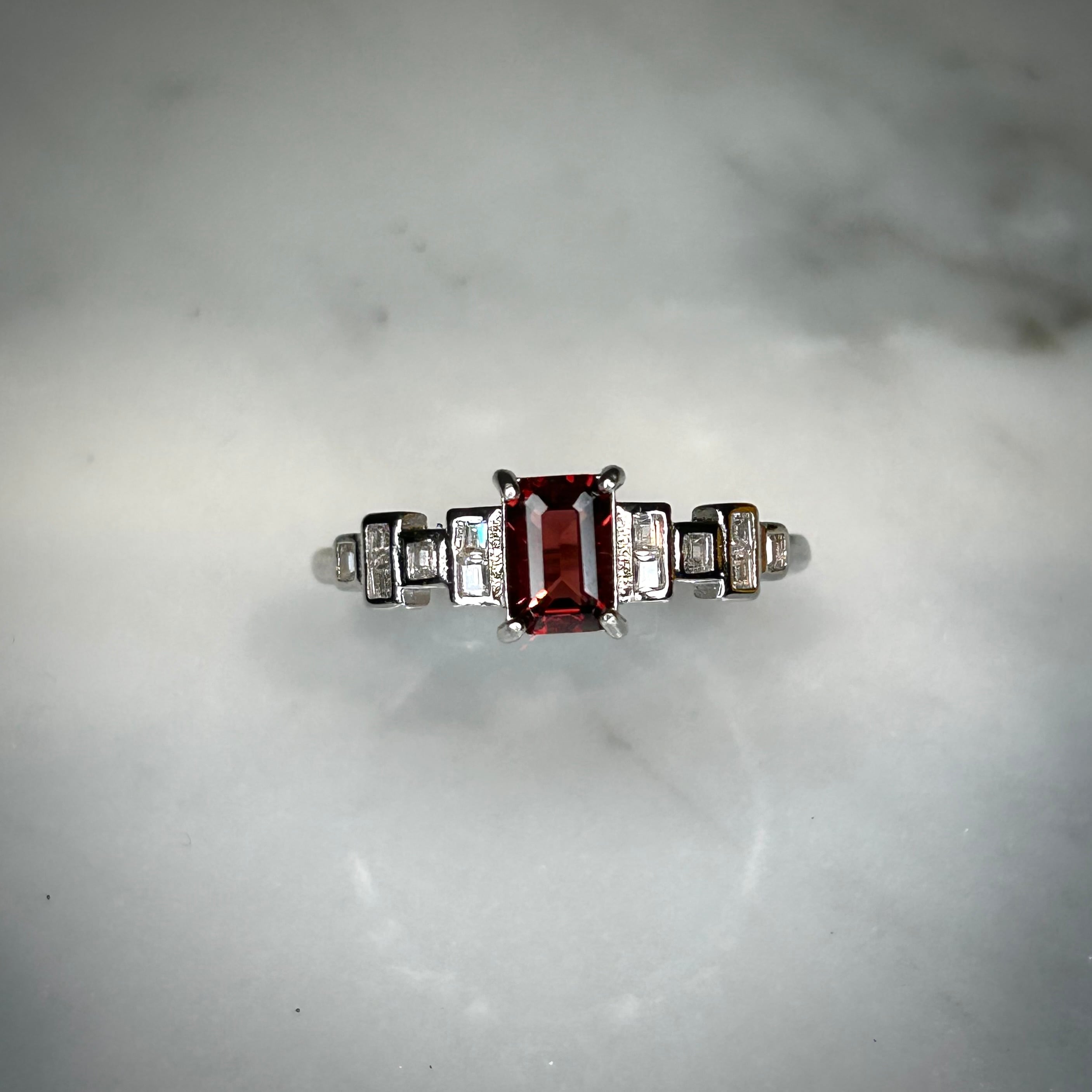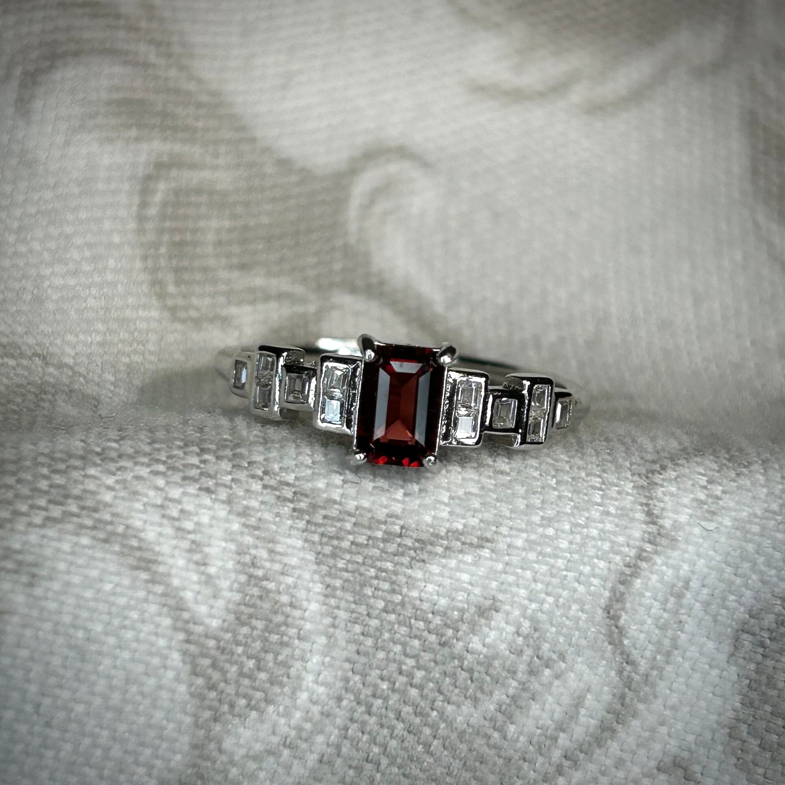 レクタングルカットで美しいガーネットを使用。