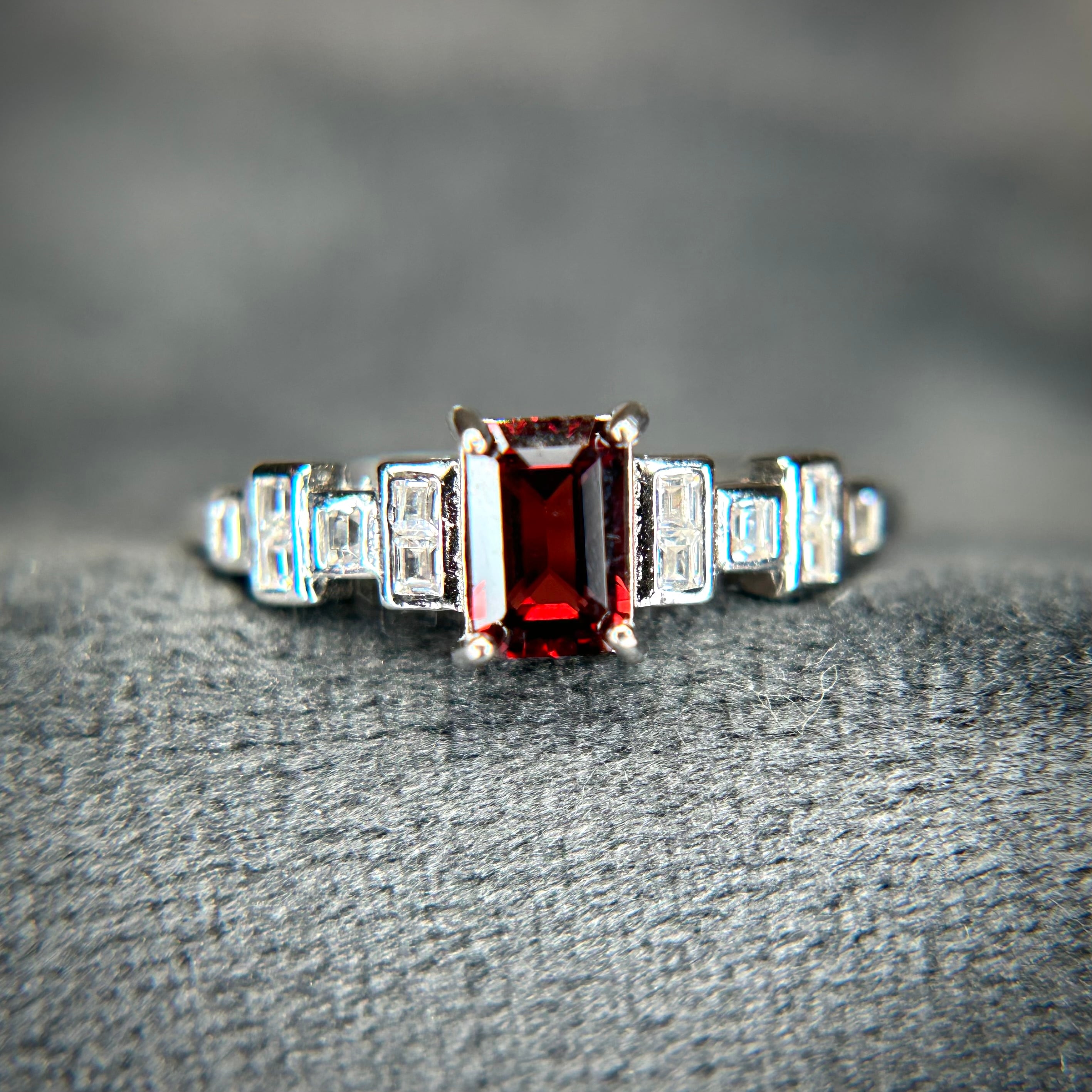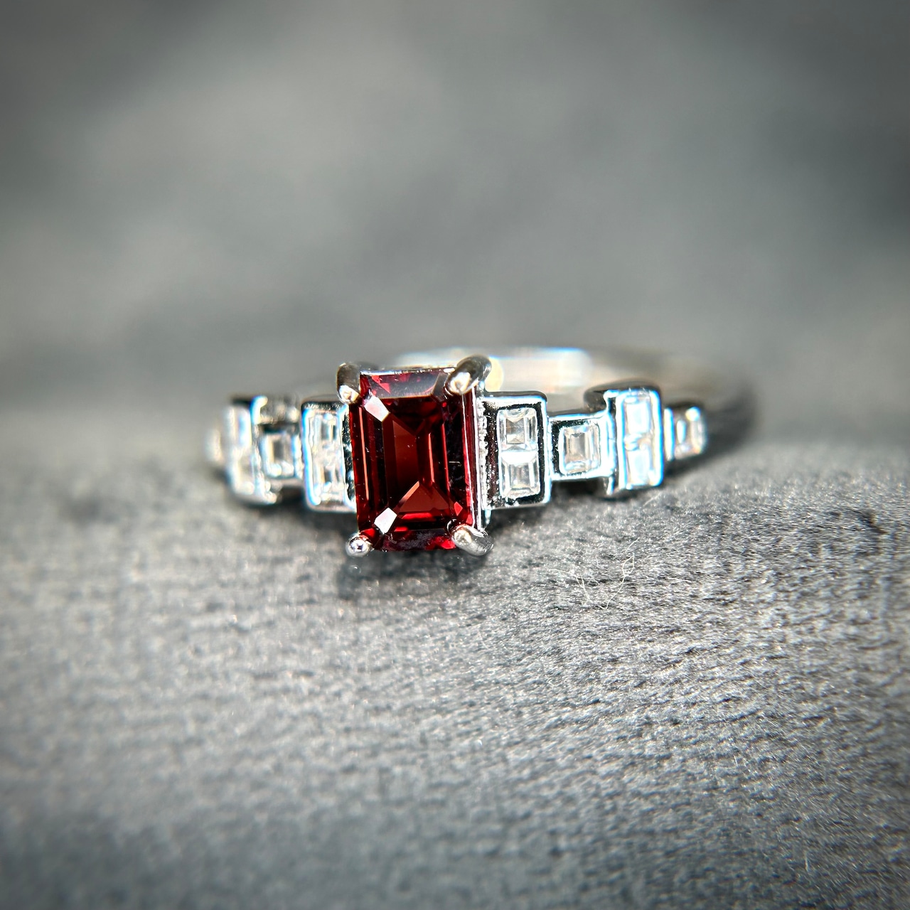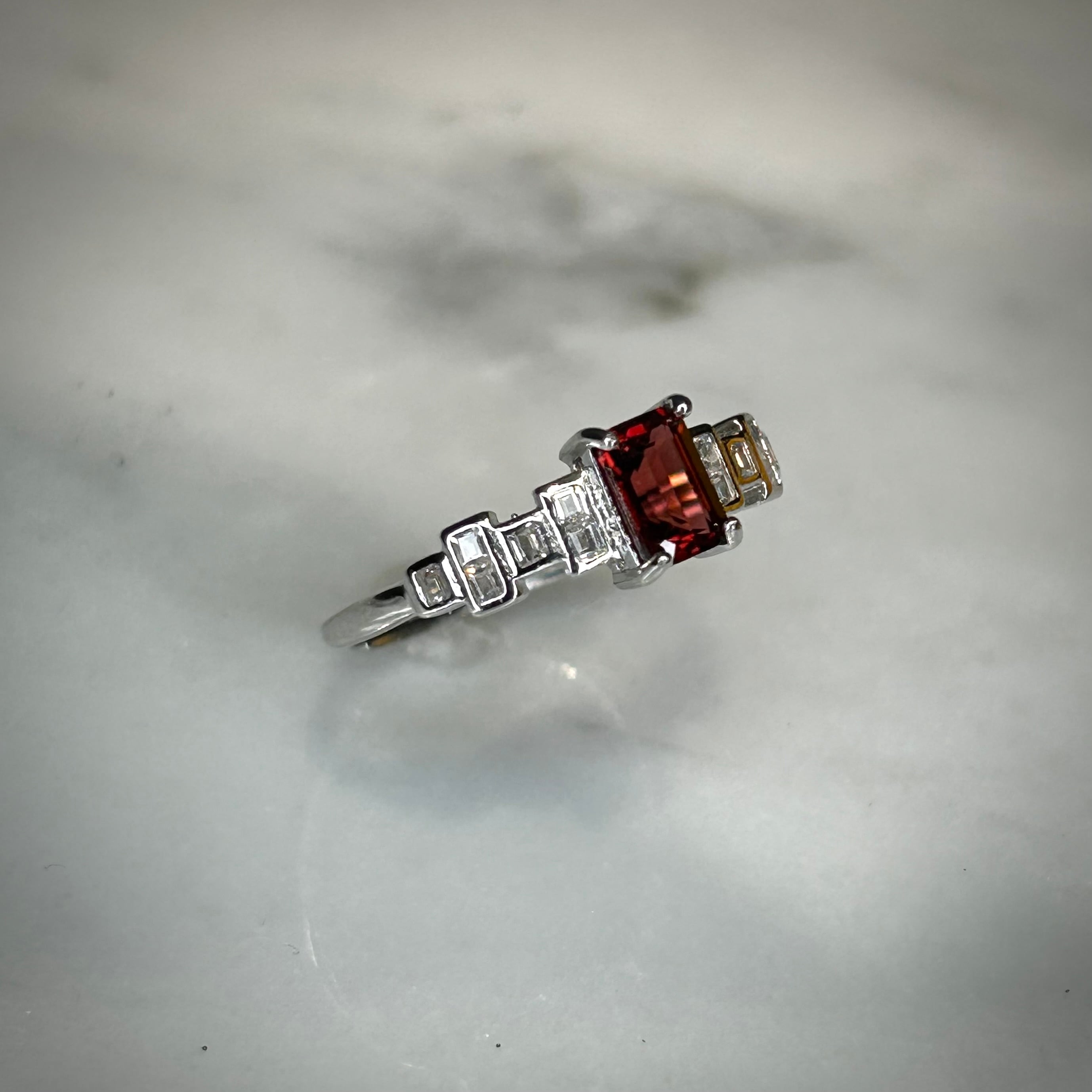 レクタングルカットで美しいガーネットを使用。