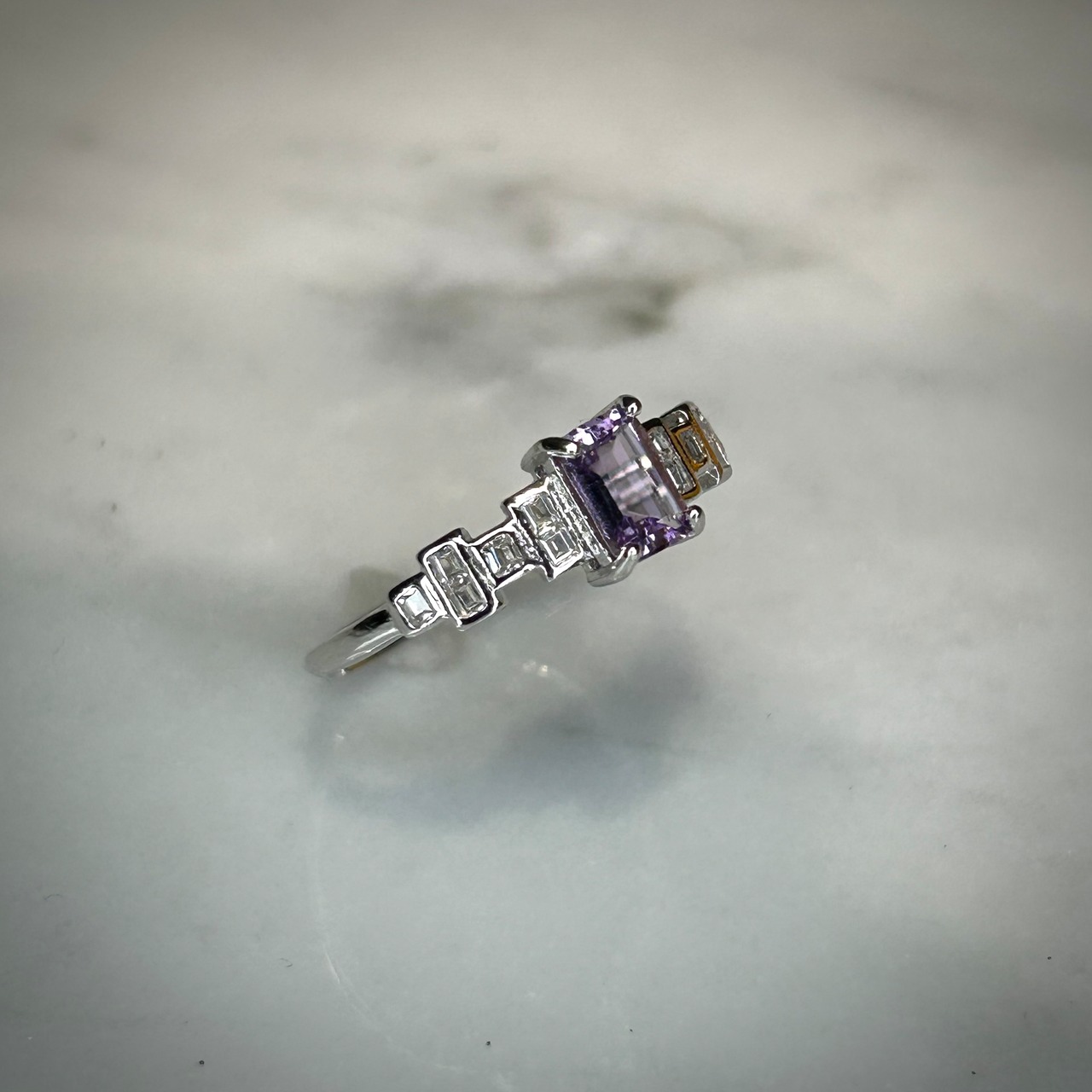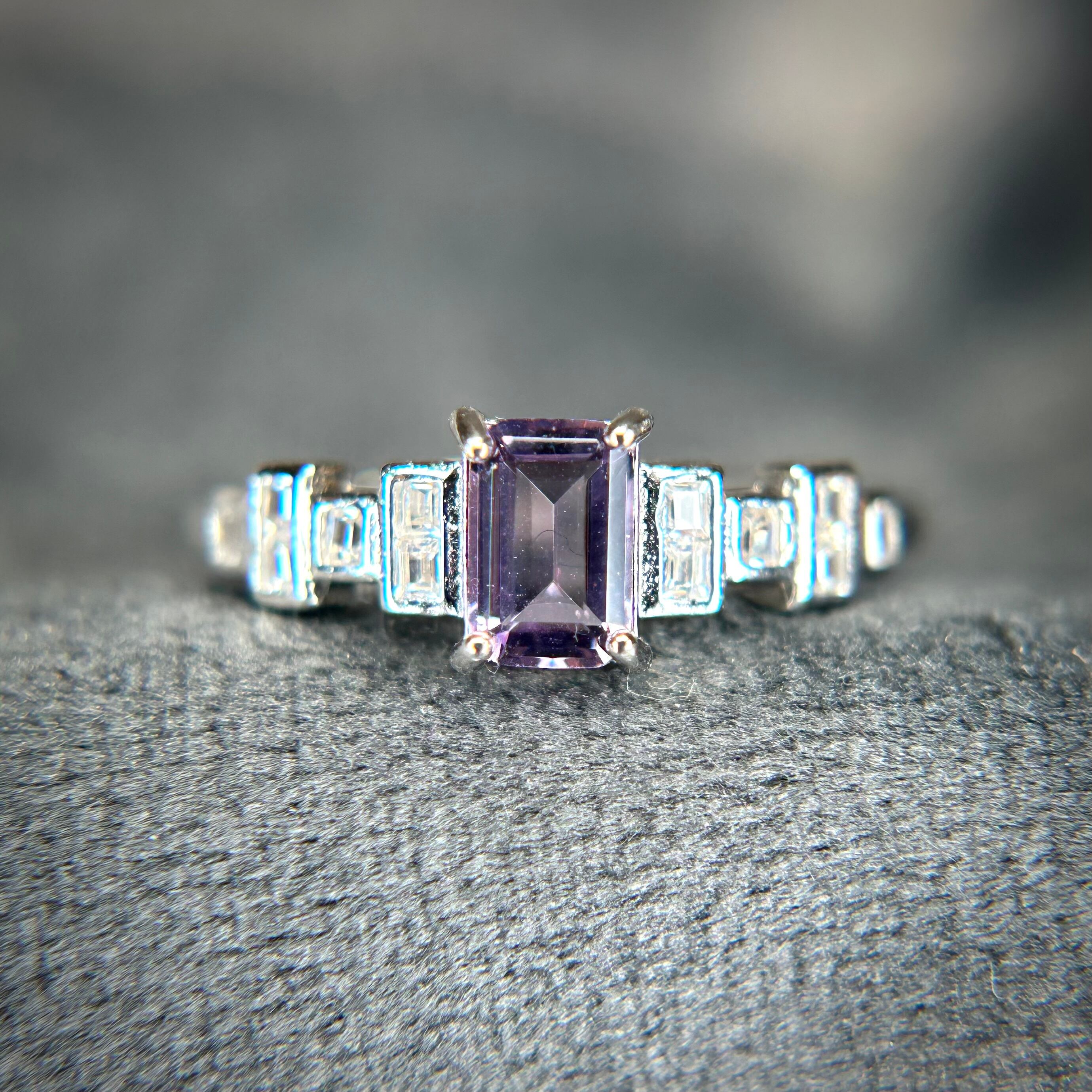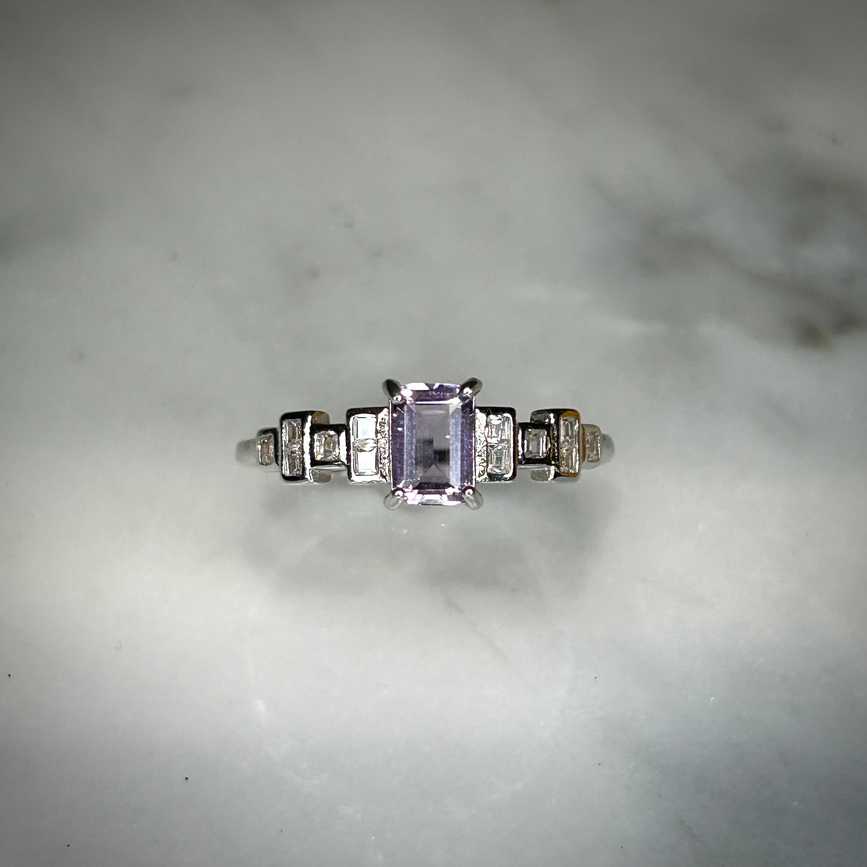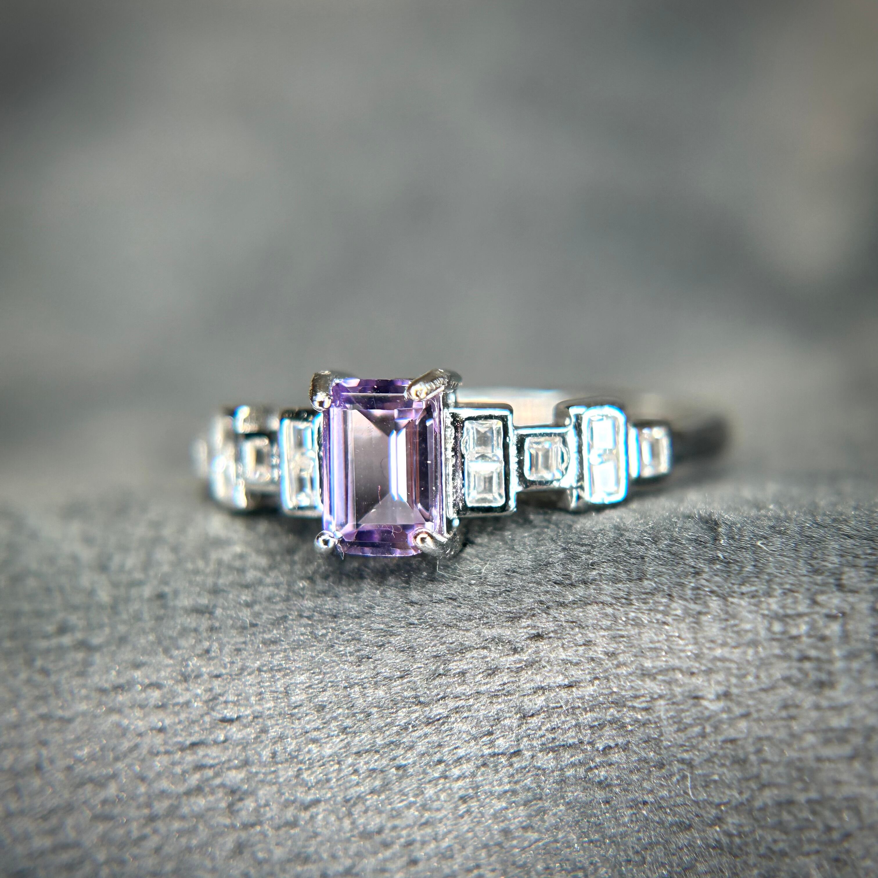 シルバー製、アメシストのセグメントリング。