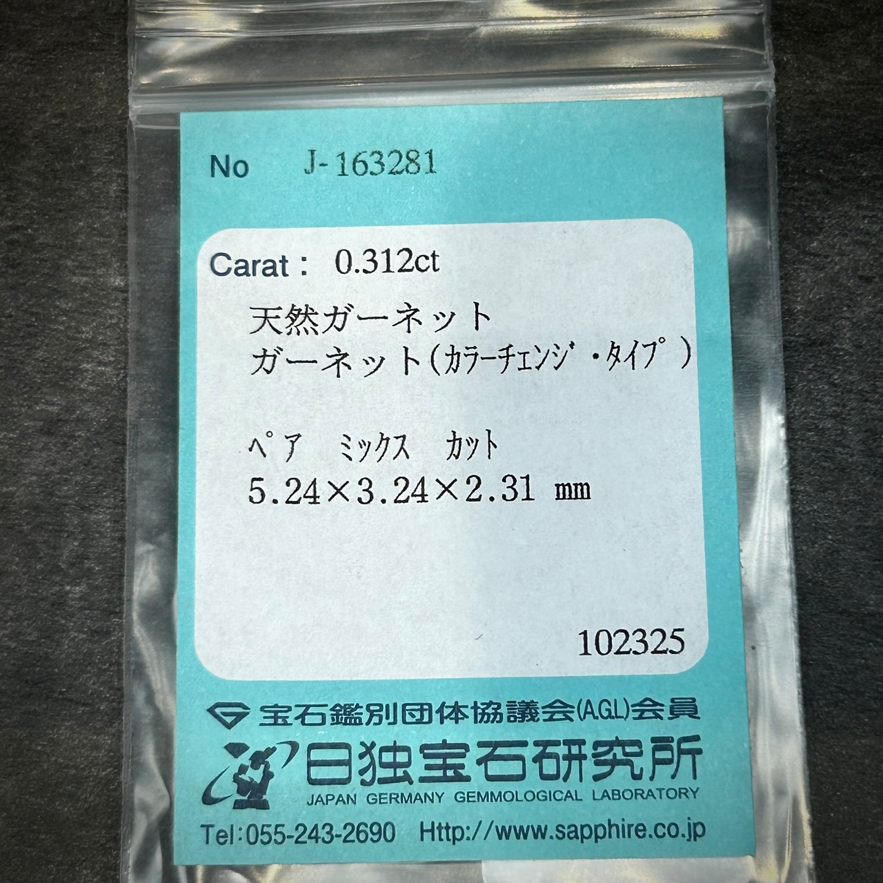 日独宝石研究所のソーティング付き。