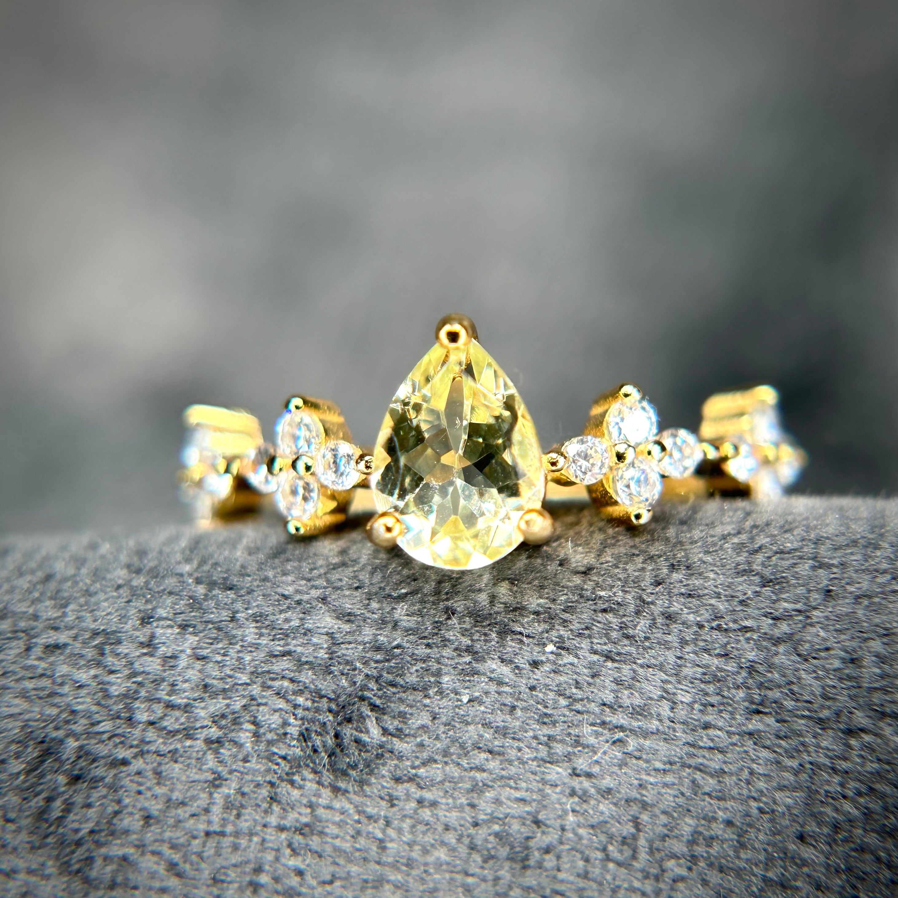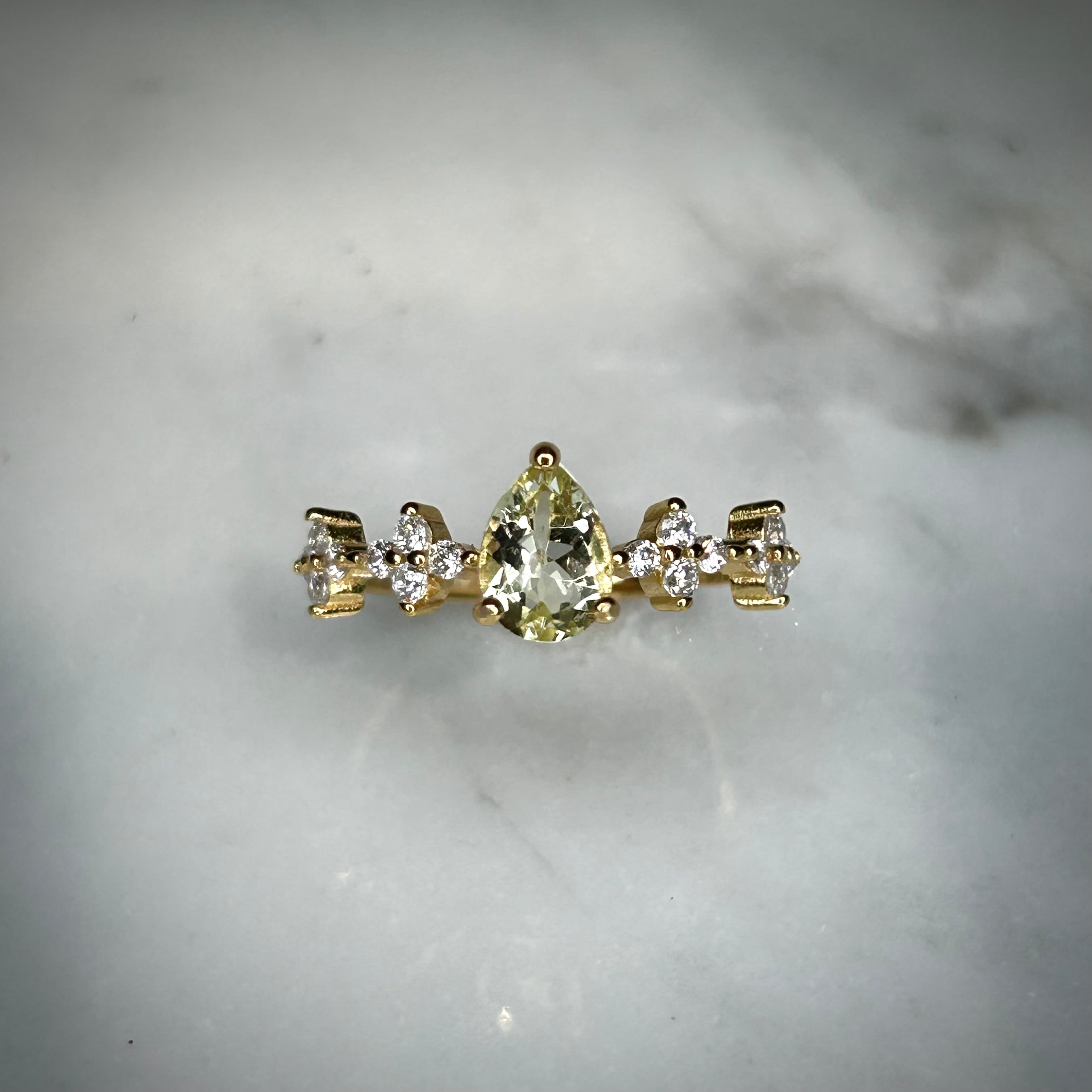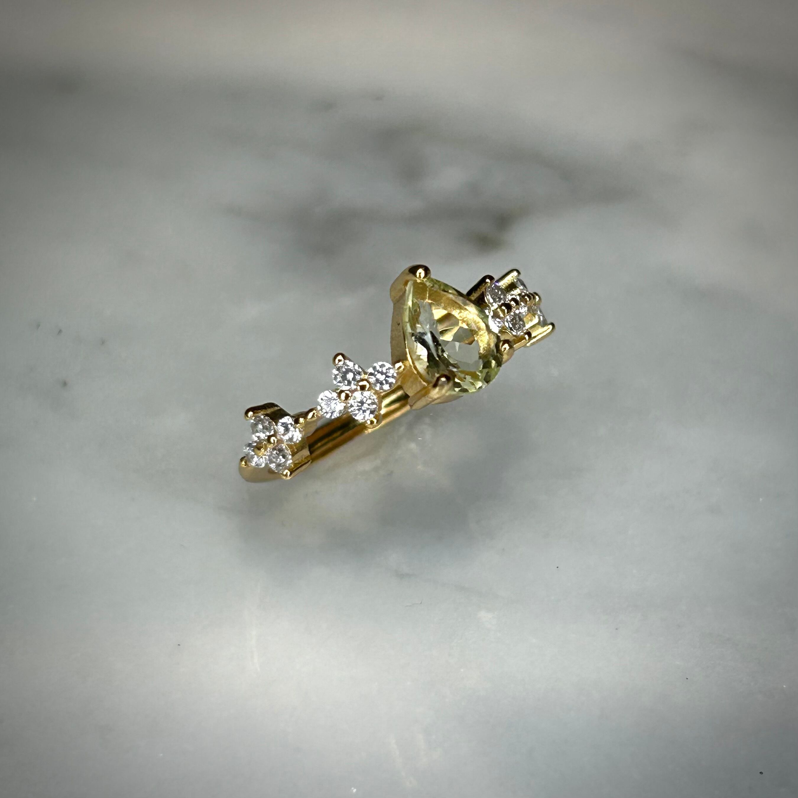 ヘリオドールの両隣りに花が連なり、冠の様でフェミニンな印象に。