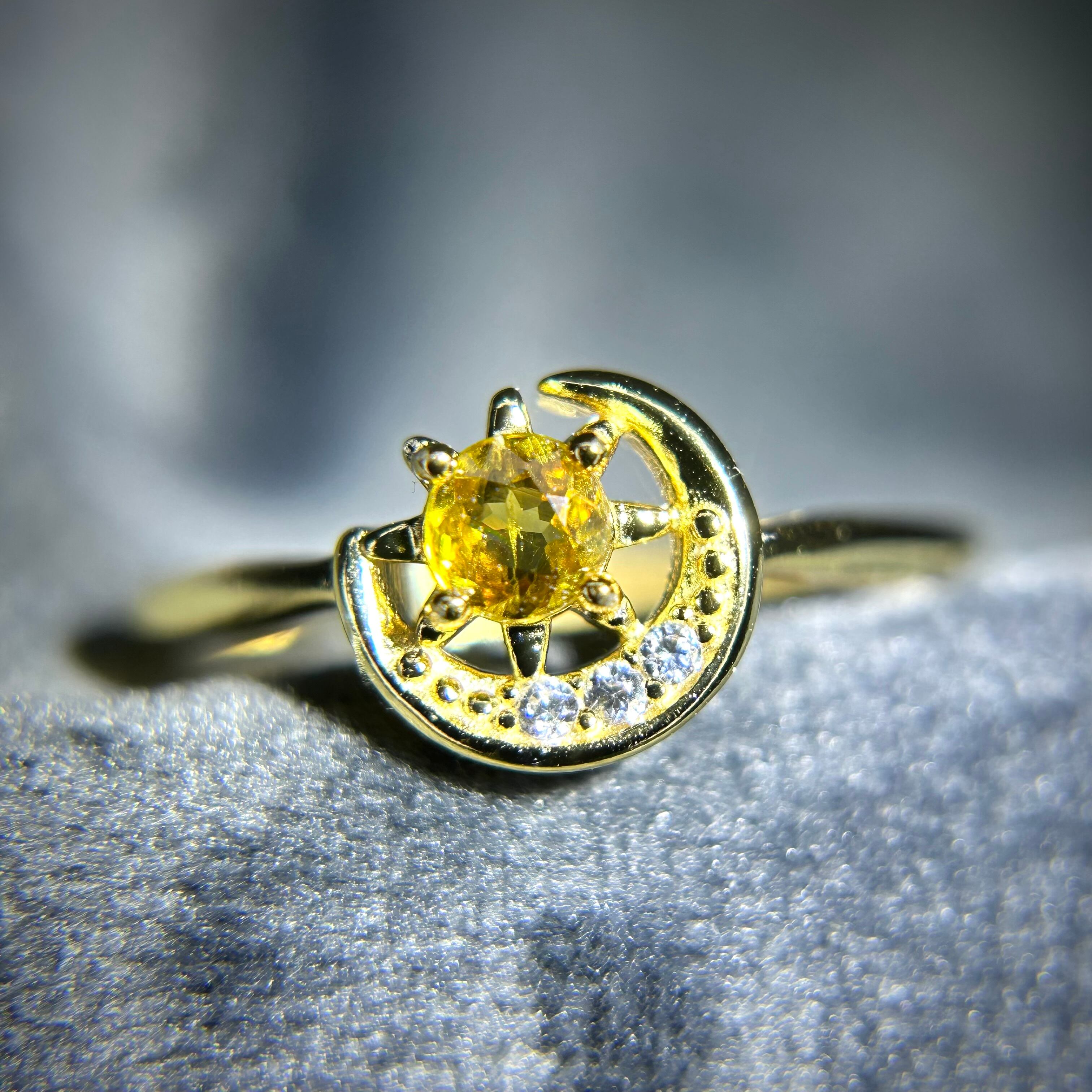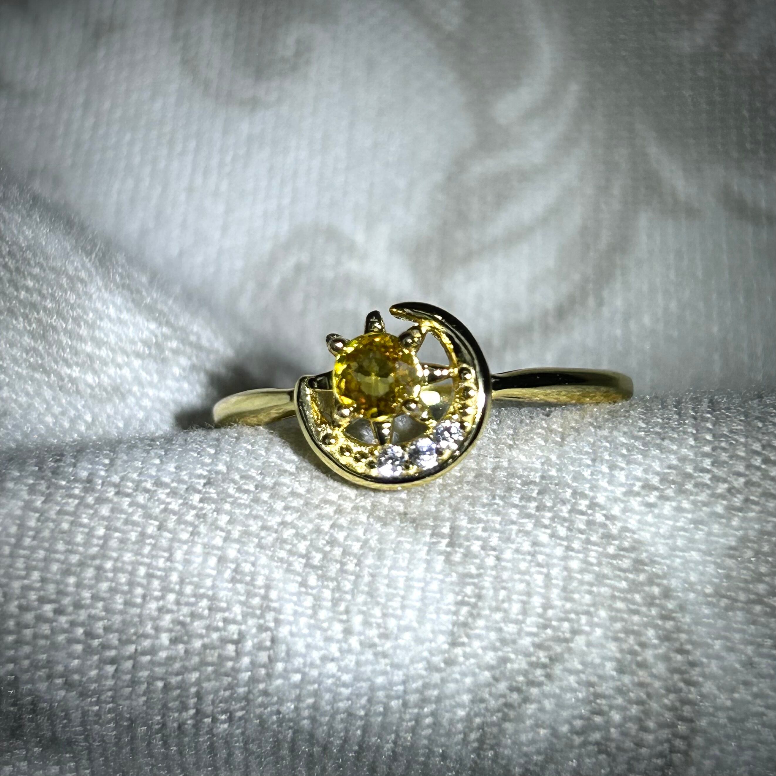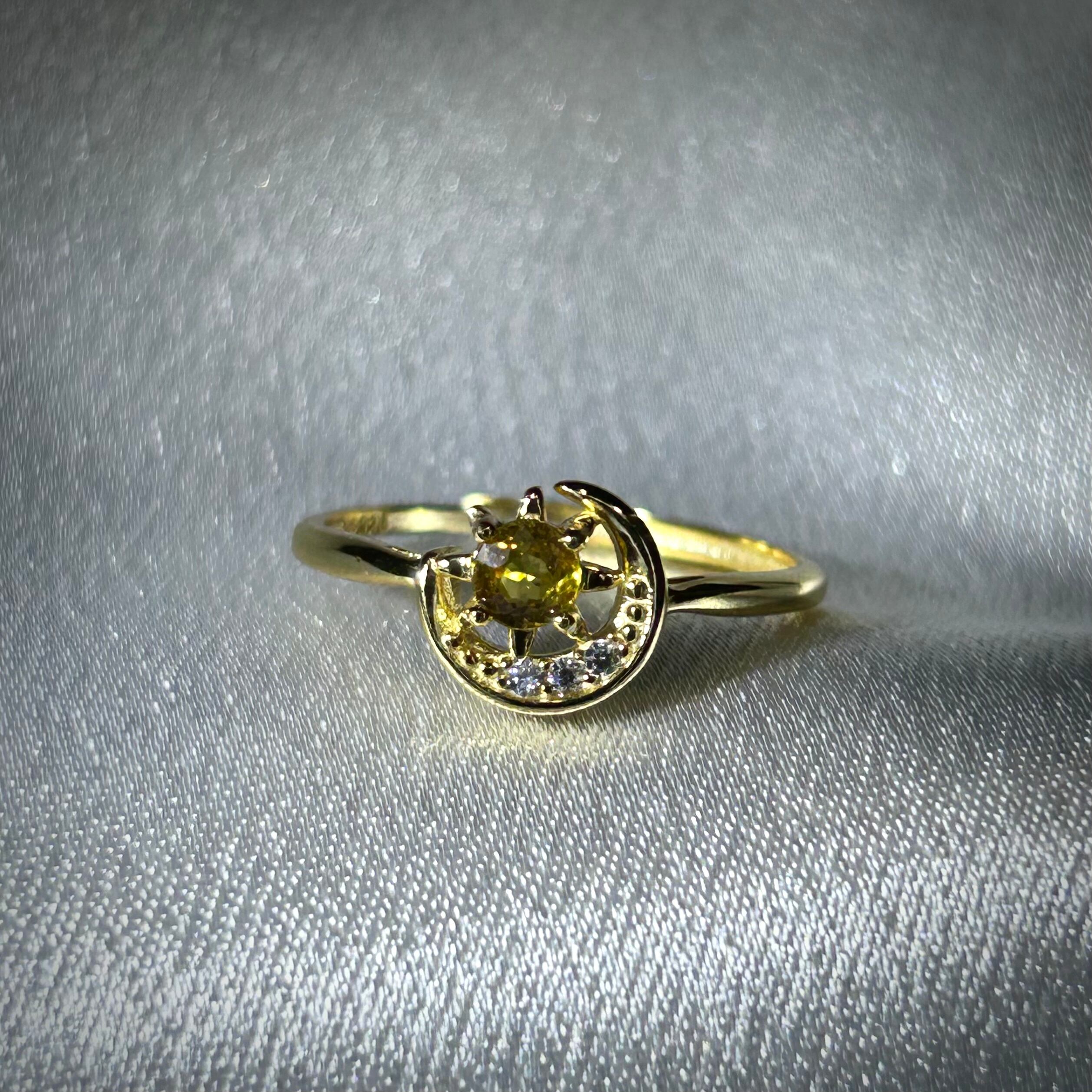 シルバー製ゴールドカラー スフェーン プラネットリング 7月誕生石 フリーサイズ