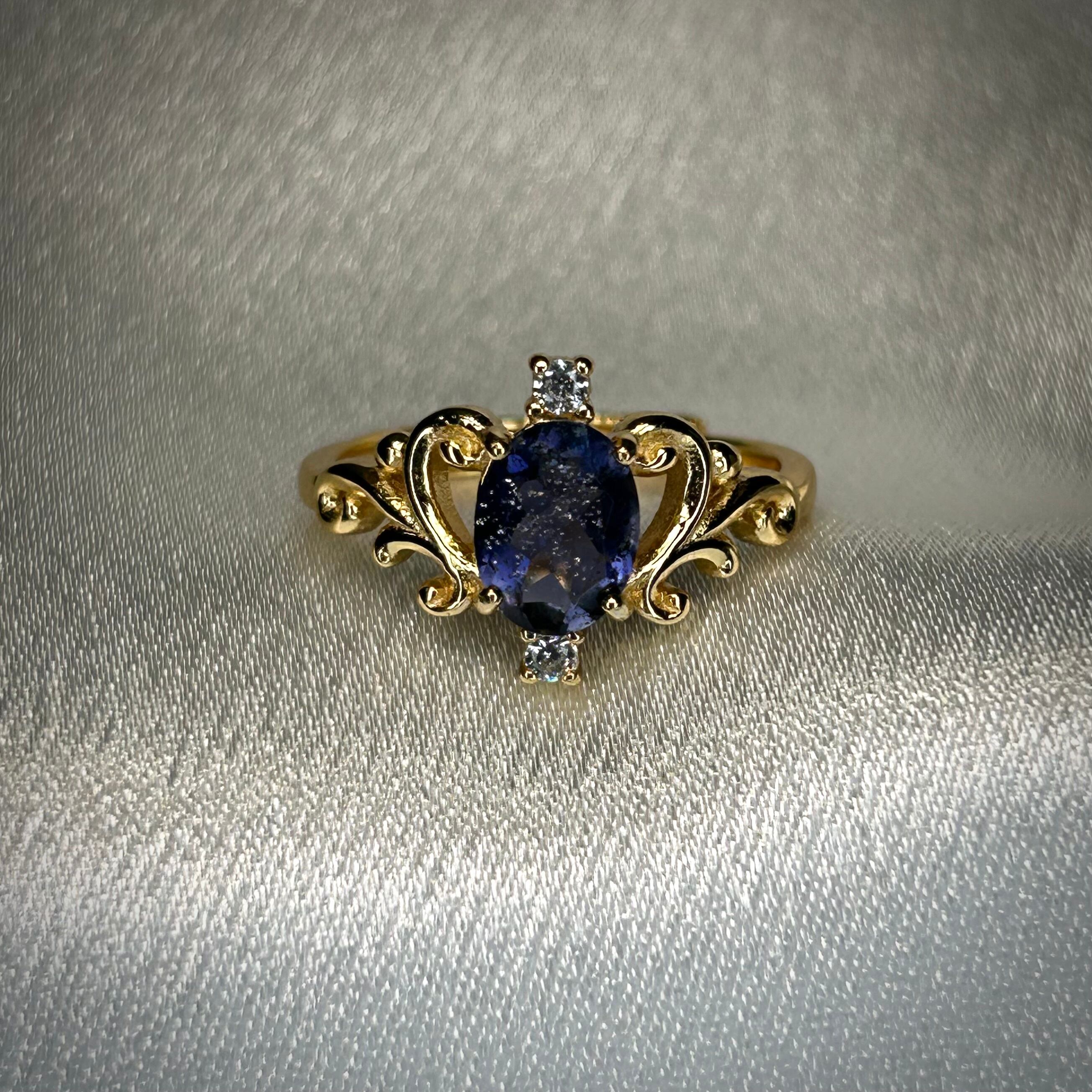 ワケ有り商品 シルバー製ゴールドカラー アイオライトサンストーン ロイヤルリング 3月誕生石 9号以上での使用推奨