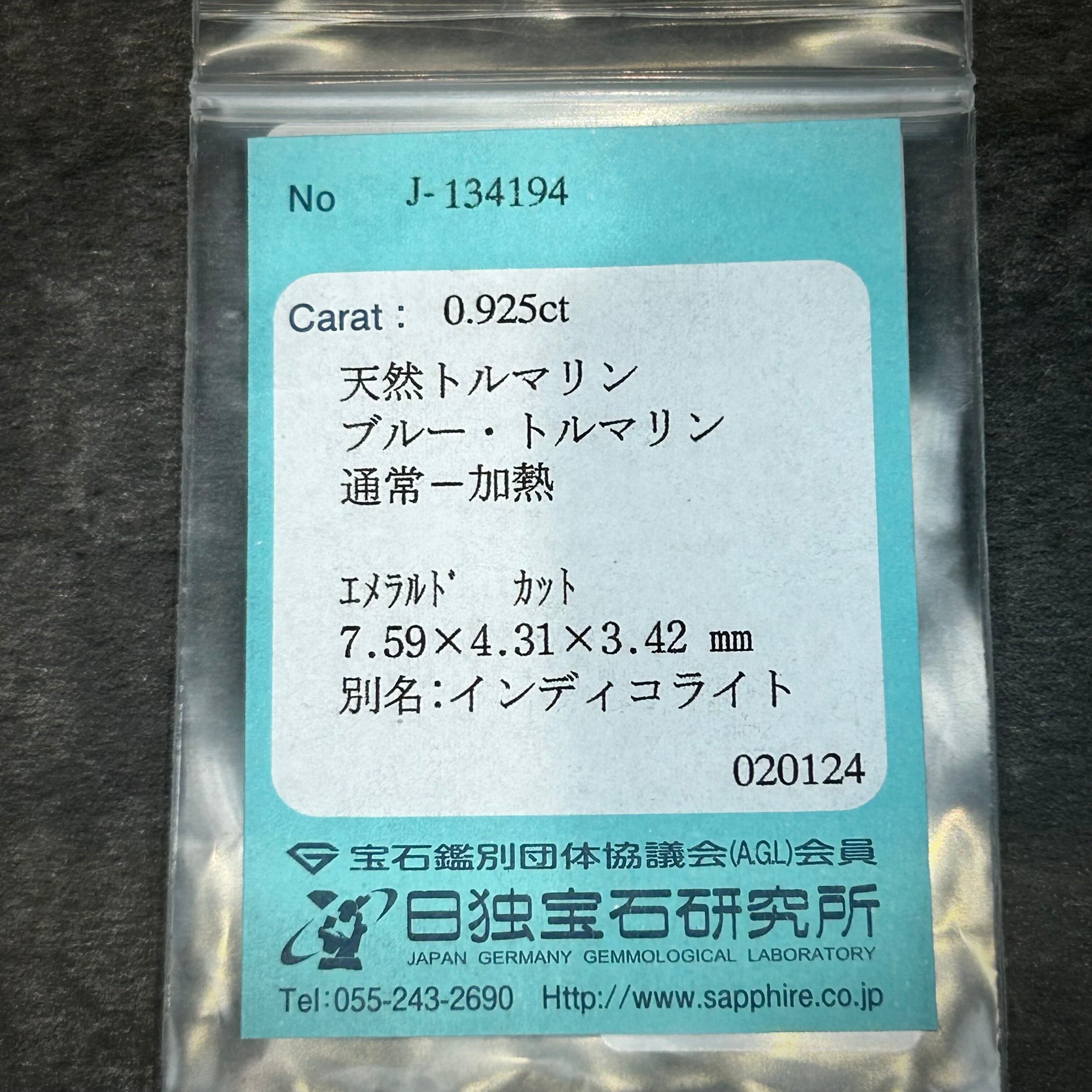 中石 インディコライトトルマリン(約4.3×7.5mm・0.925ct)