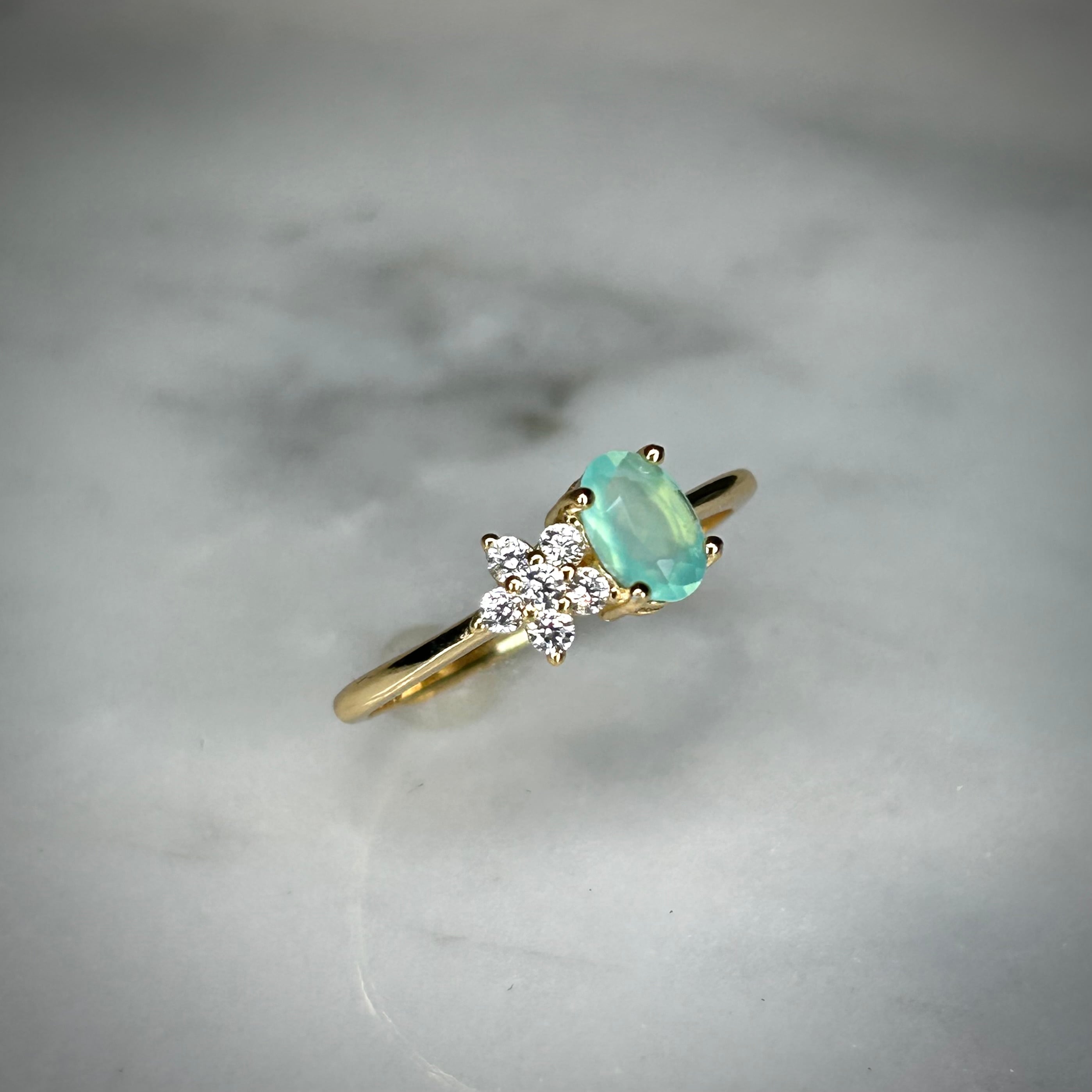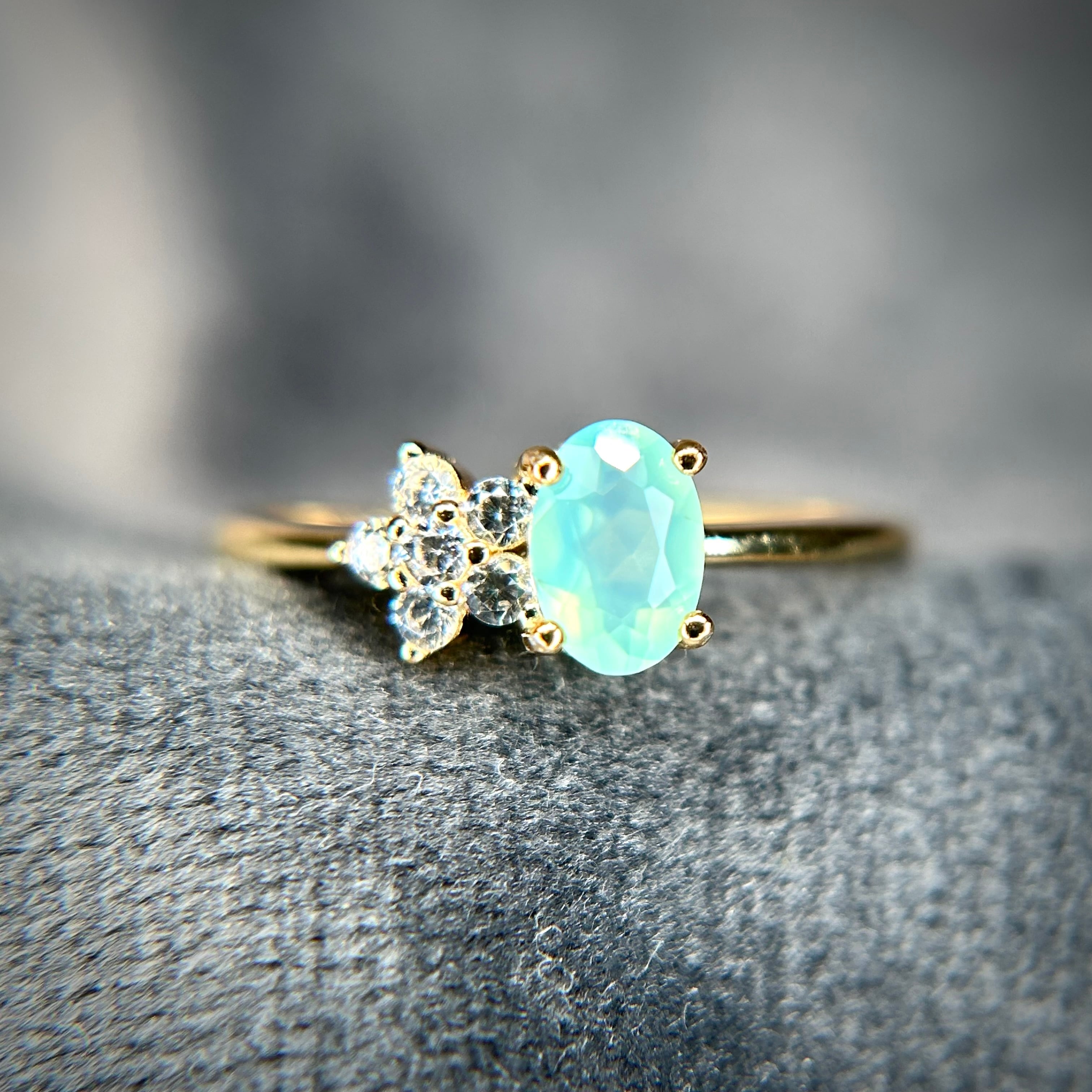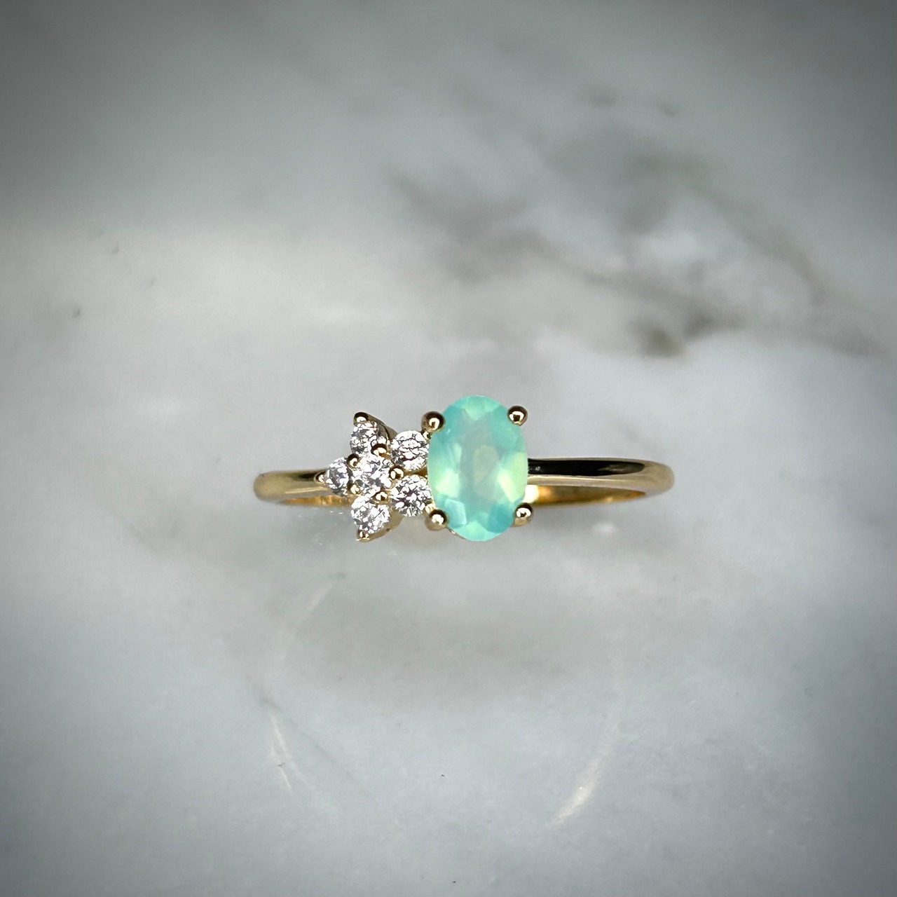 グリーンブルーカラーのオパールが目を引く、可愛いです。