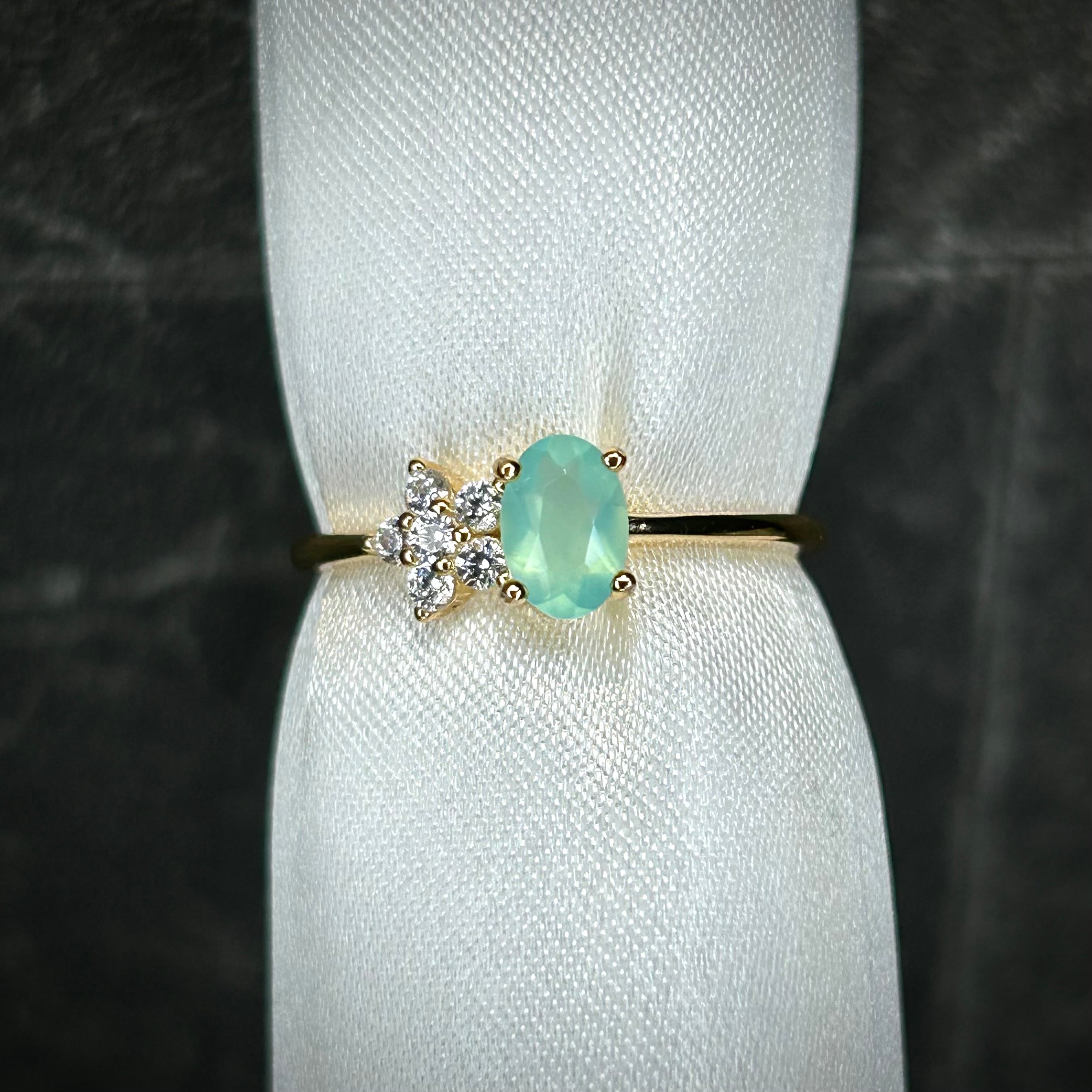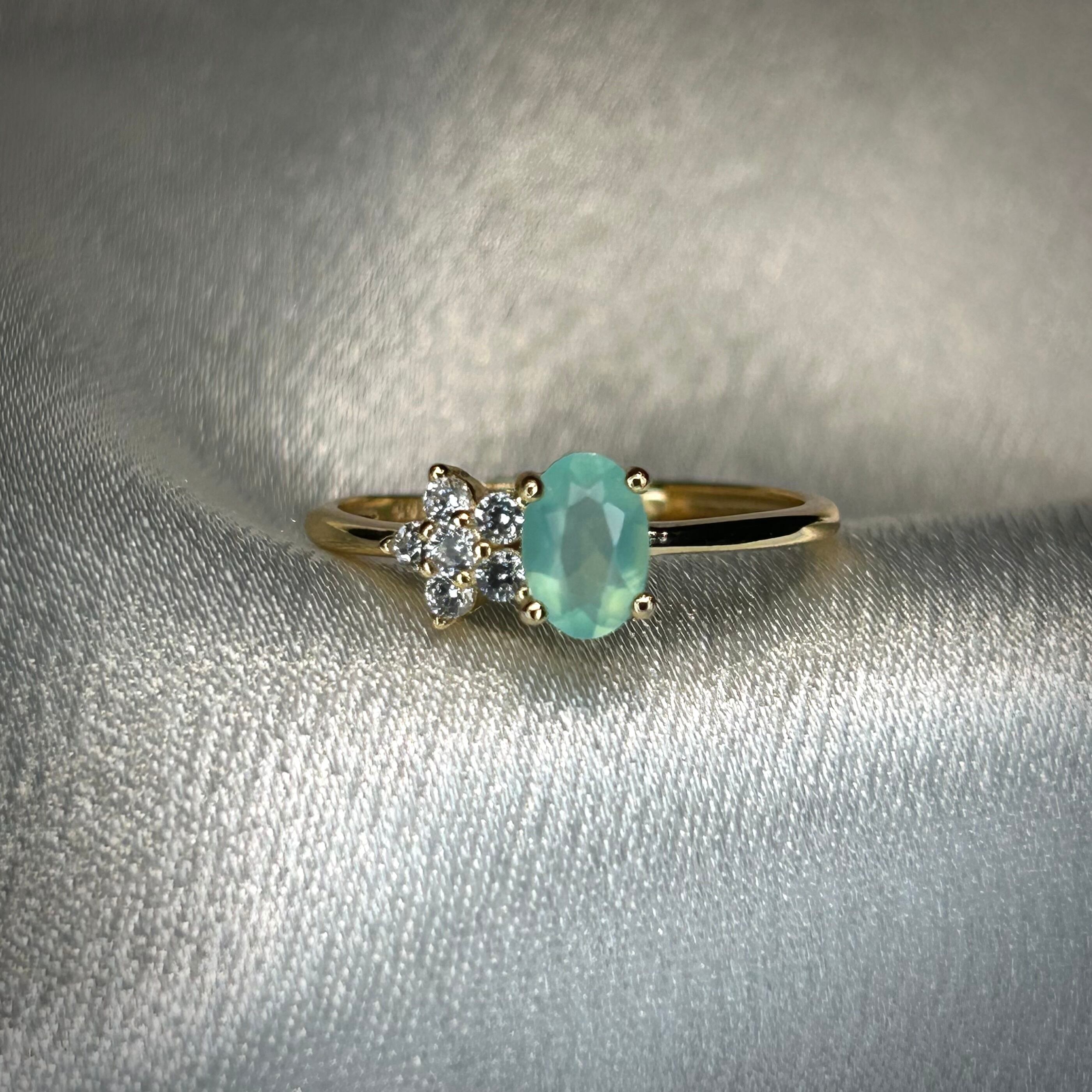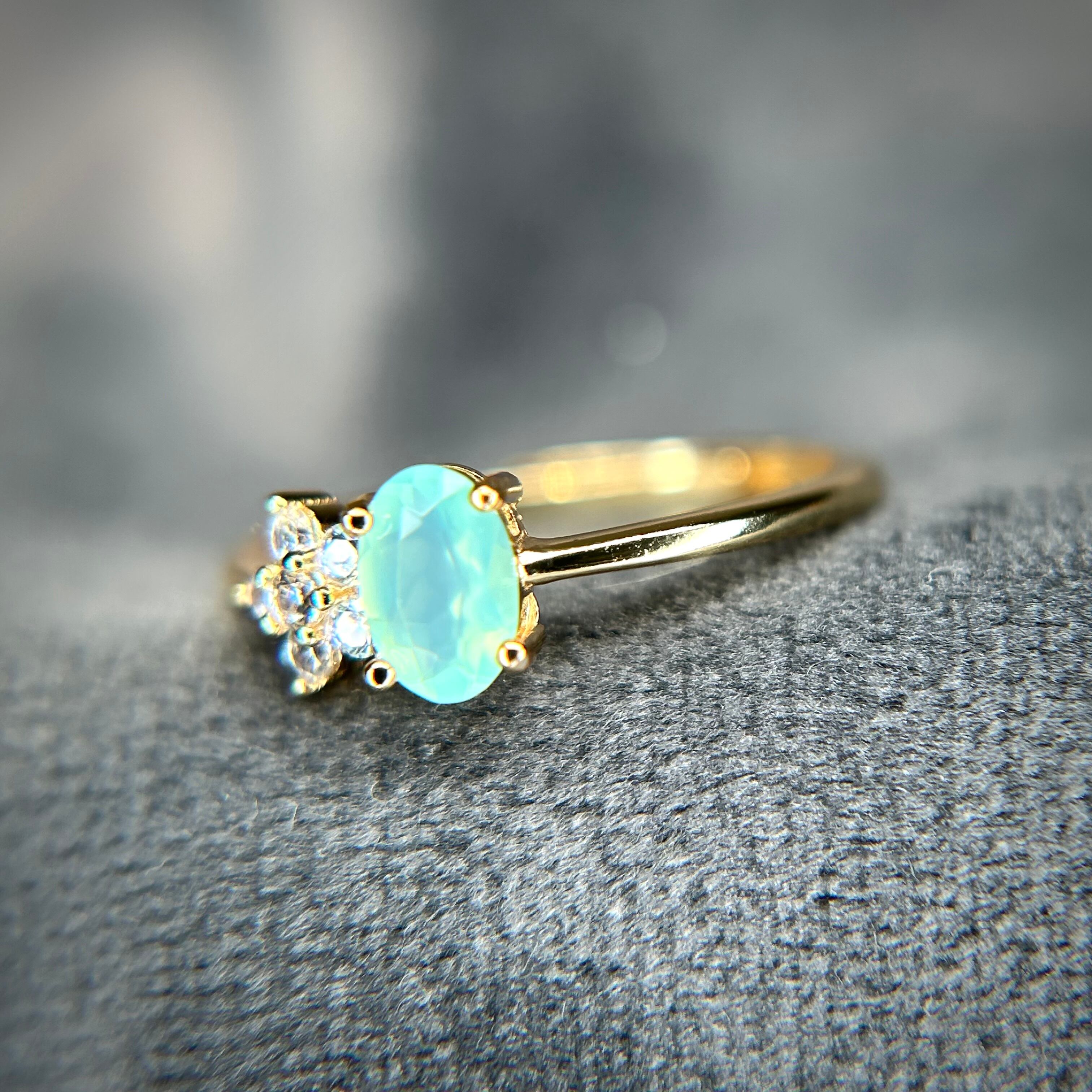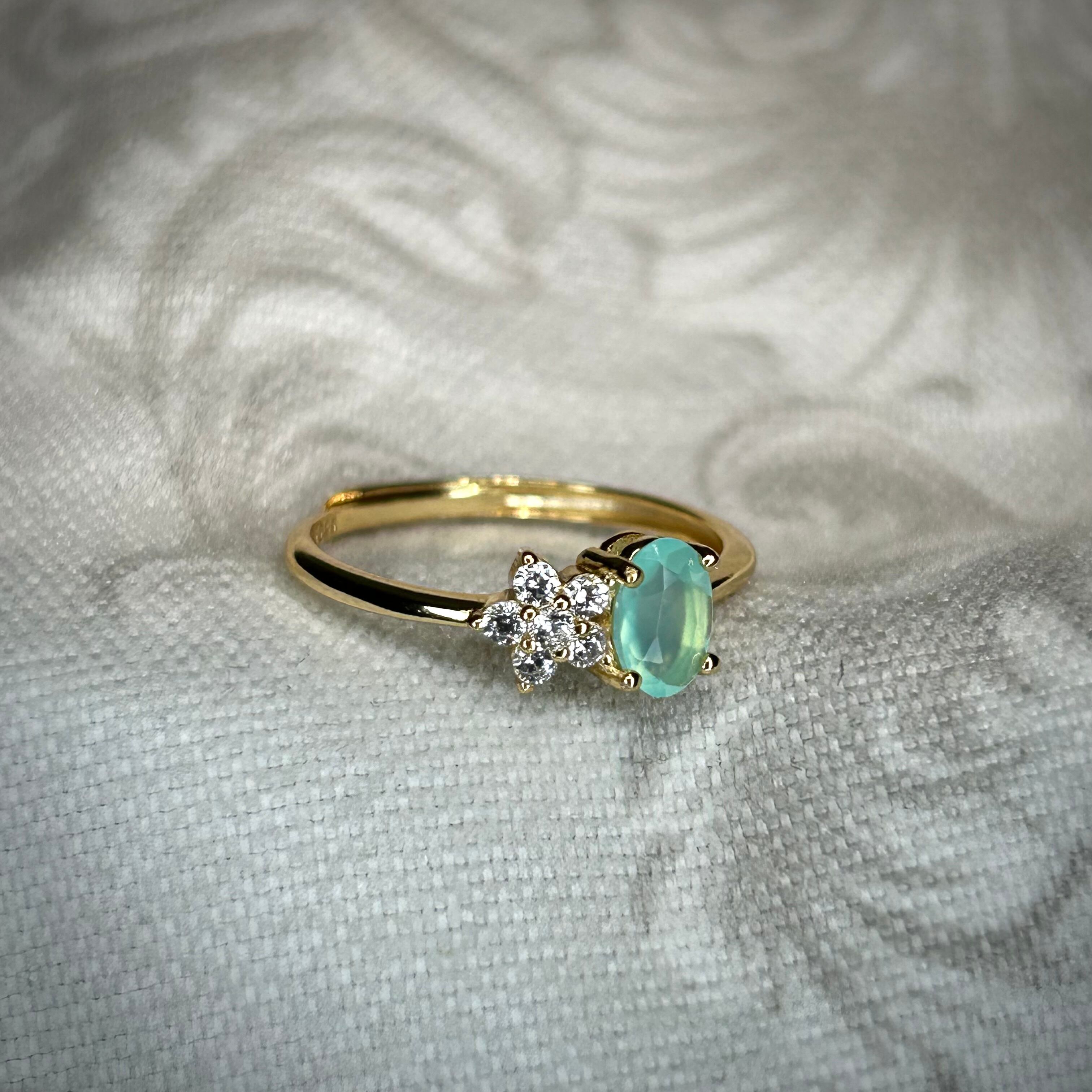 グリーンブルーカラーのオパールが目を引く、可愛いです。