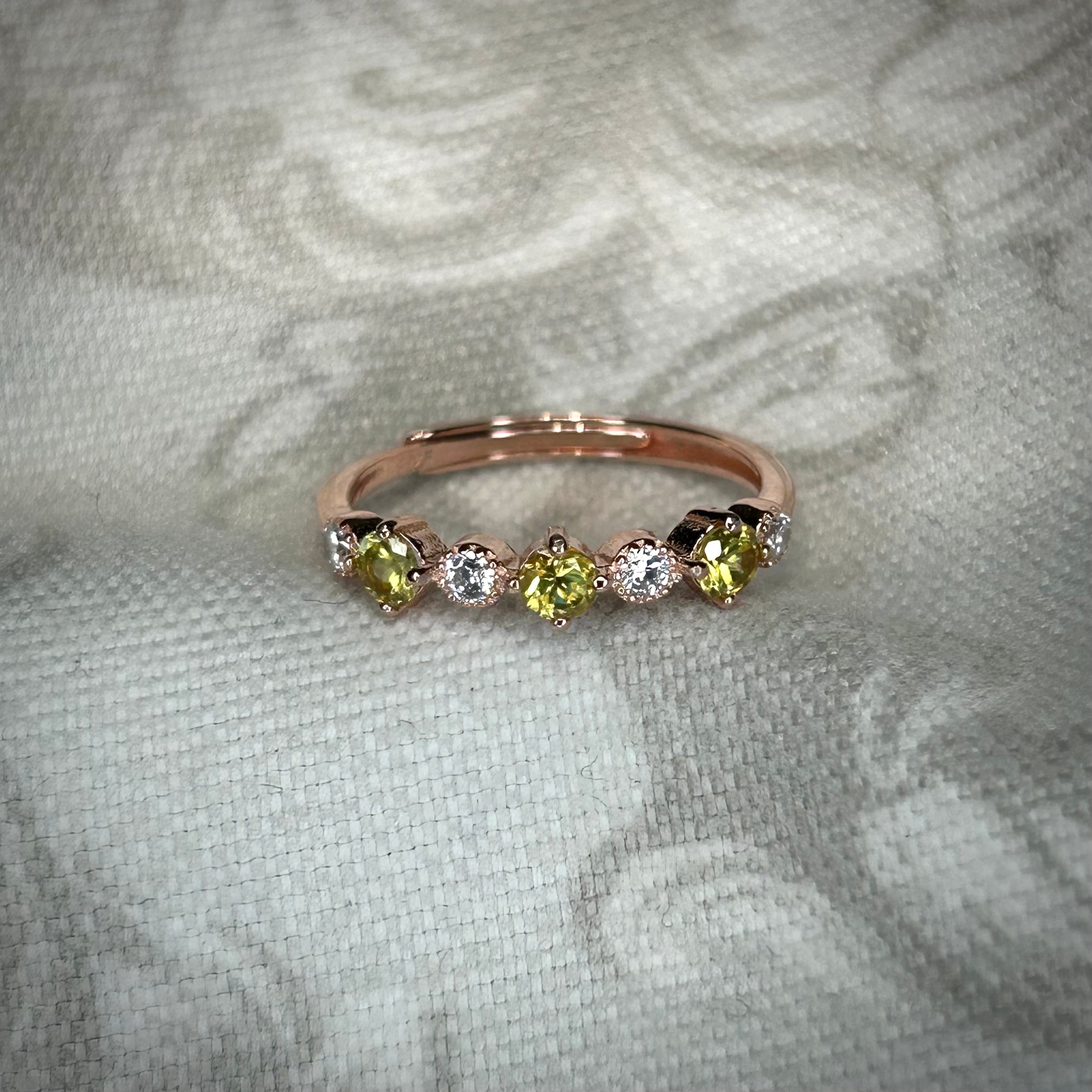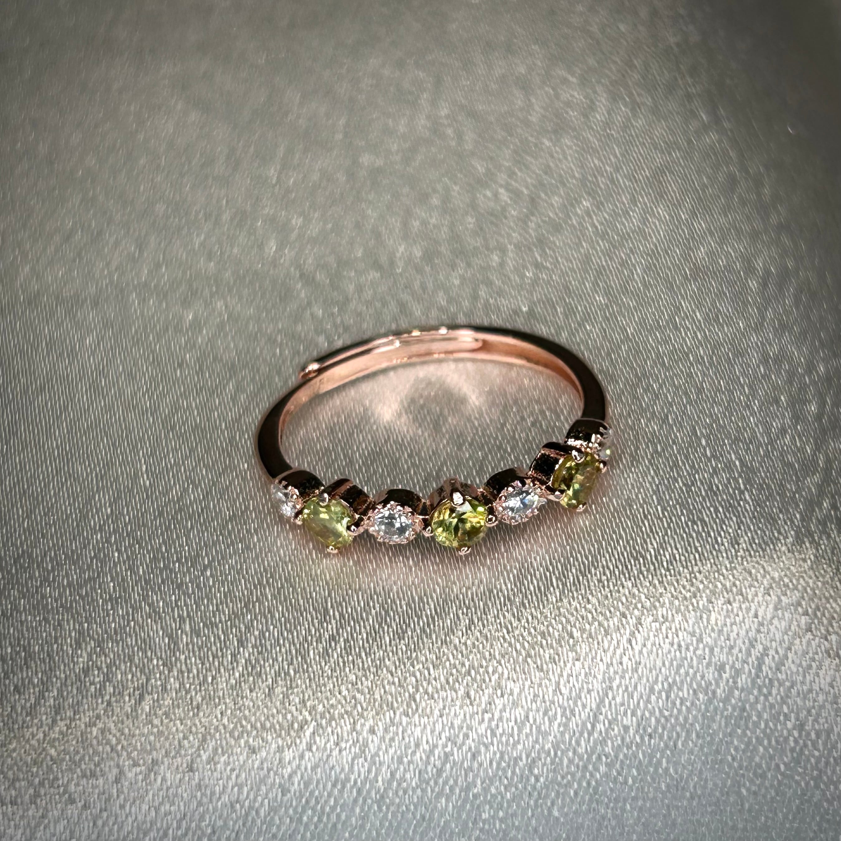 シルバー製ピンクゴールドカラー スフェーン 3石リング 7月誕生石 フリーサイズ