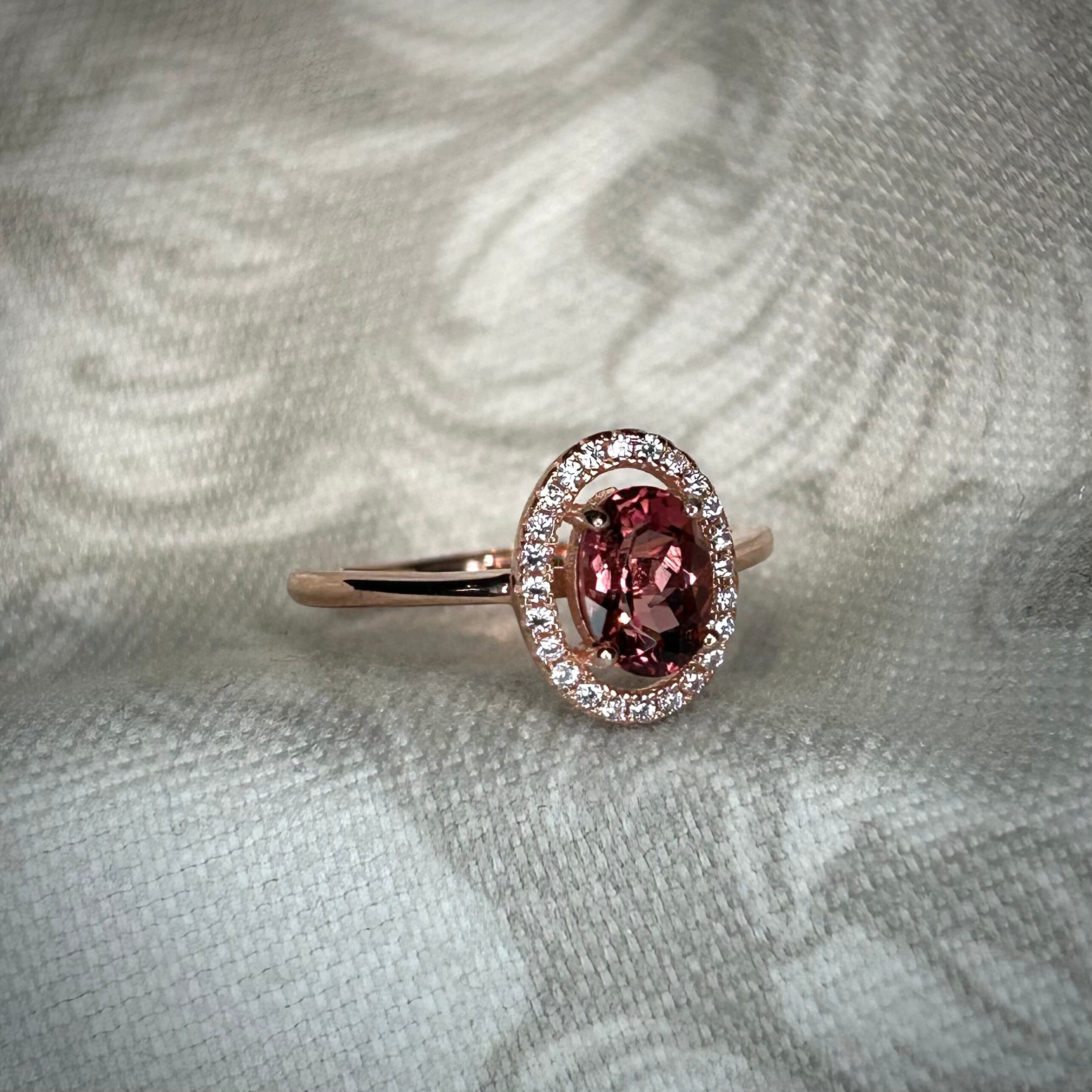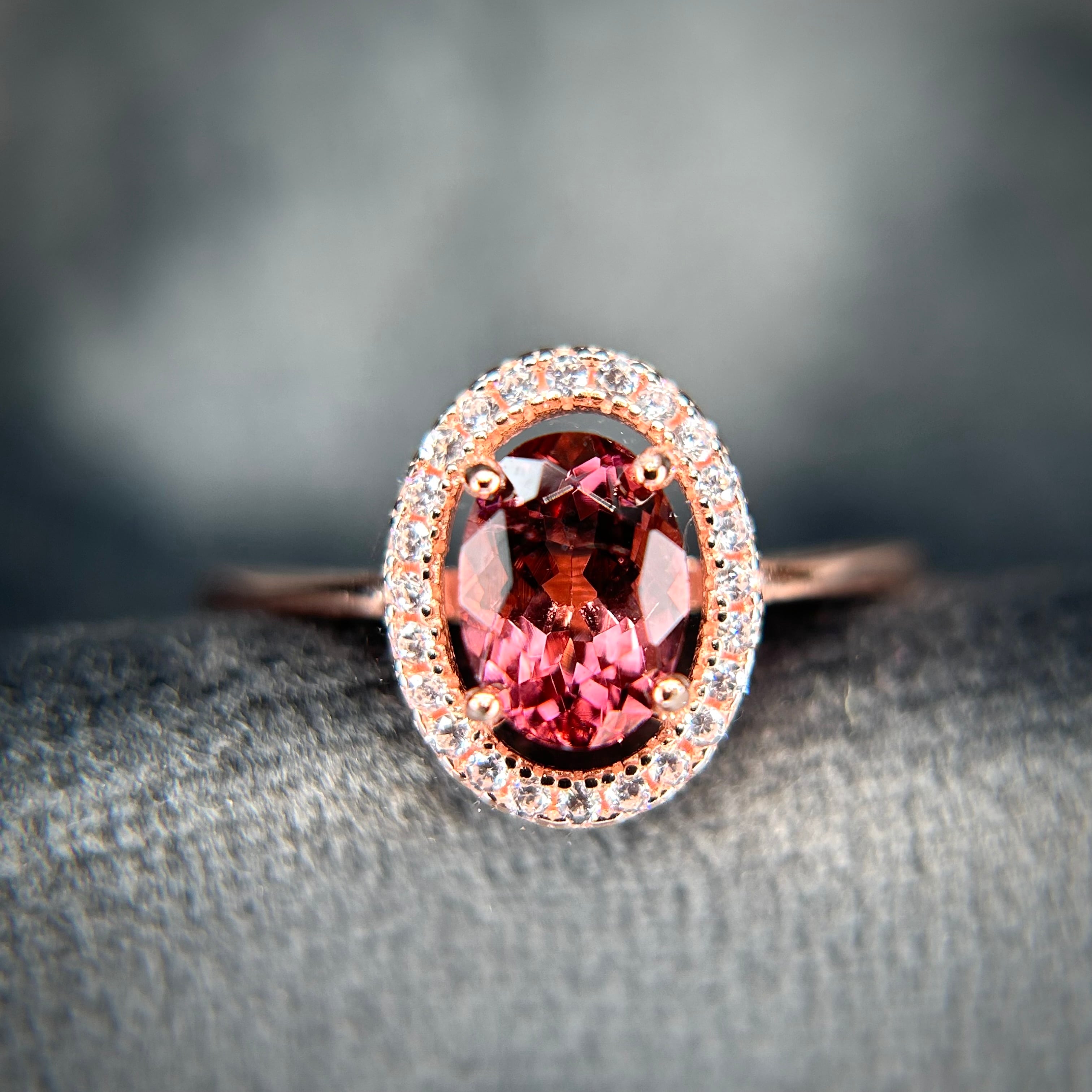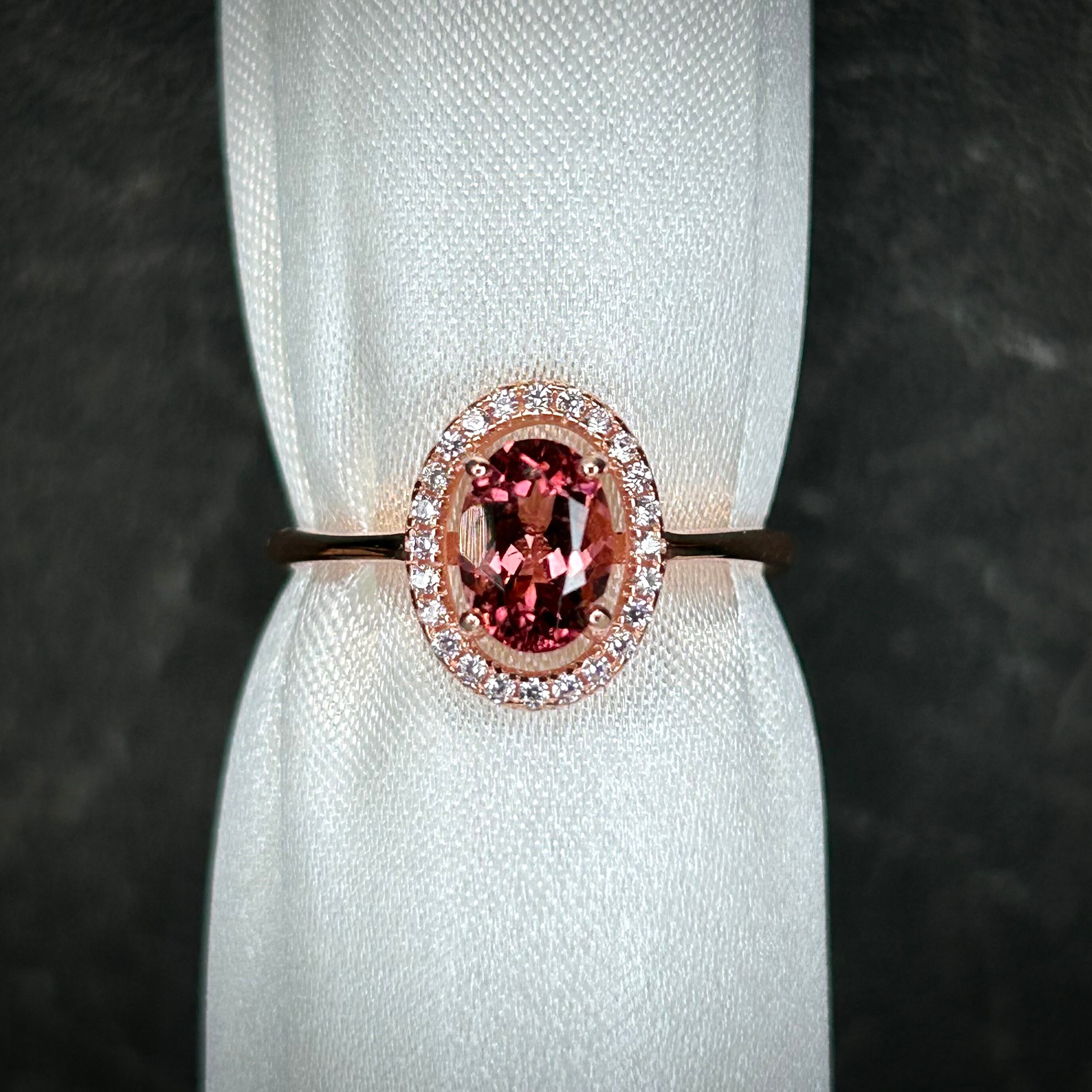 シルバー製ピンクゴールドカラー トルマリン オーバルリング 10月誕生石 フリーサイズ