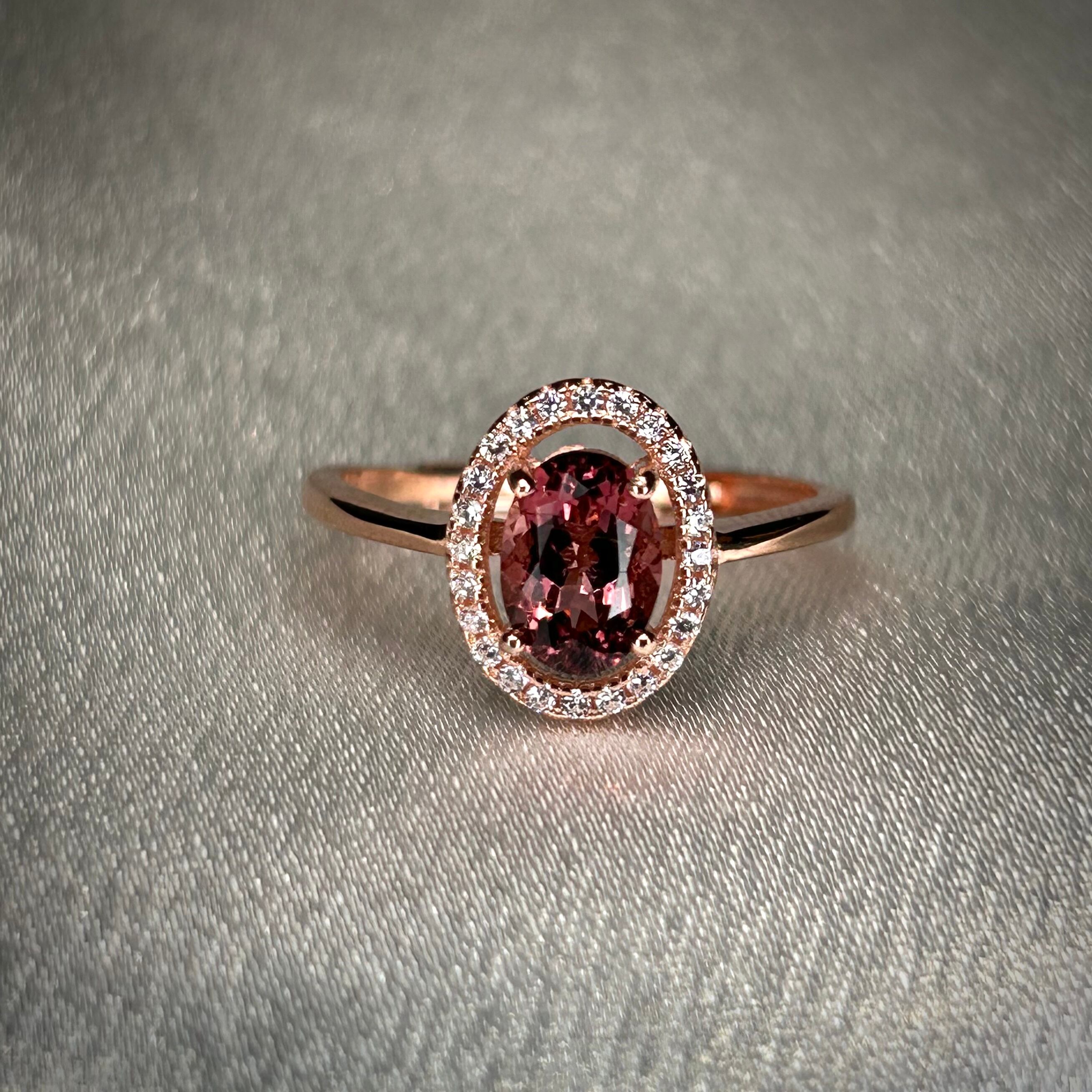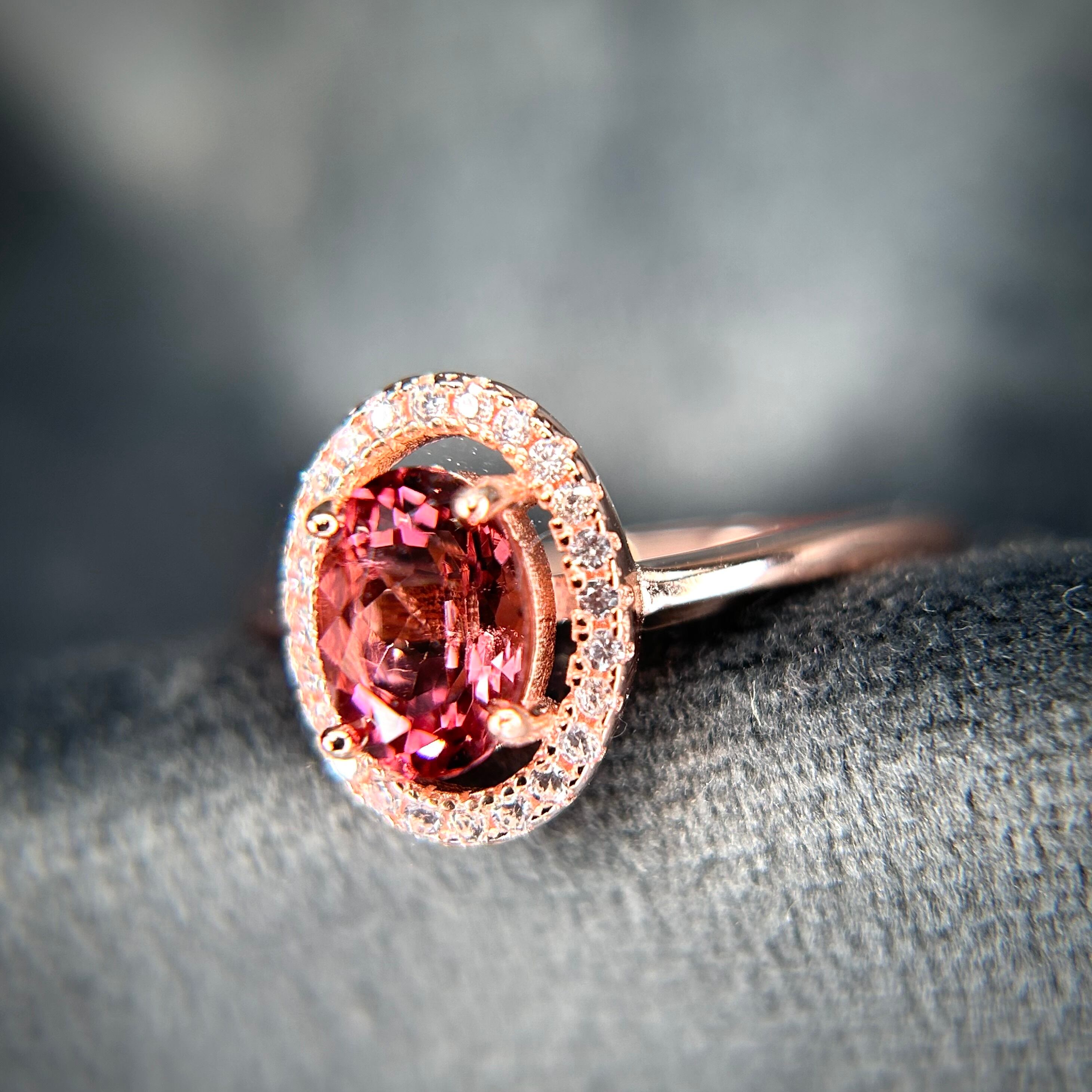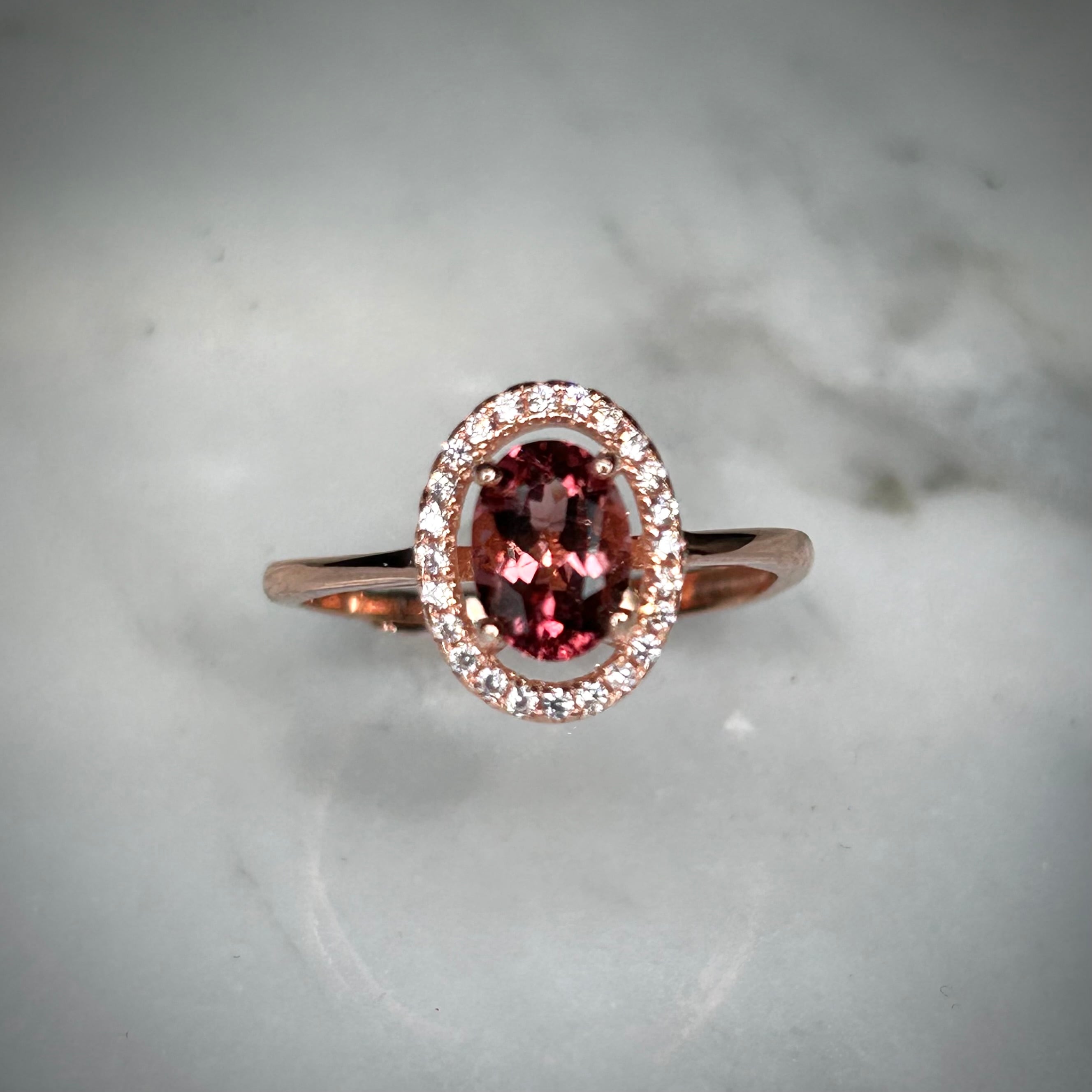 シルバー製ピンクゴールドカラー トルマリン オーバルリング 10月誕生石 フリーサイズ