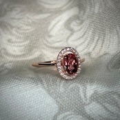 シルバー製ピンクゴールドカラー、トルマリンのオーバルリング。