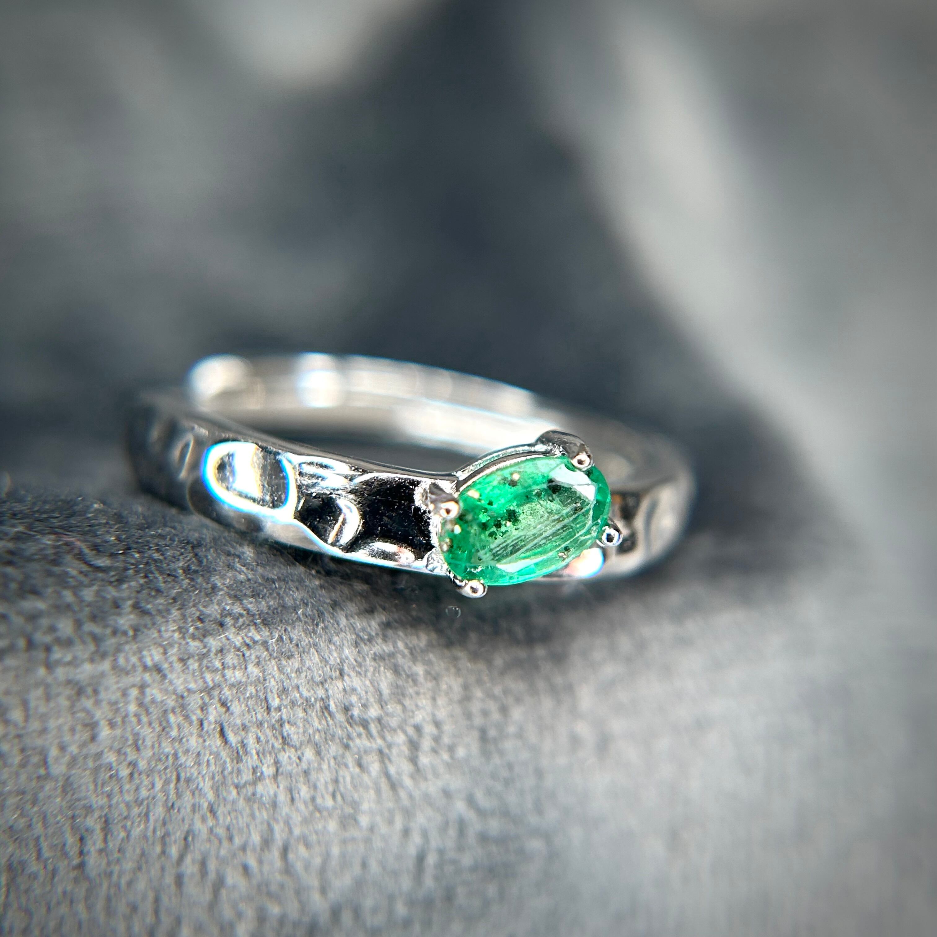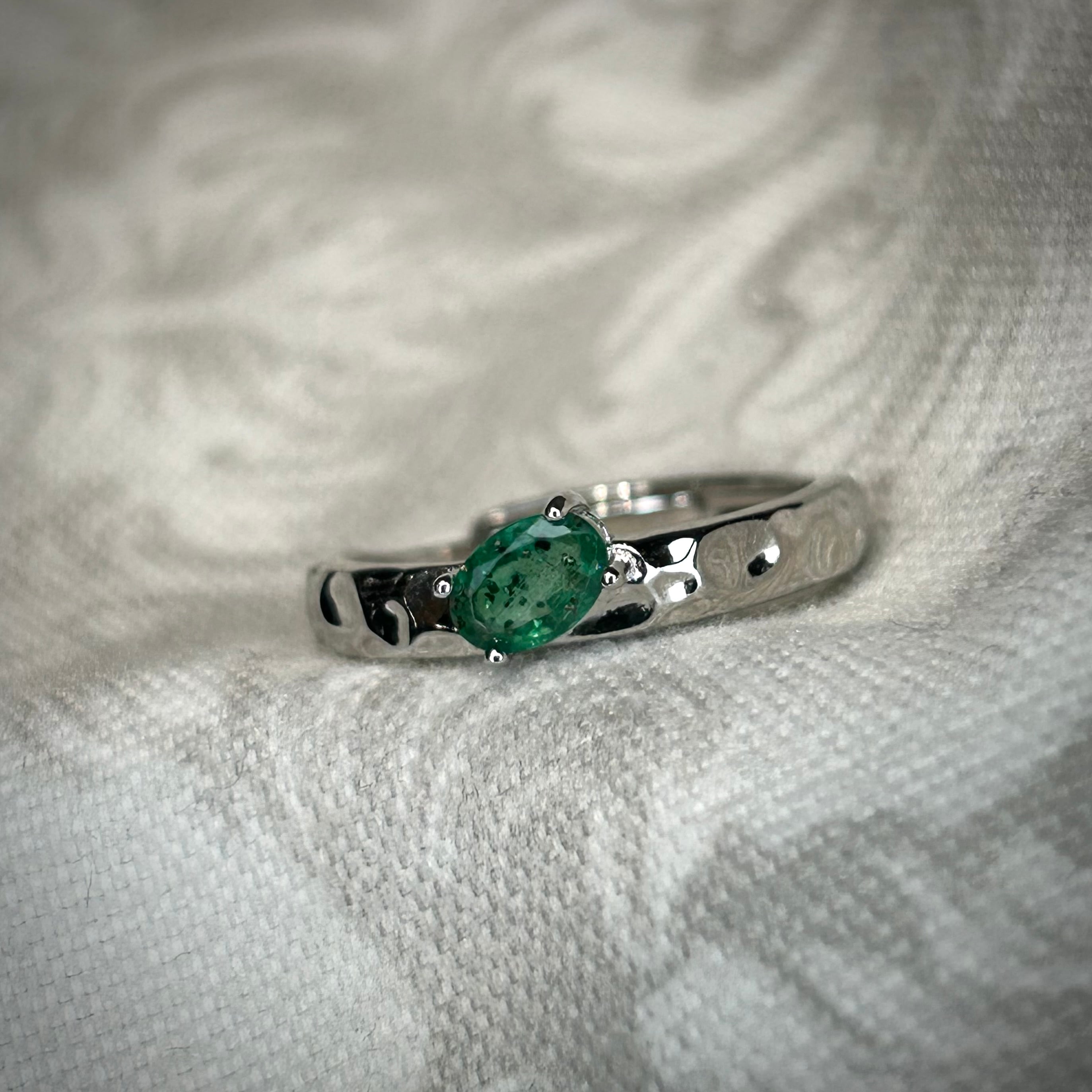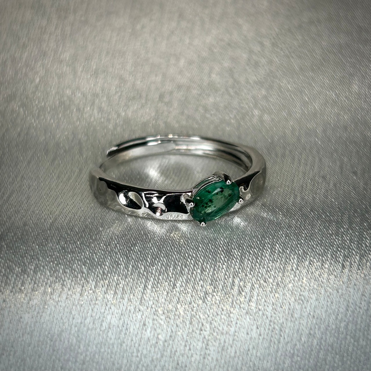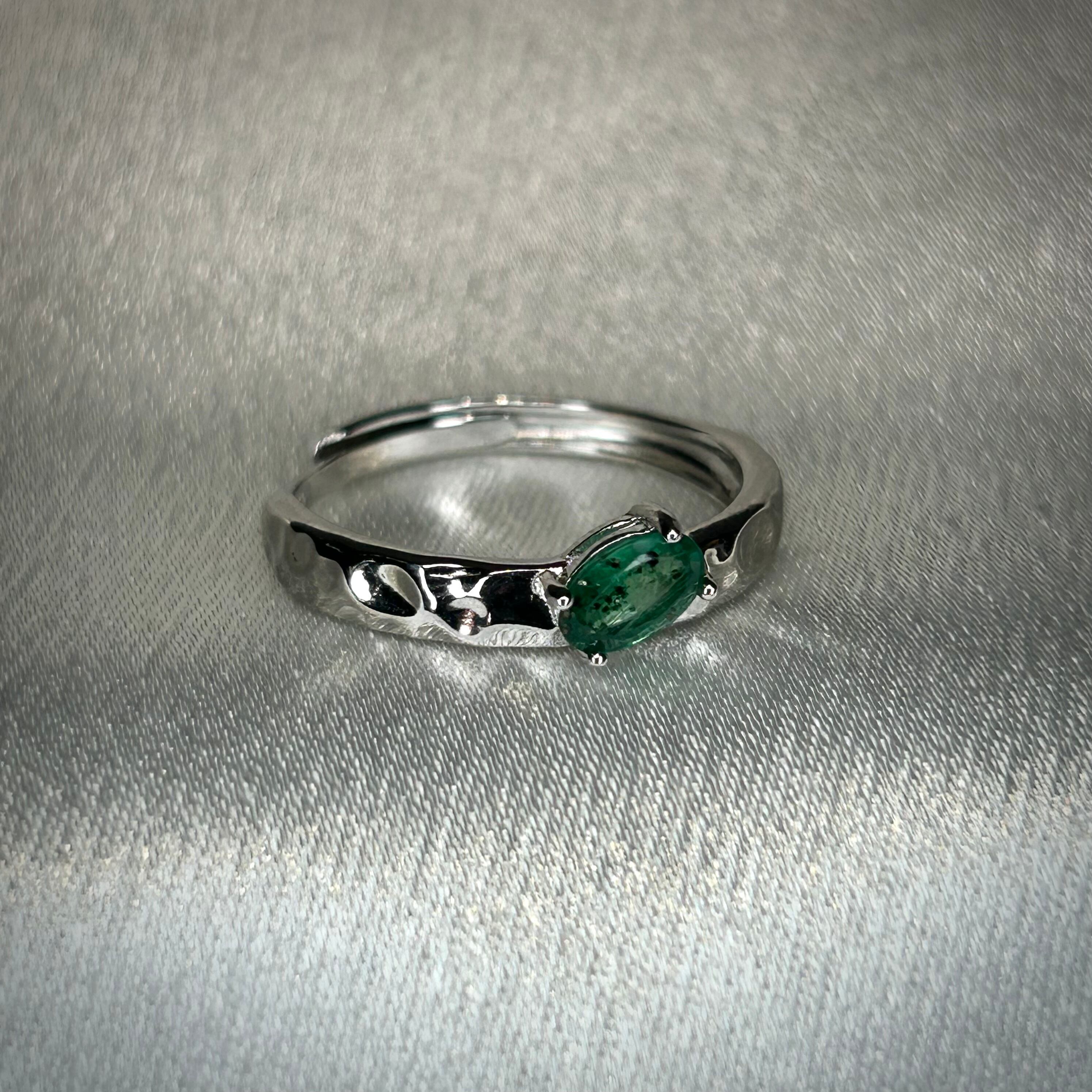 シルバー製 パイライトインエメラルド テクスチャーリング 5月誕生石 フリーサイズ