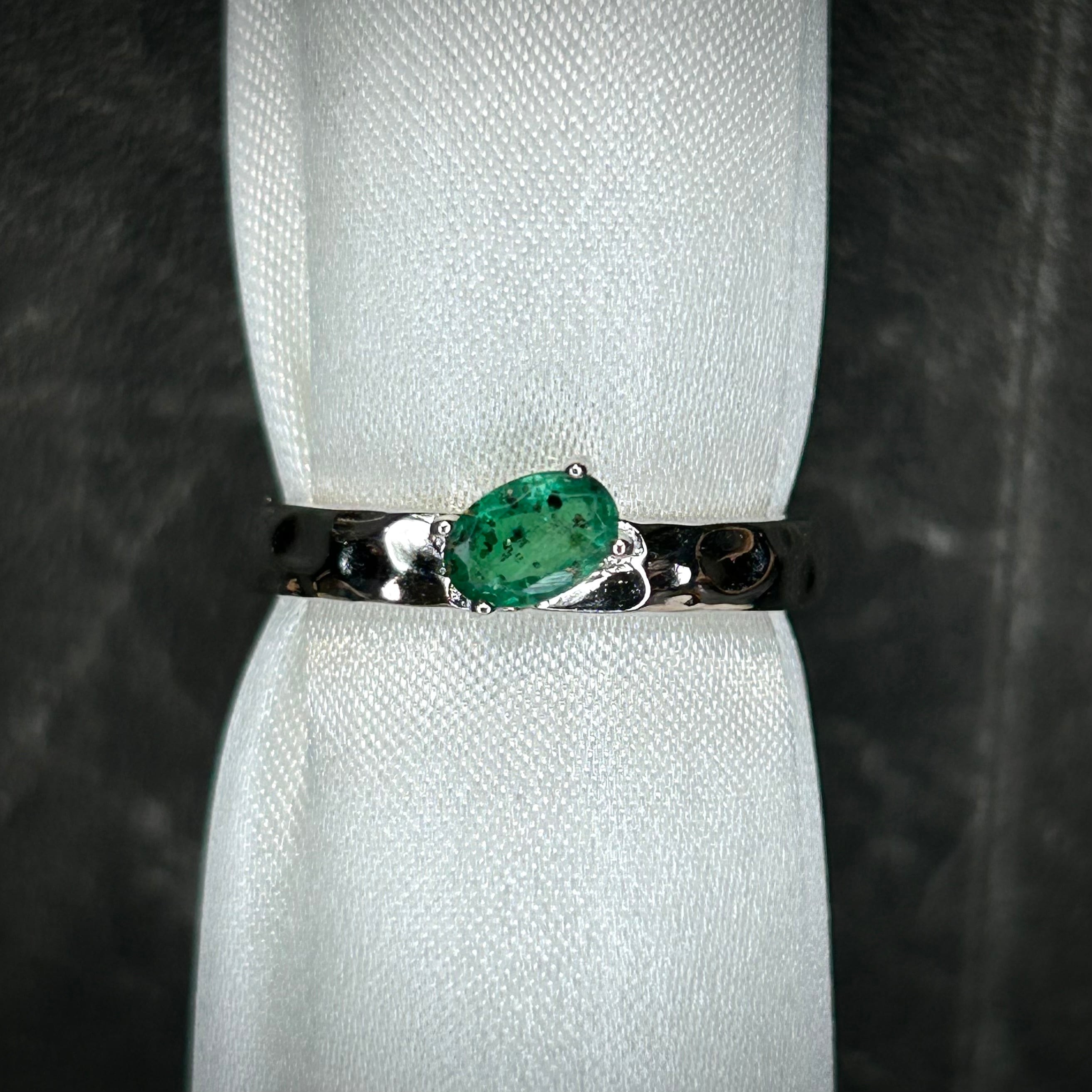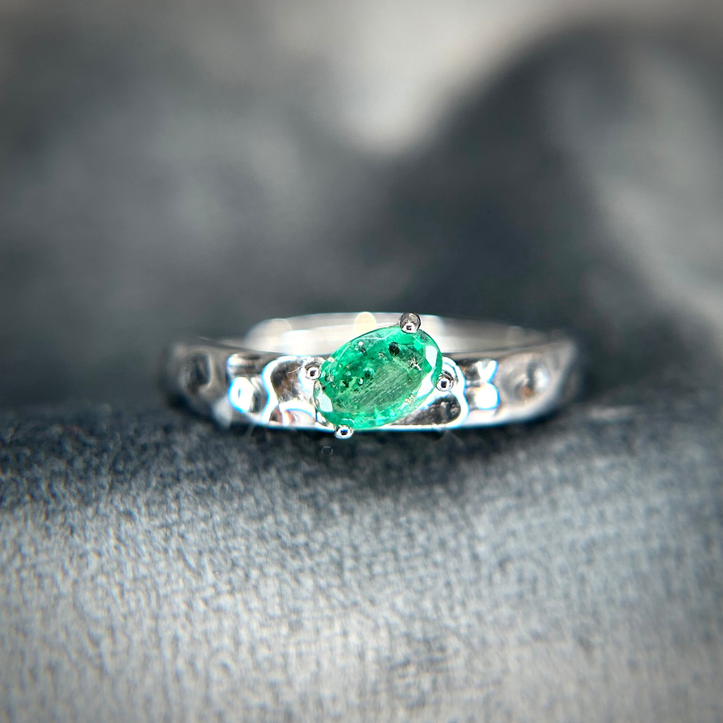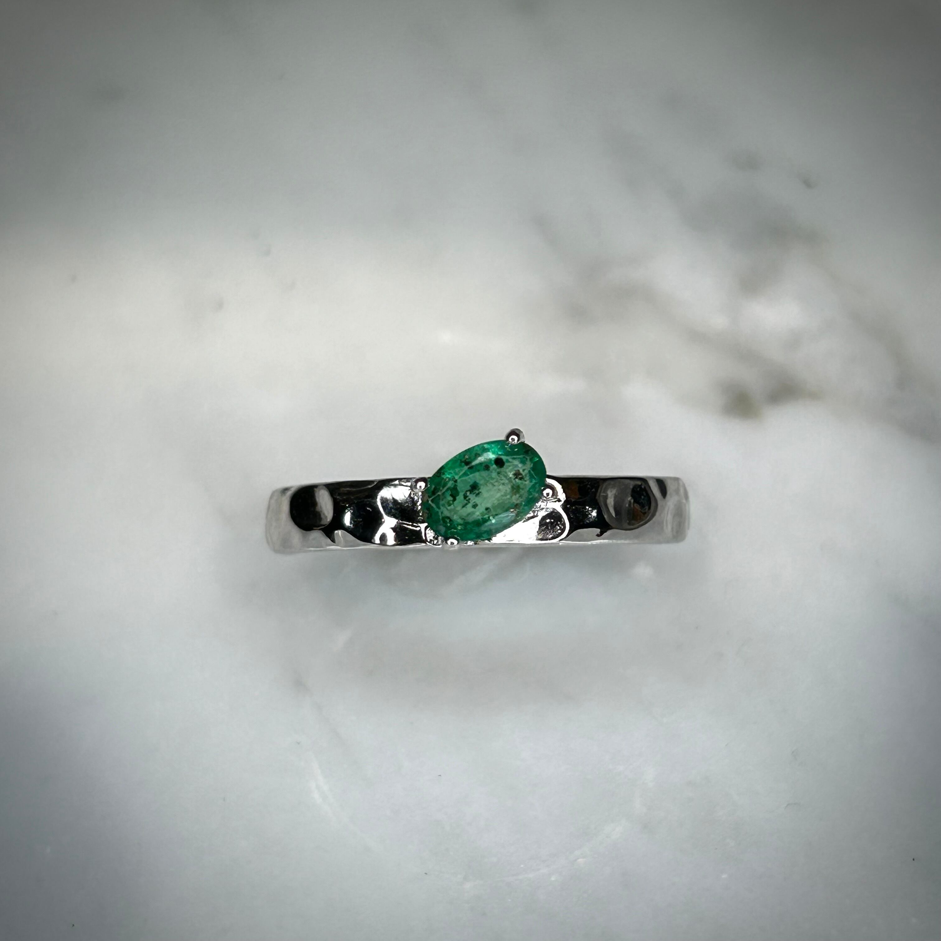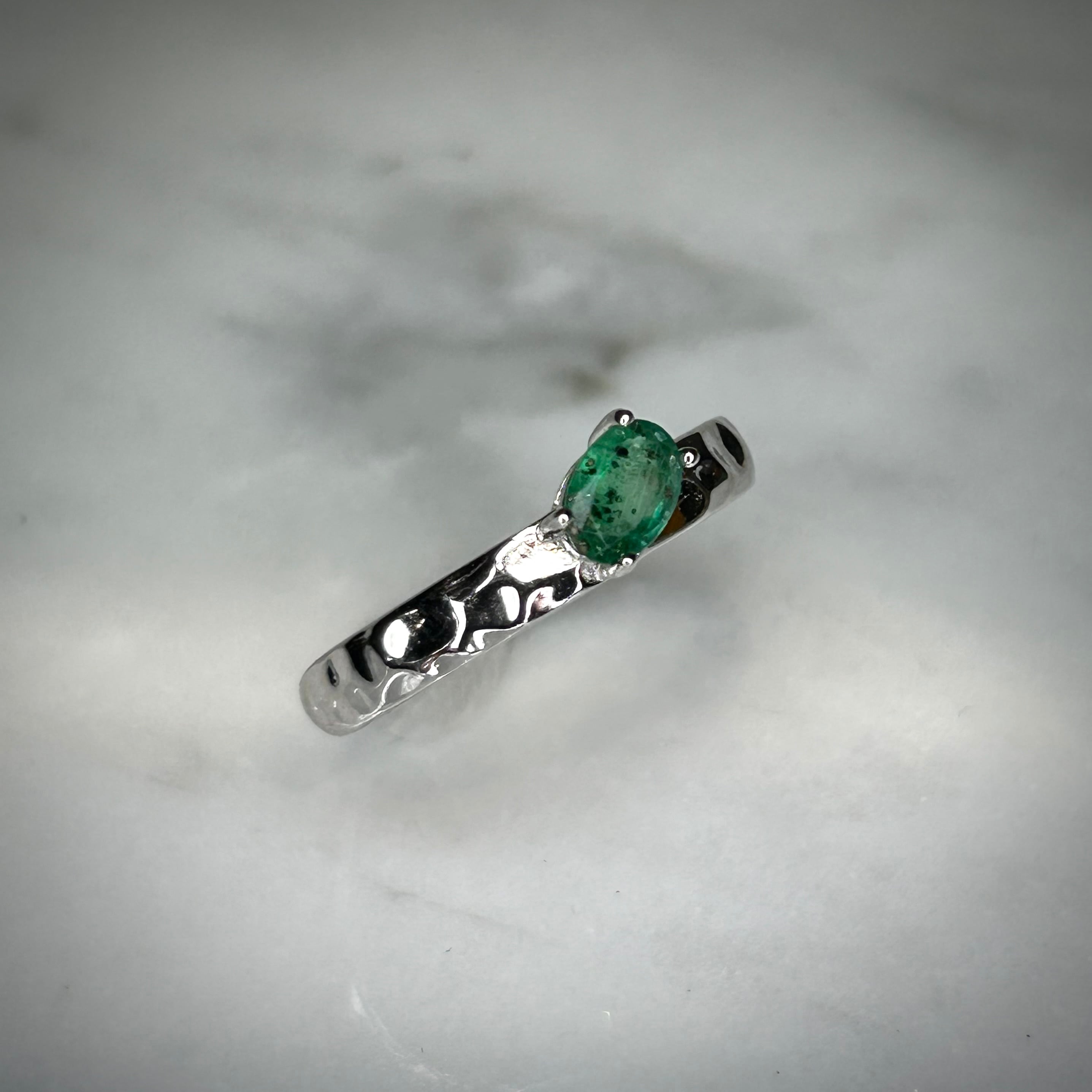 シルバー製 パイライトインエメラルド テクスチャーリング 5月誕生石 フリーサイズ