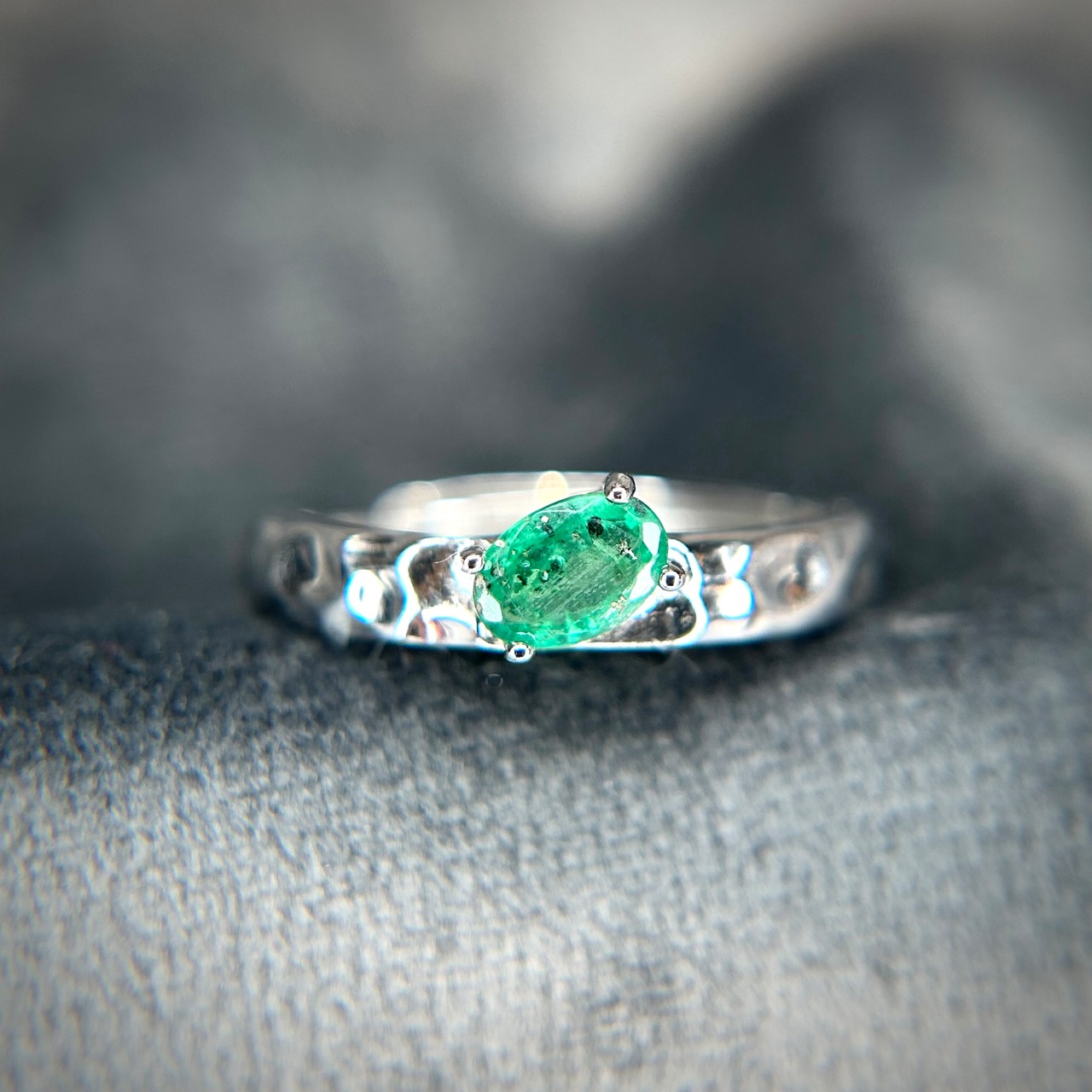 シルバー製、パイライトインエメラルドのテクスチャーリング。