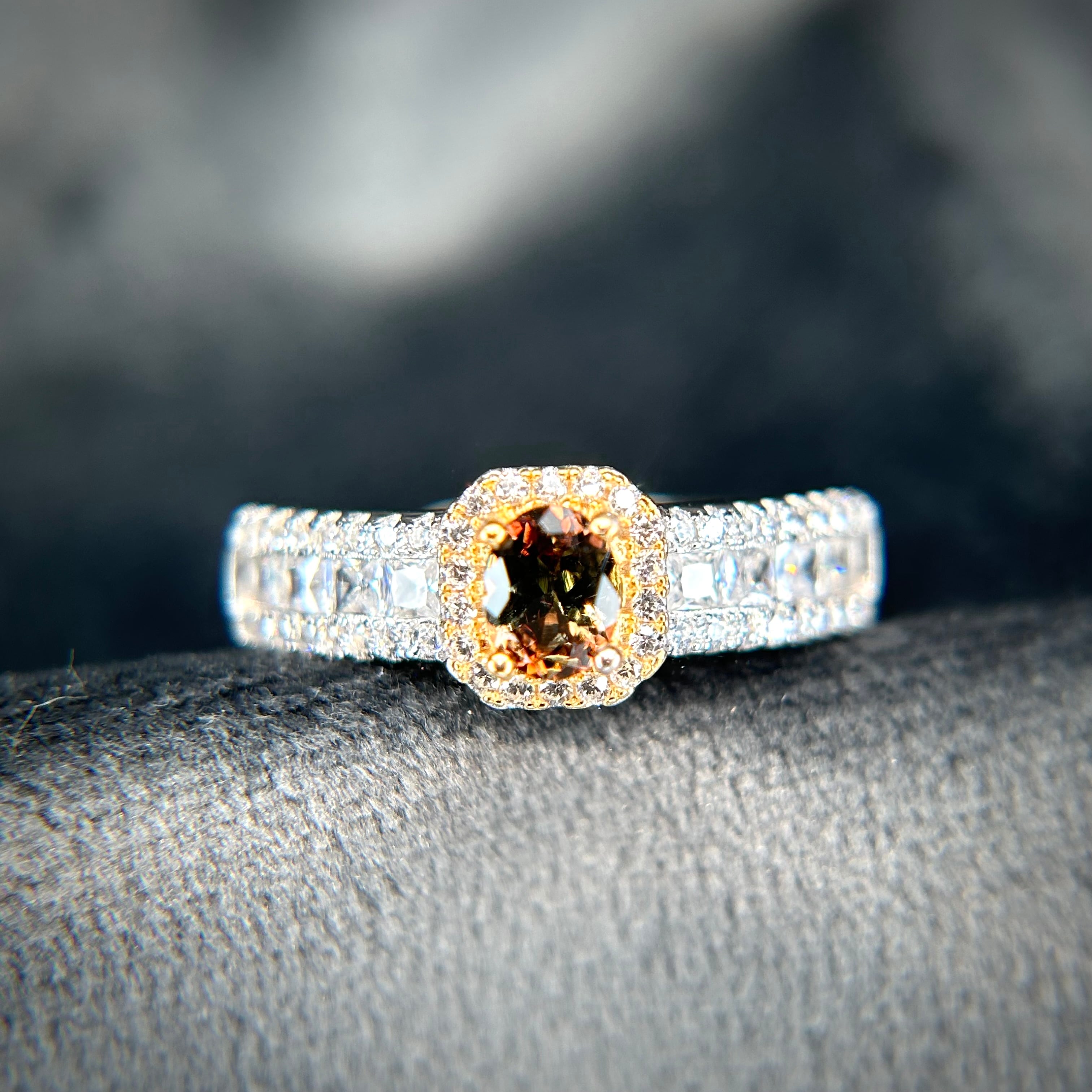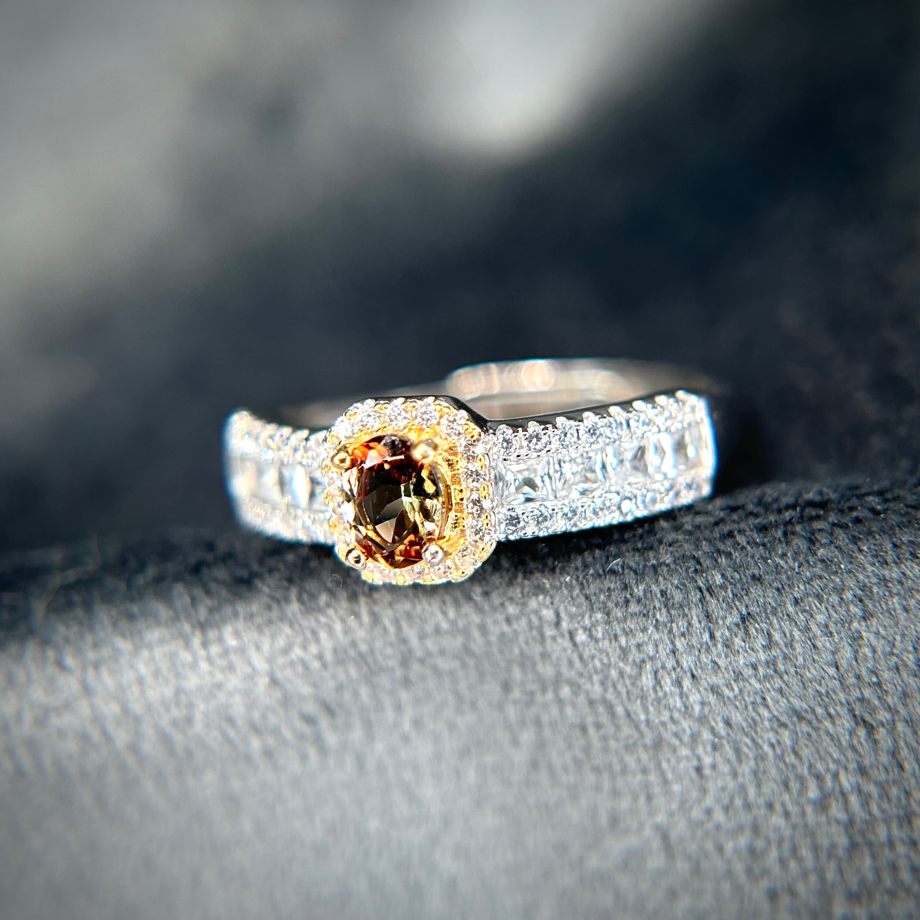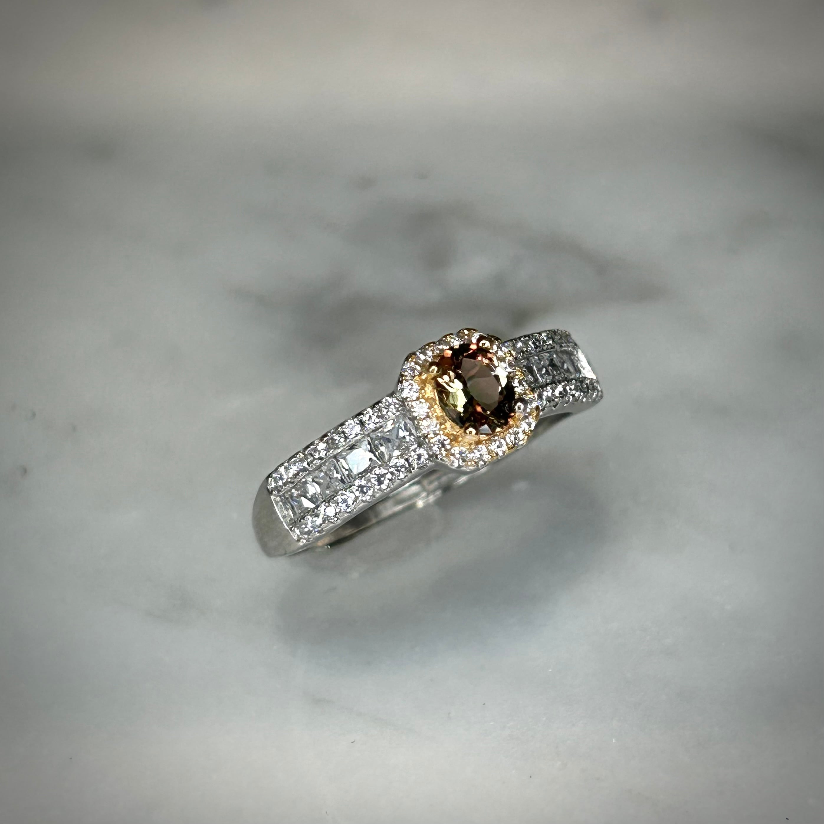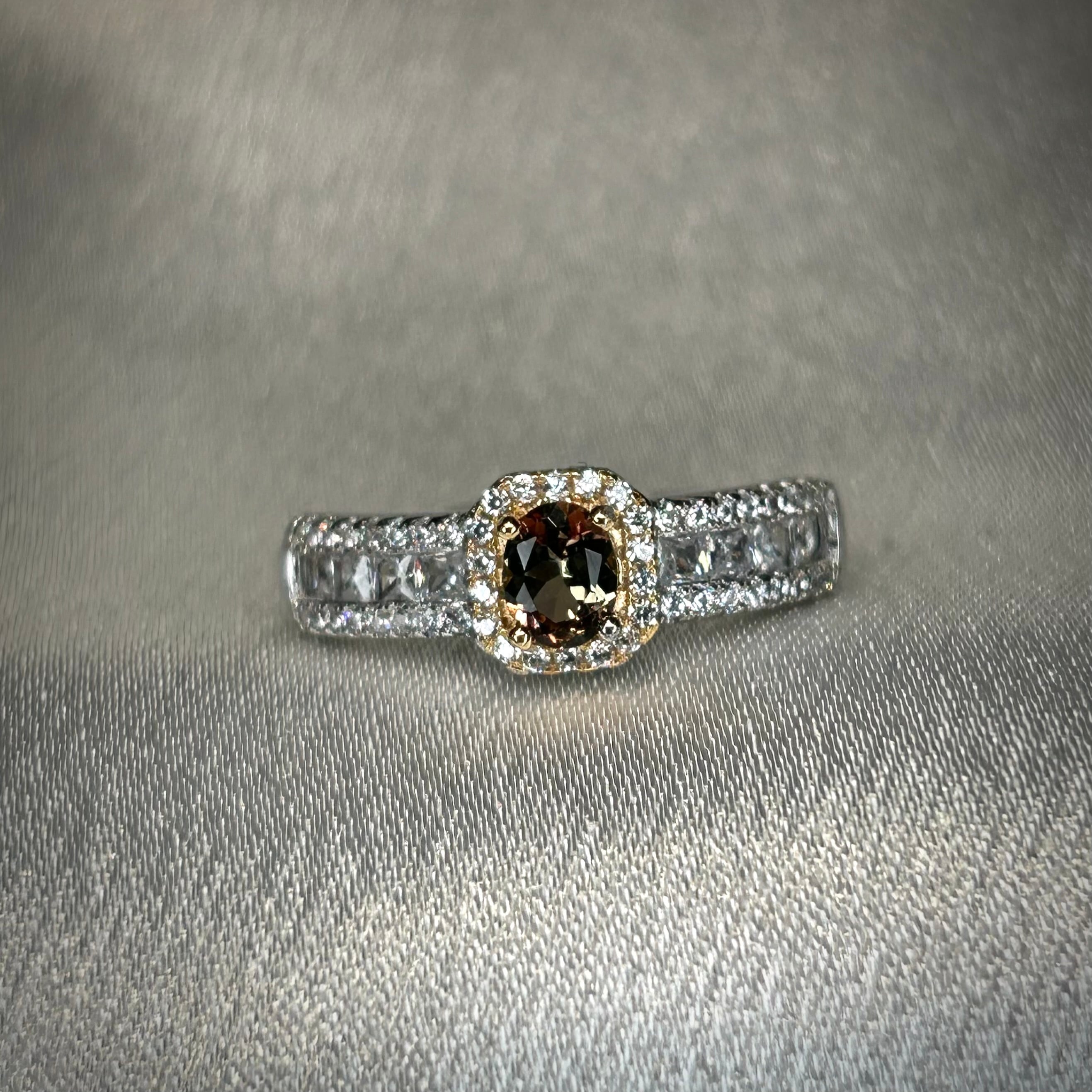 煌めく脇石の存在感にも負けない、美しいアンダリュサイトが楽しめる華やかなリングです。