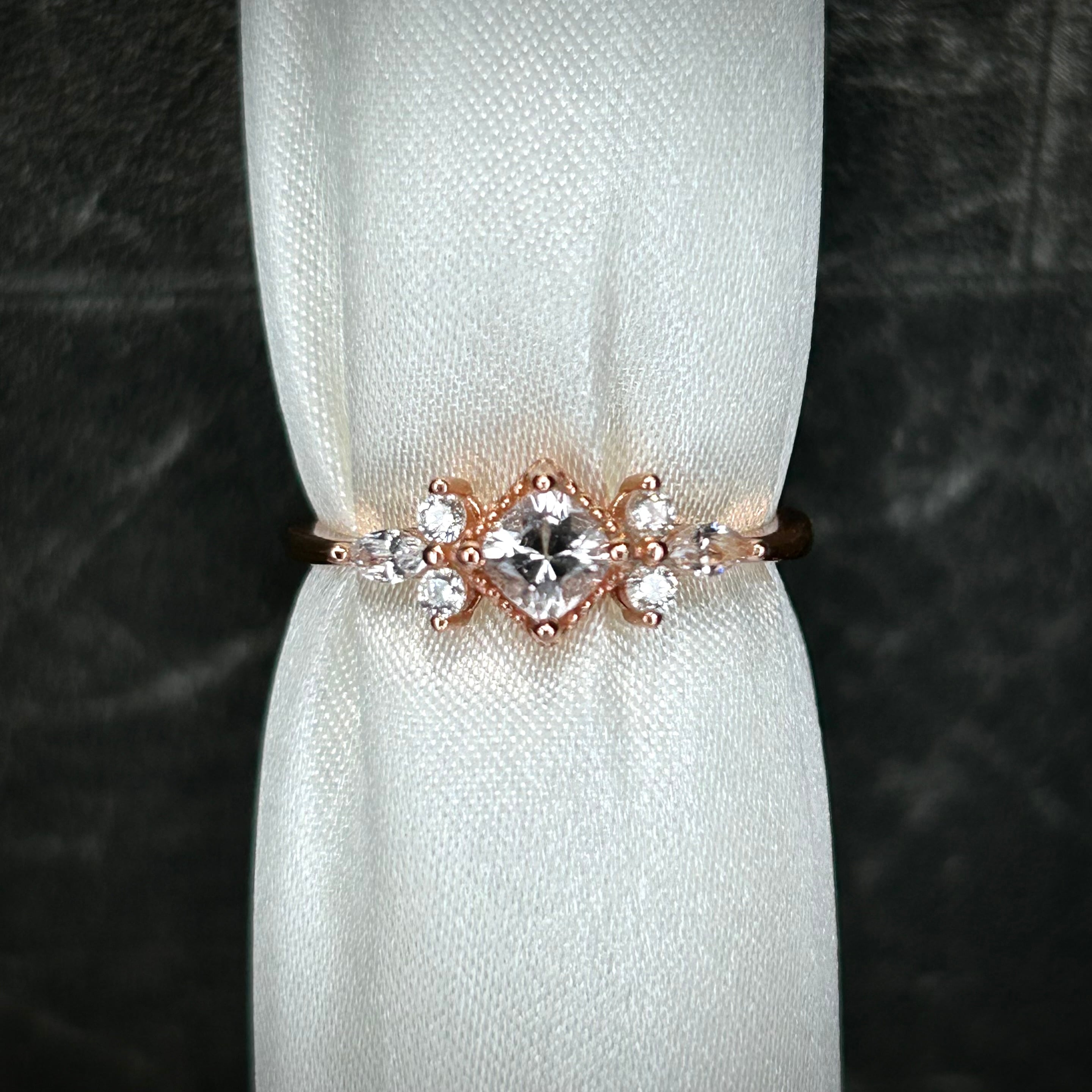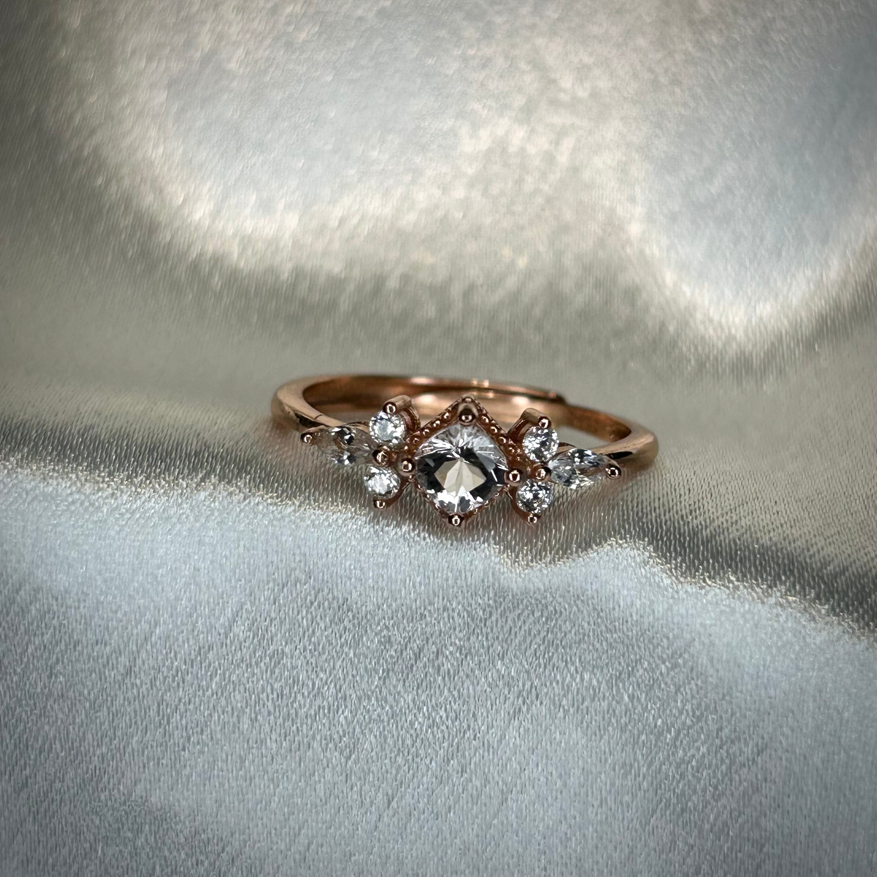 シルバー製ピンクゴールドカラー モルガナイト スクエアリング 4月誕生石 フリーサイズ