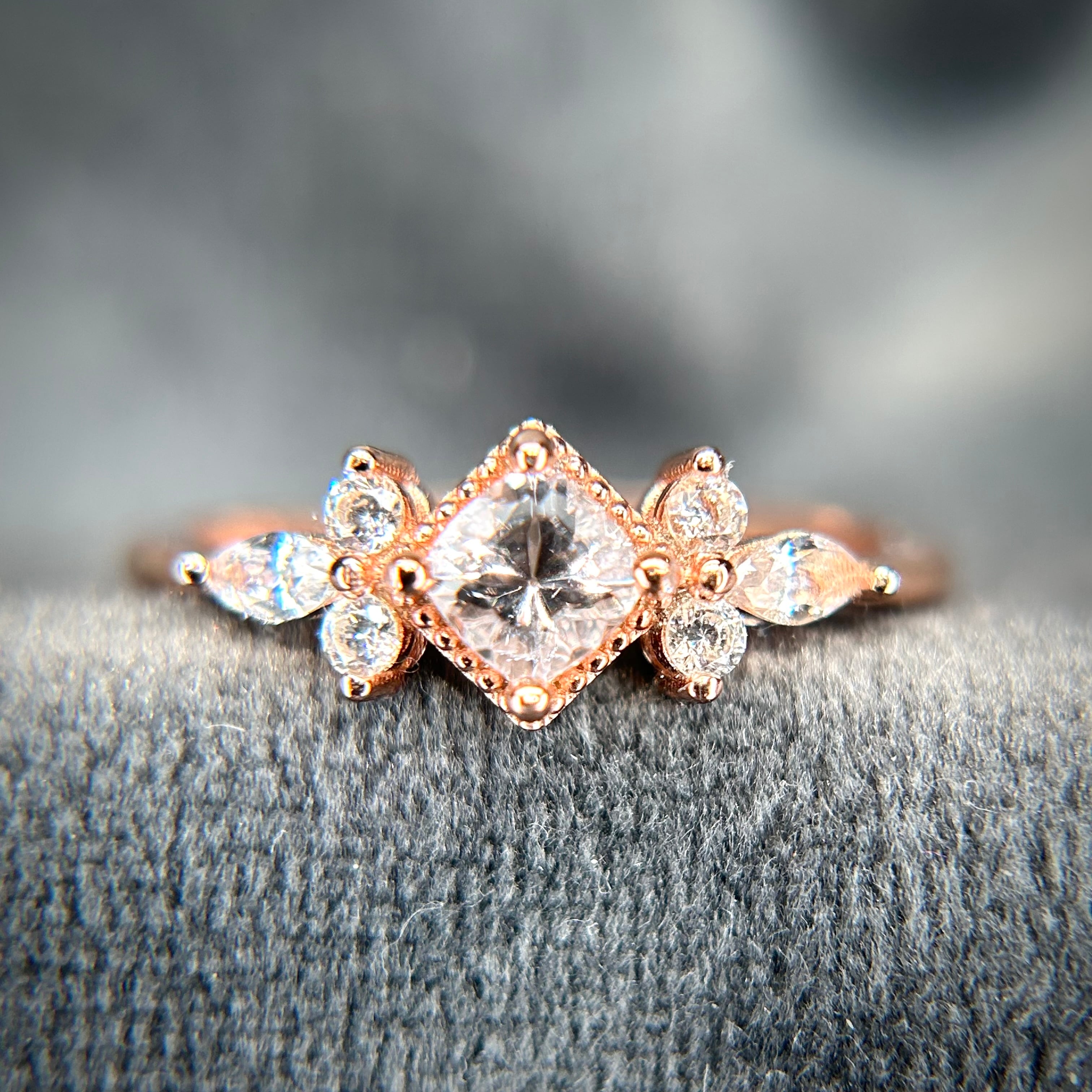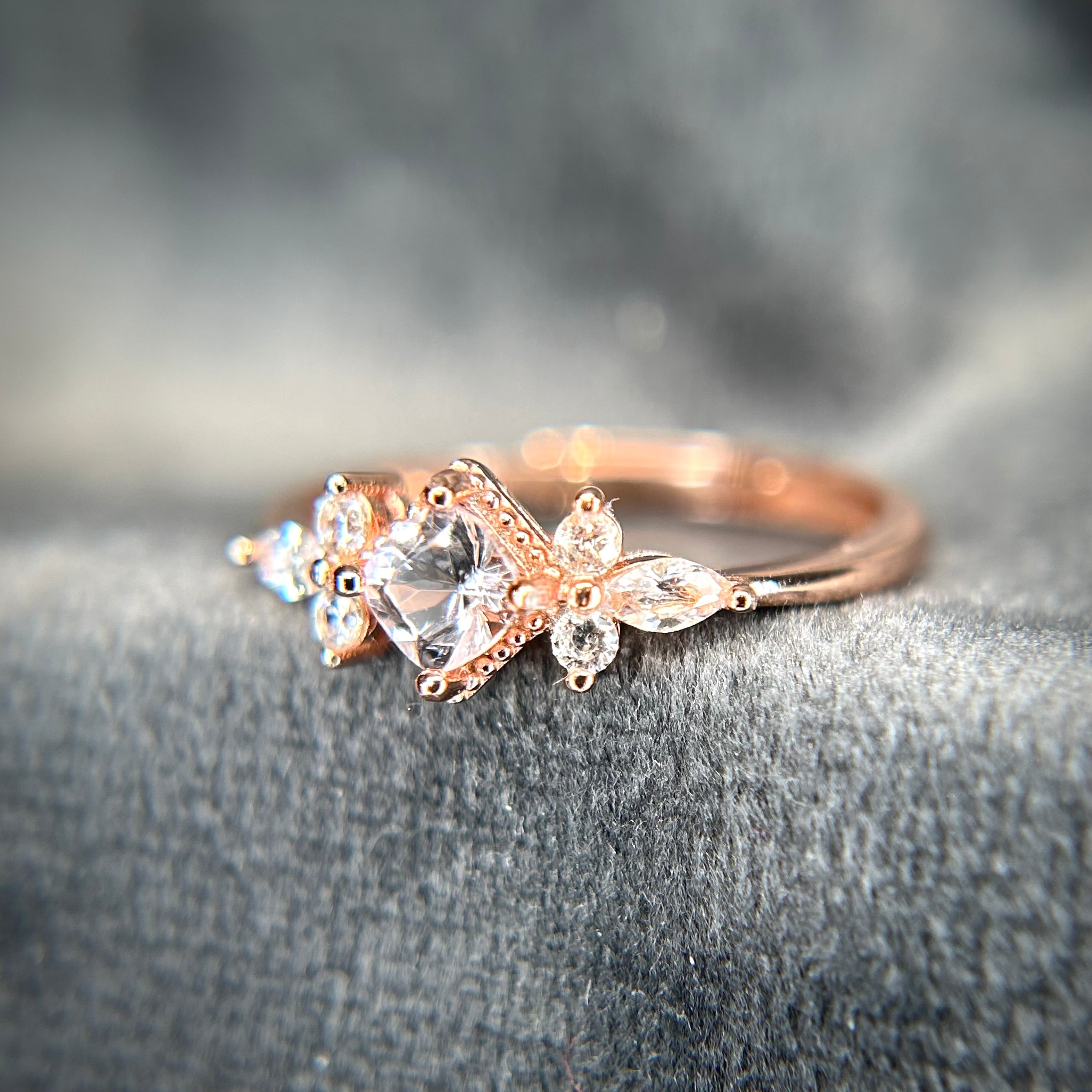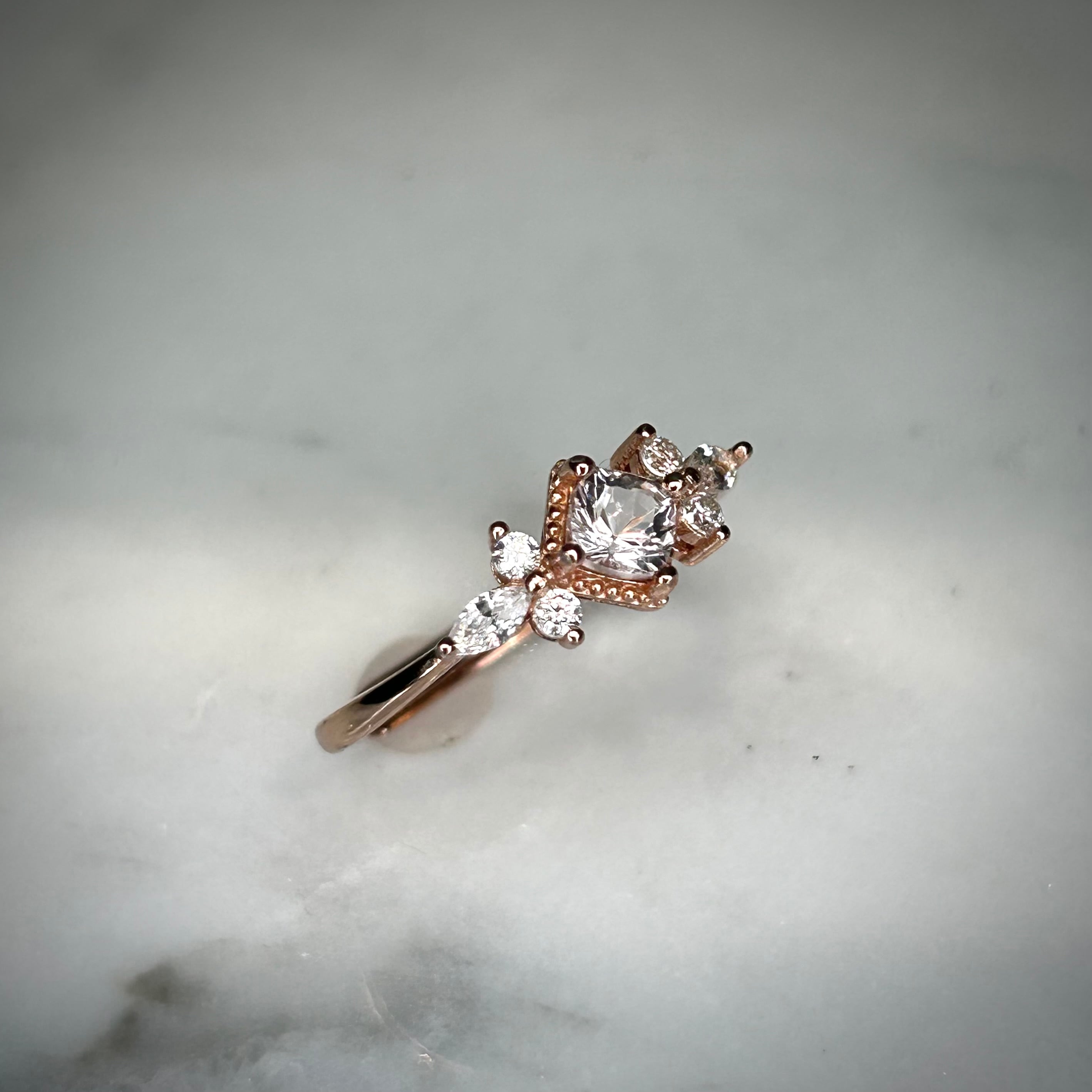 シルバー製ピンクゴールドカラー、モルガナイトのスクエアリング。