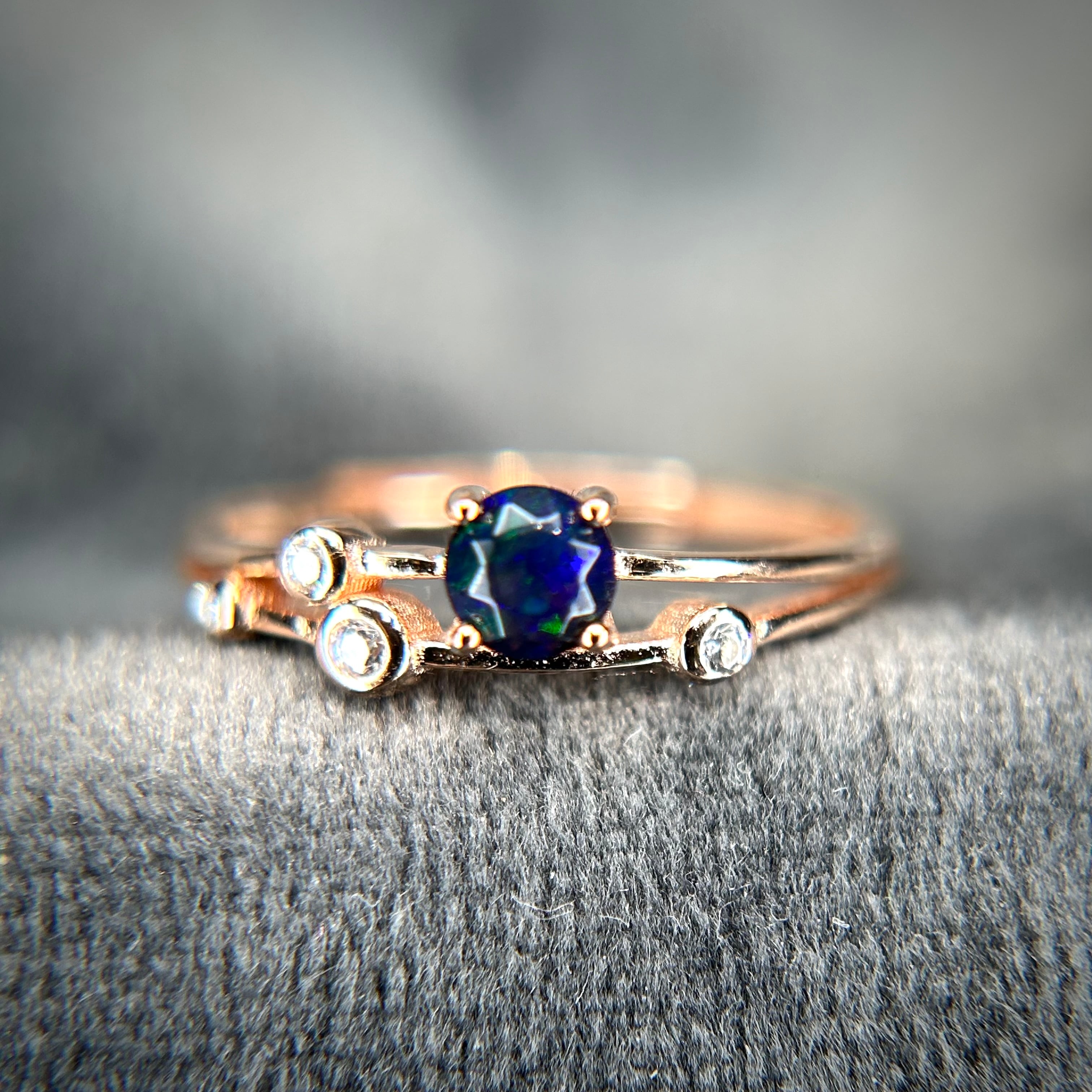 シルバー製ピンクゴールドカラー オパール(スモーク処理) ステーションリング 10月誕生石 フリーサイズ