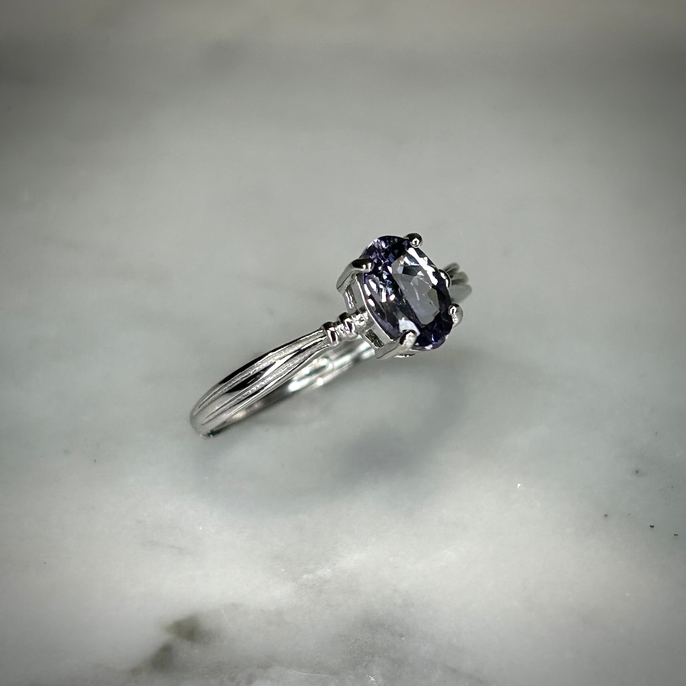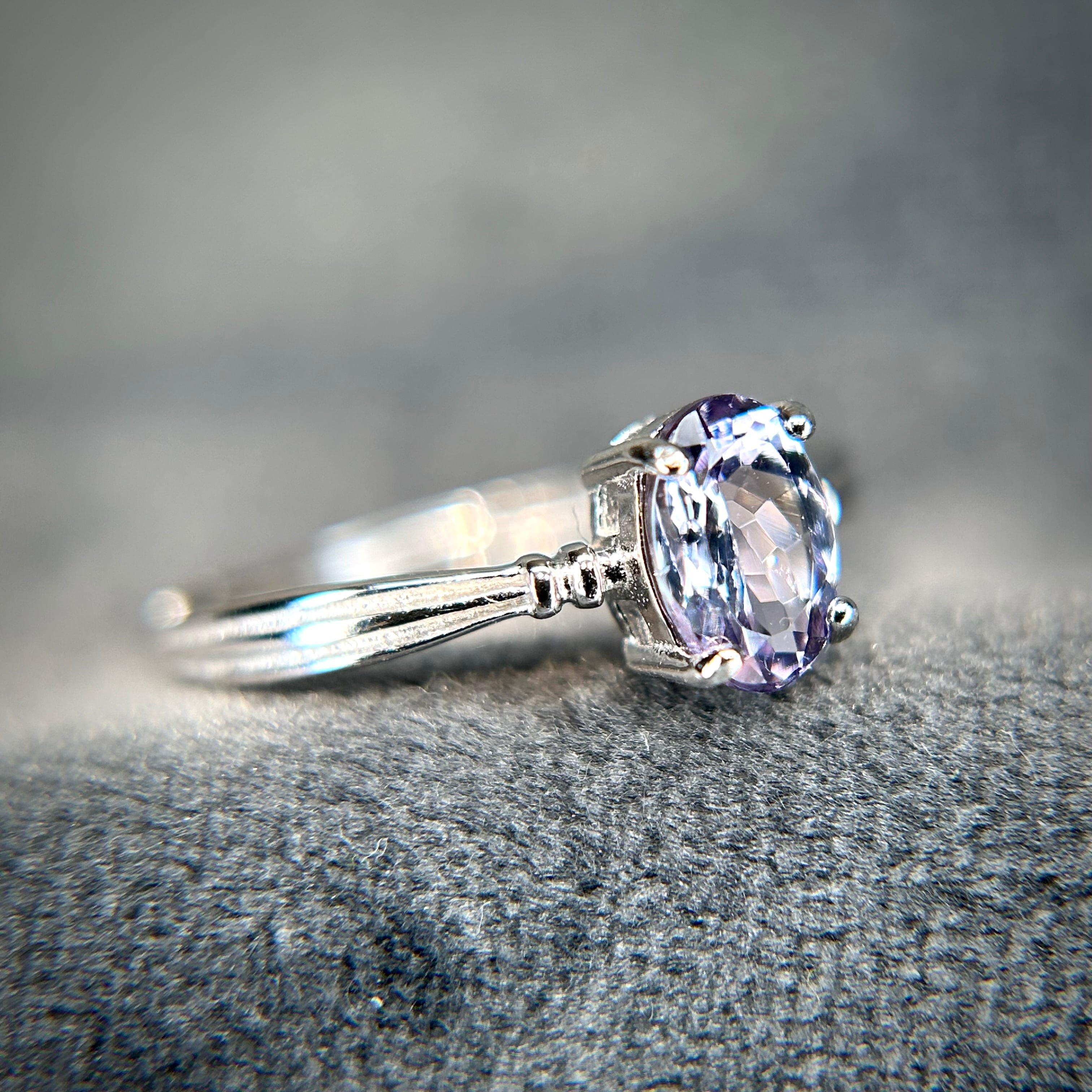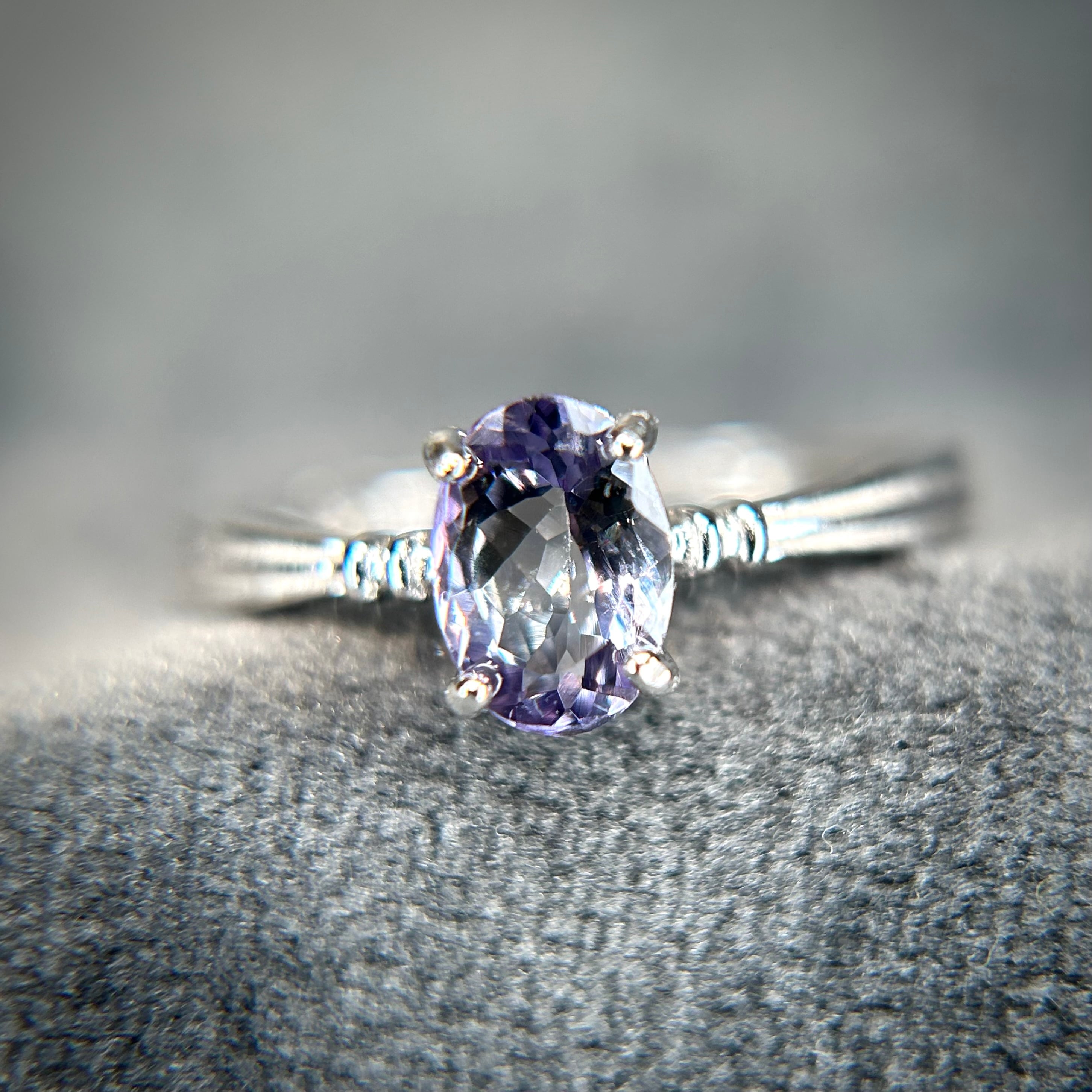 見る角度によって淡いパープルやブルーにうっすらグリーン感も楽しめ、ゾイサイトの多色を感じることができます。