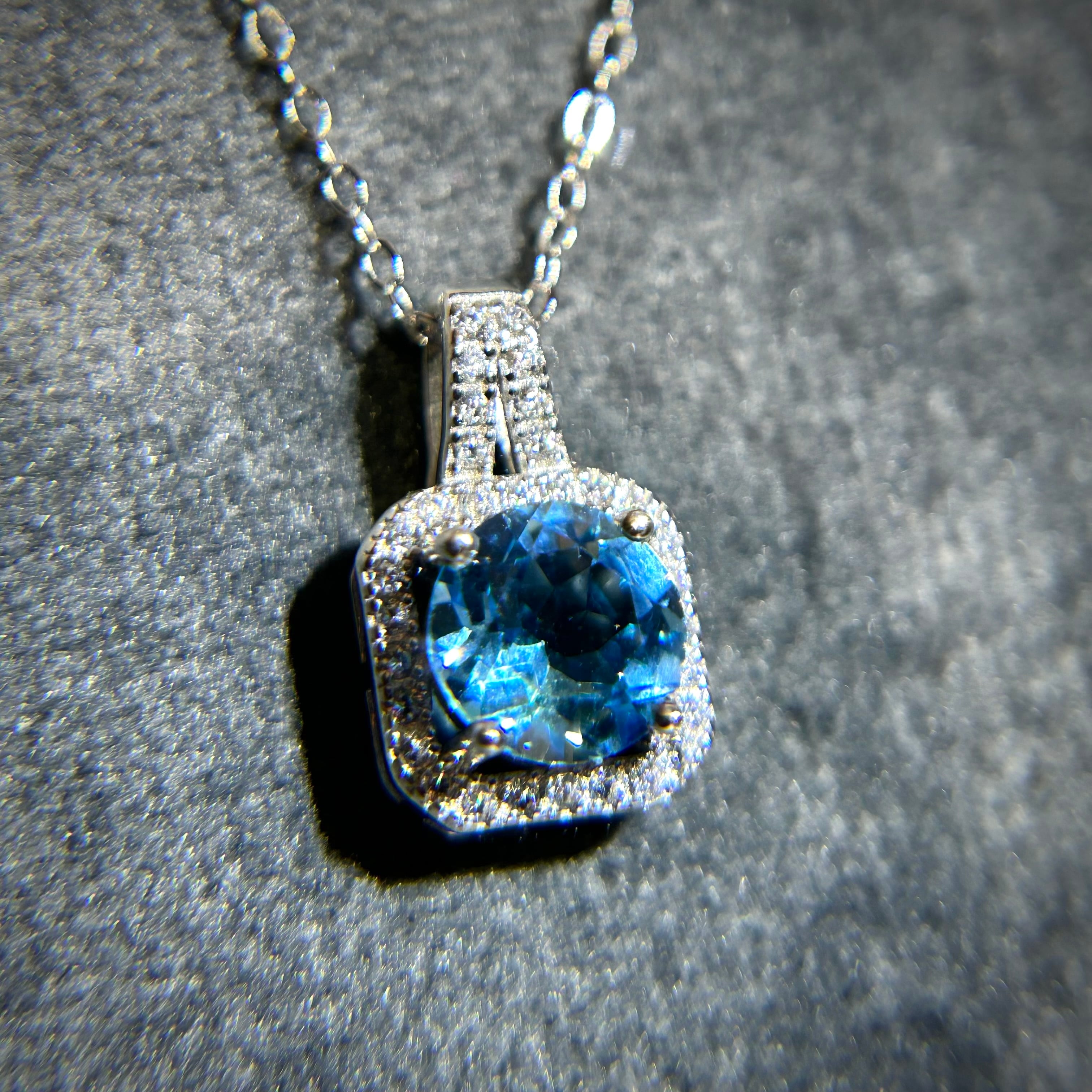 シルバー製、スイスブルートパーズのスクエアデザインネックレス。