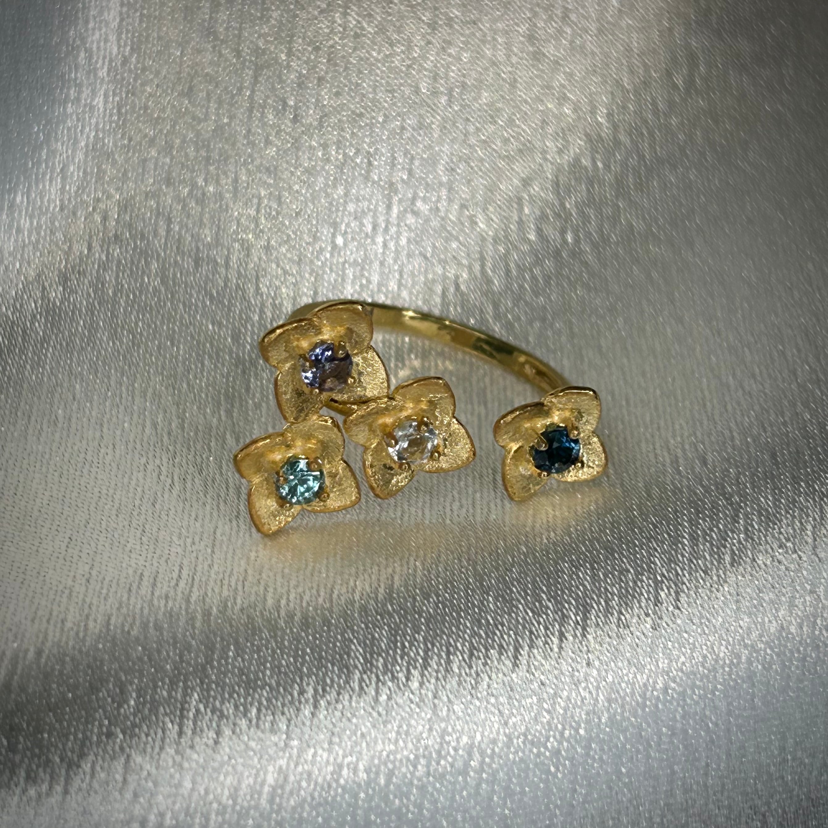 シルバー製ゴールドカラー マルチストーンのフラワーリング。