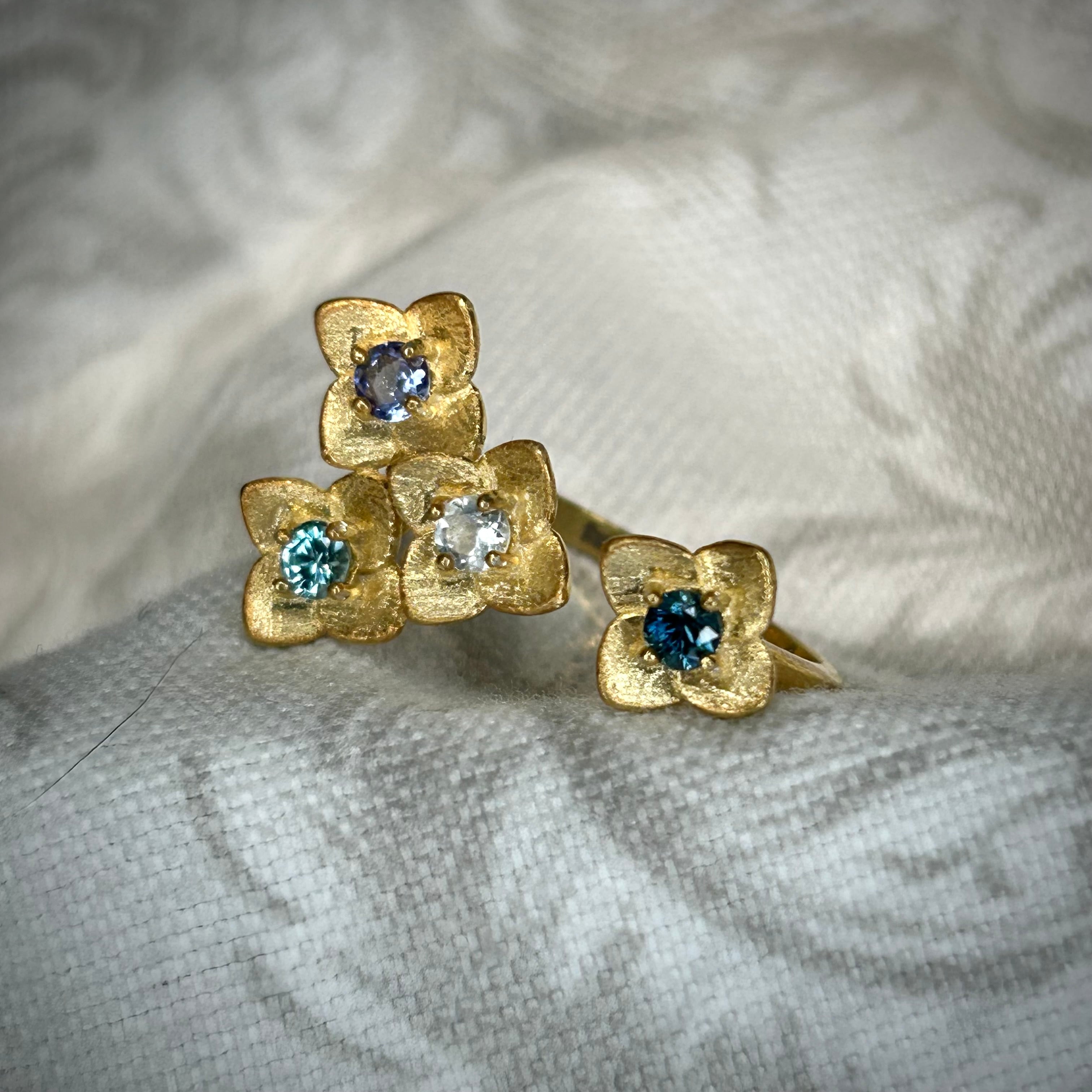 アクアマリン・サファイア・ジルコン・タンザナイトを1石ずつ使用。