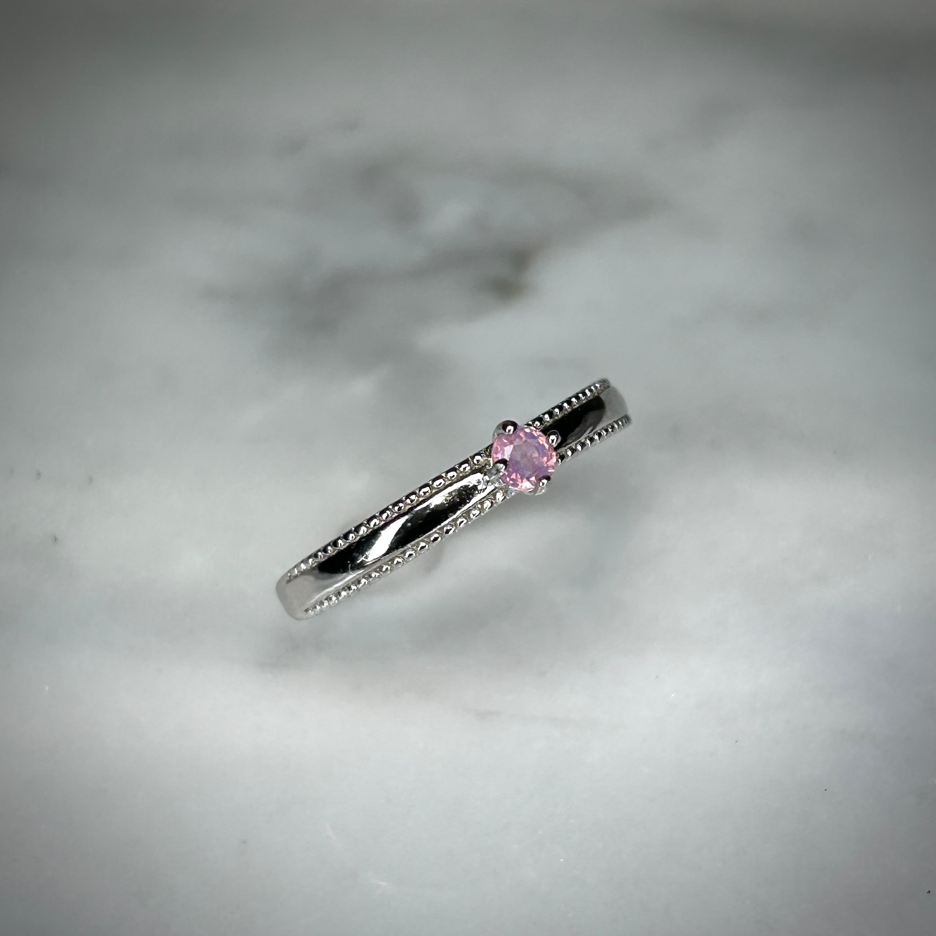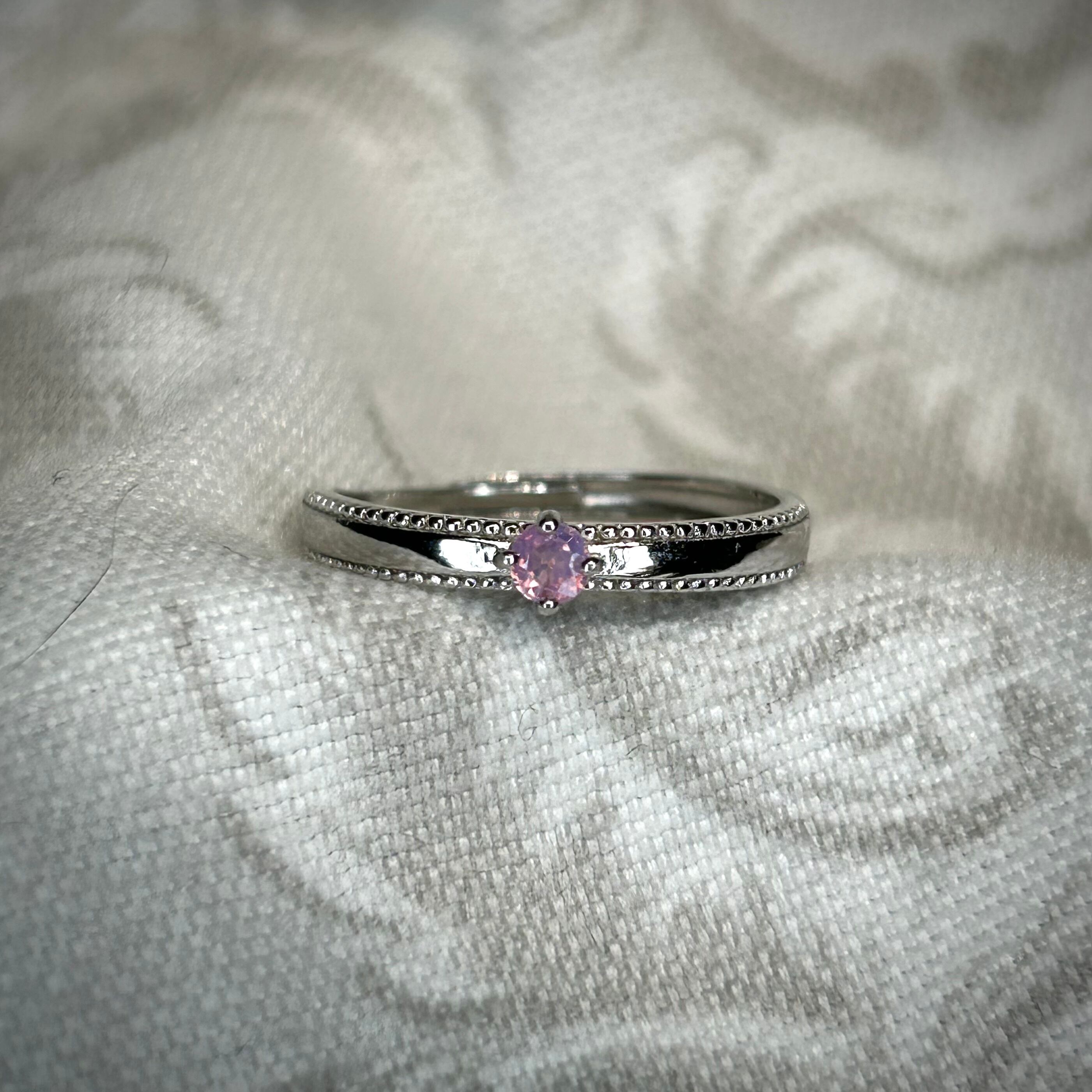 主役の石が引き立つデザインに、可愛いシルキーサファイアが映えるリングです。